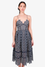 Self-Portrait Navy Blue Eyelet Lace Sleeveless Midi Dress Size 4