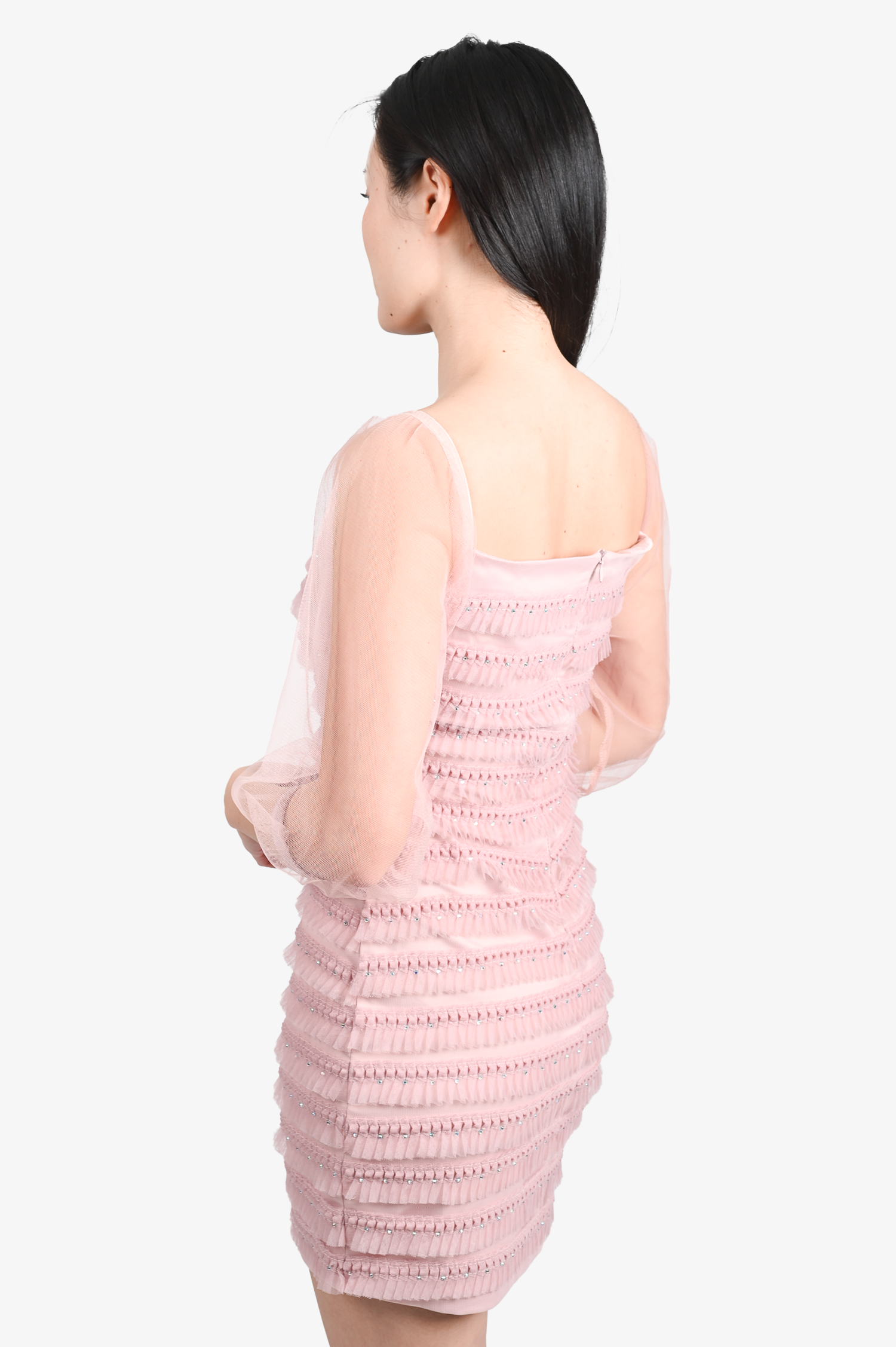 Refresh availabilitySelf-Portrait Pink Ruffle Mesh Mini Dress. Rear zip closure. Lined. Button closure on the cuffs. Tonal stitching.
