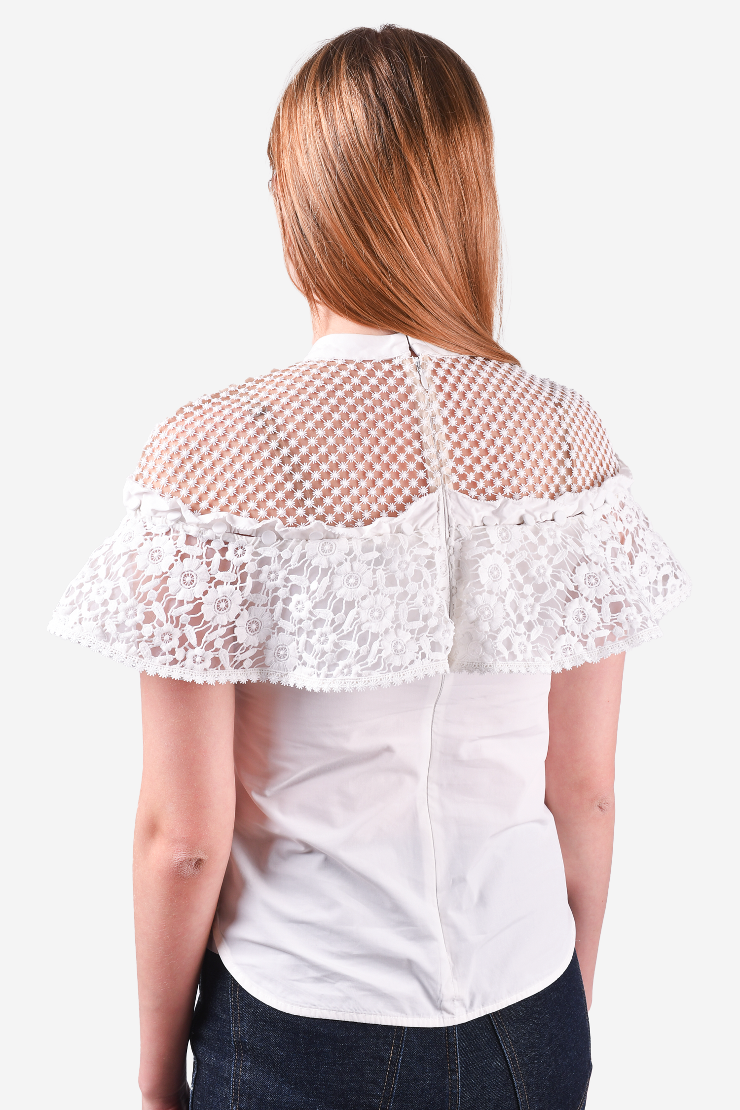 Refresh availabilitySelf-Portrait White Lace Mockneck Top. Rear zip and hook closure. Lined. Tonal stitching.