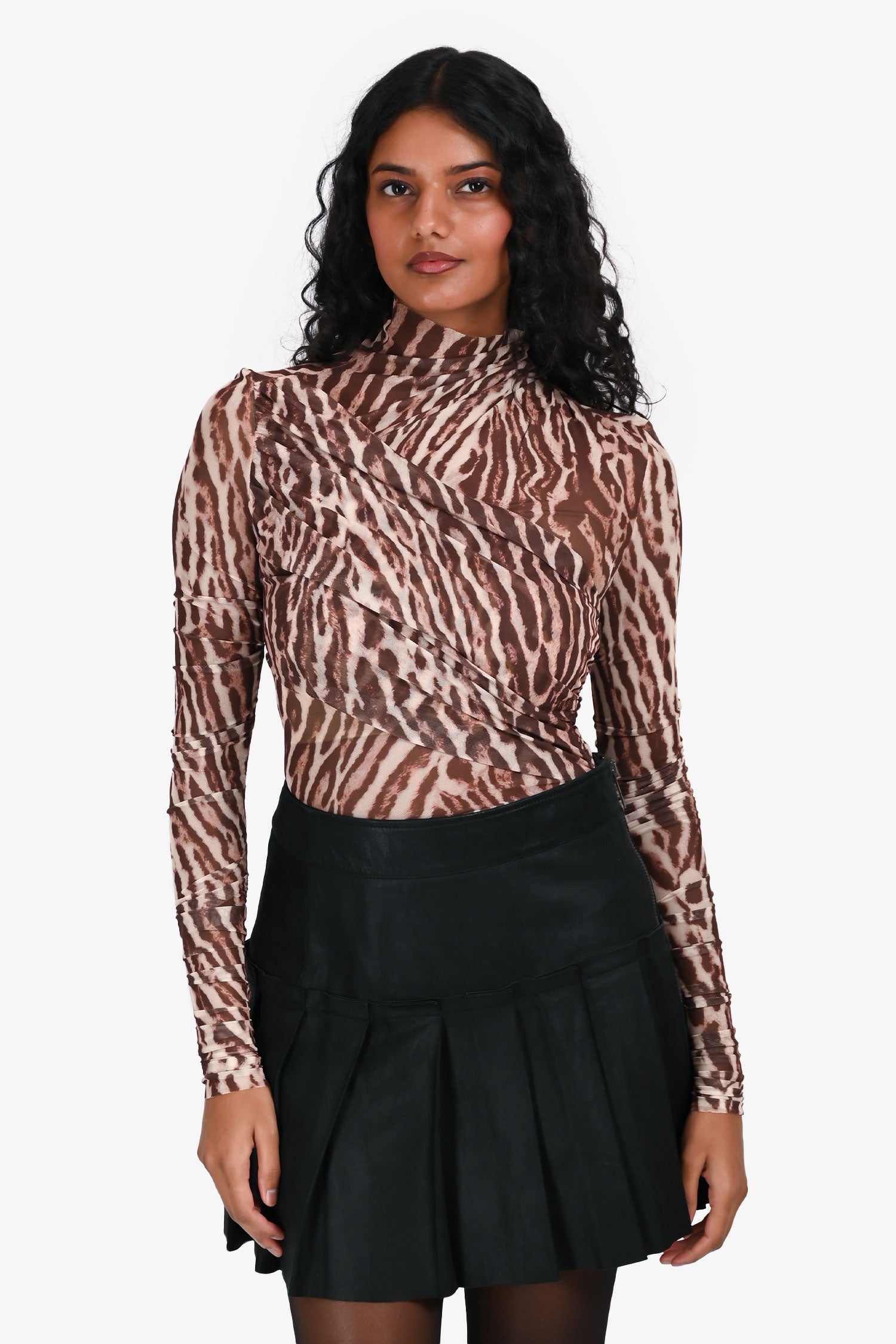 Refresh availabilitySER.YO.A Brown Leopard Print Sheer Ruched Top. Pull-on. Mock neckline. Tonal stitching.