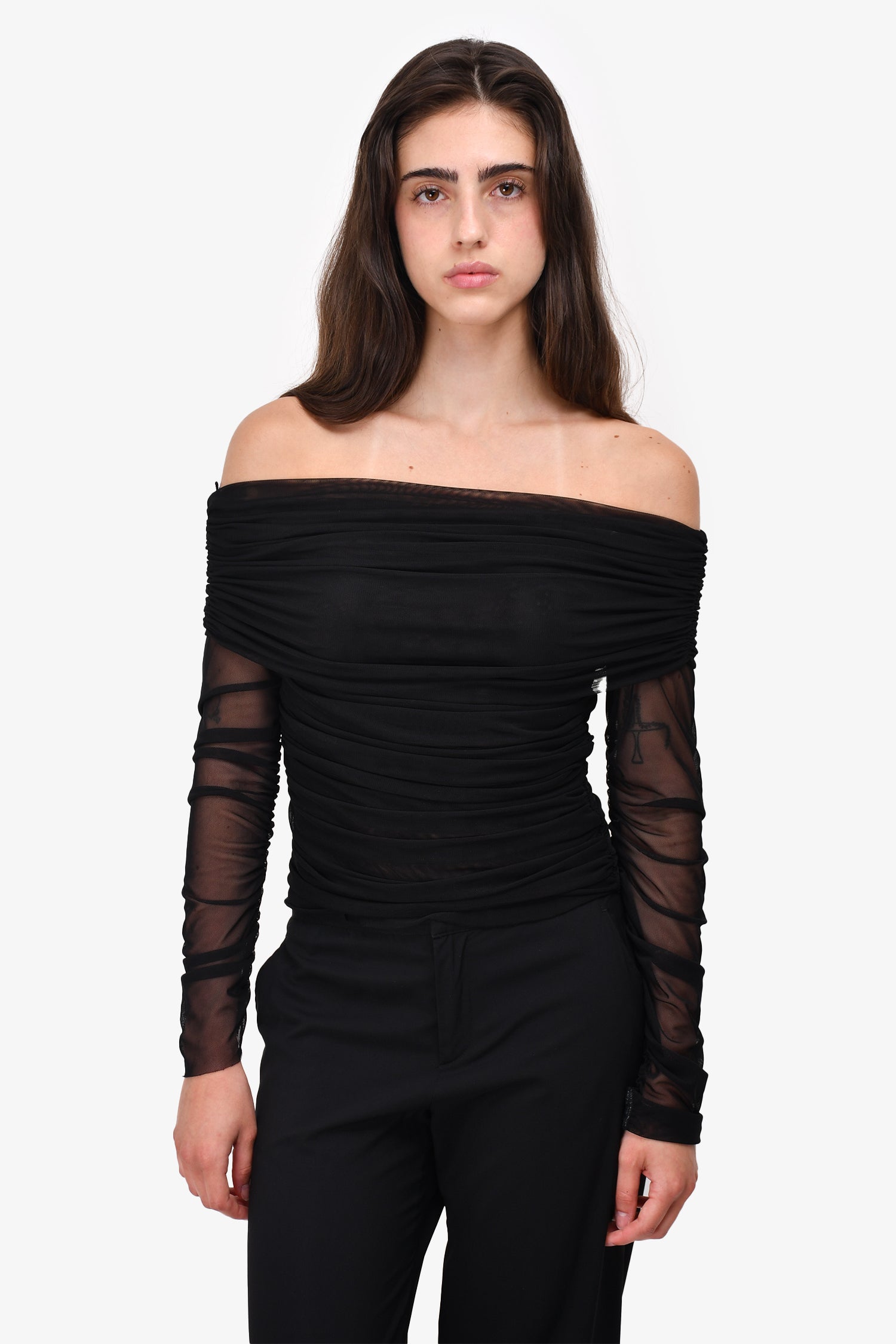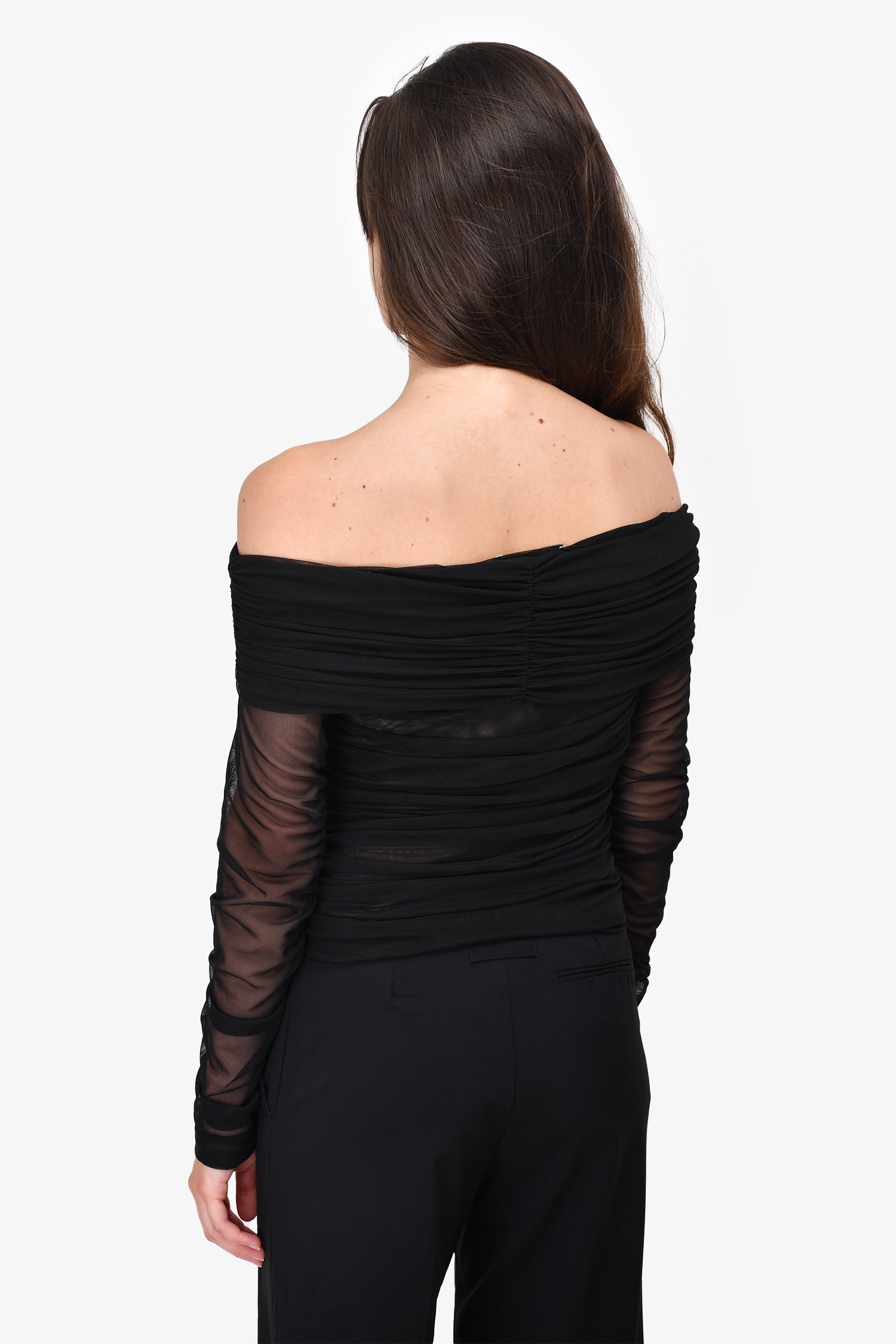 Refresh availabilityShona Joy Black Sheer Mesh Top. Slip on. Tonal stitching.
