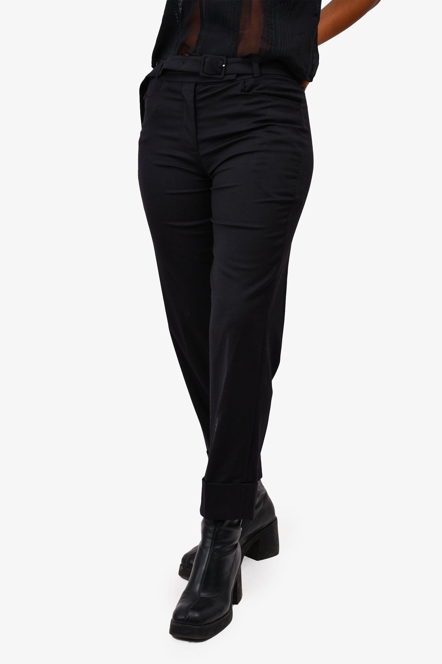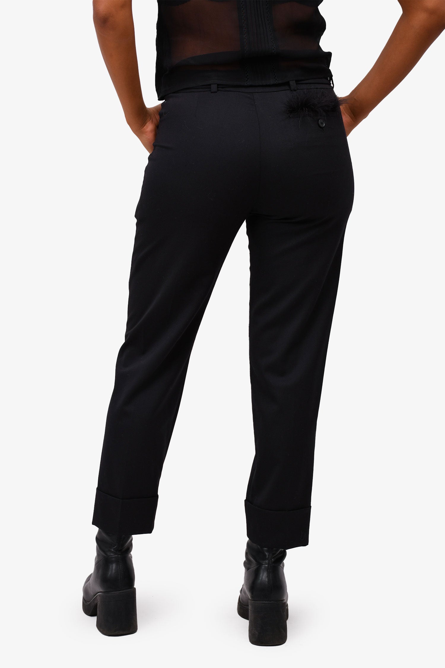 Simone Rocha Black Feather Detail Belted Trousers Size 8