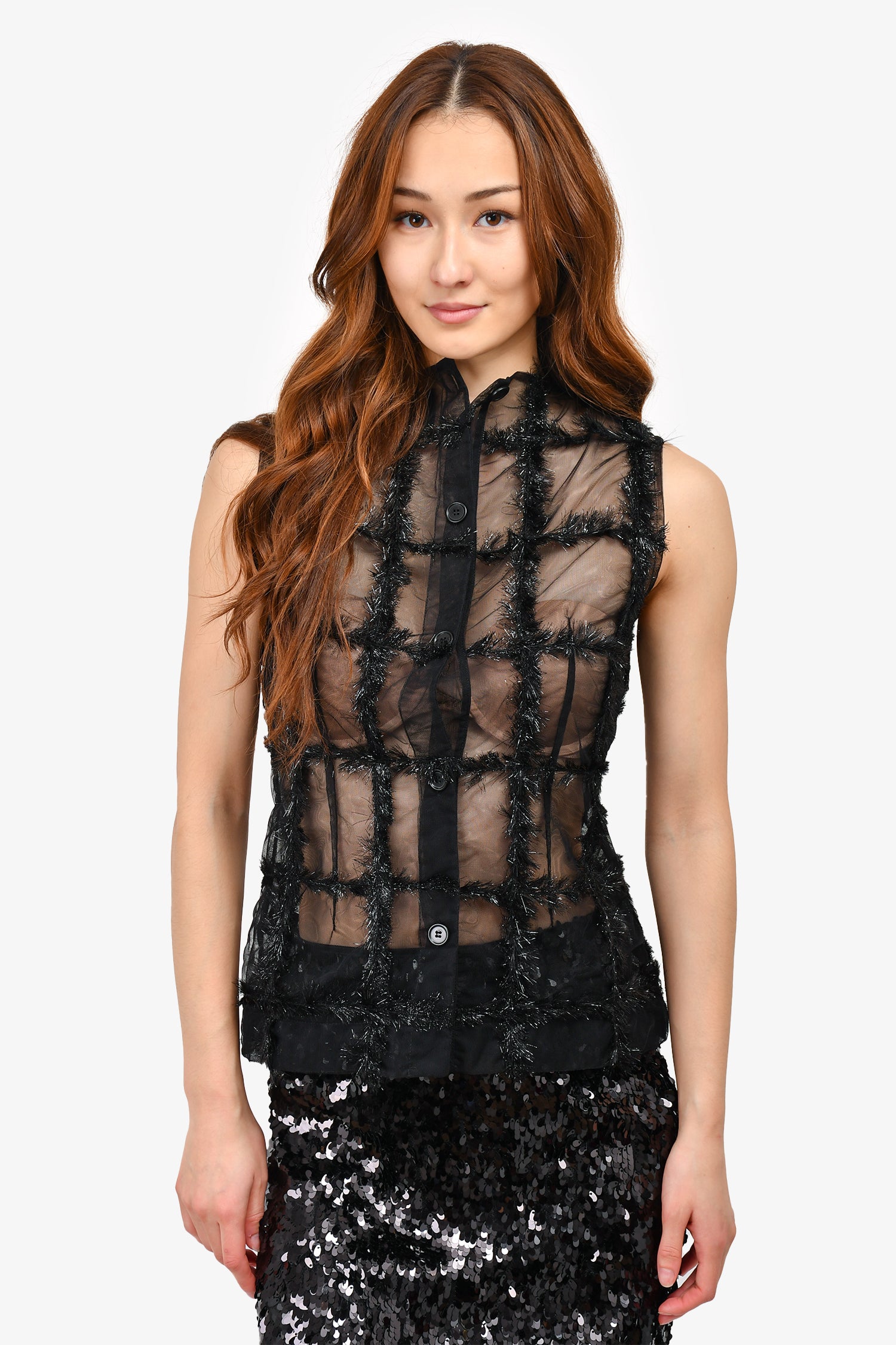 Simone Rocha Black Mesh Tinsel Sleeveless Top Size 4