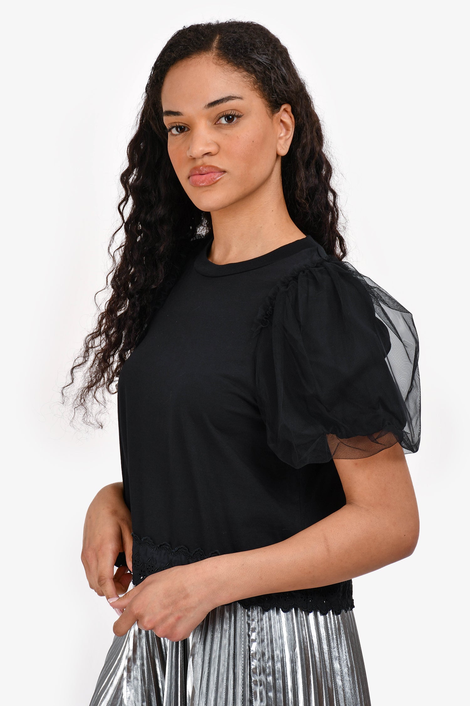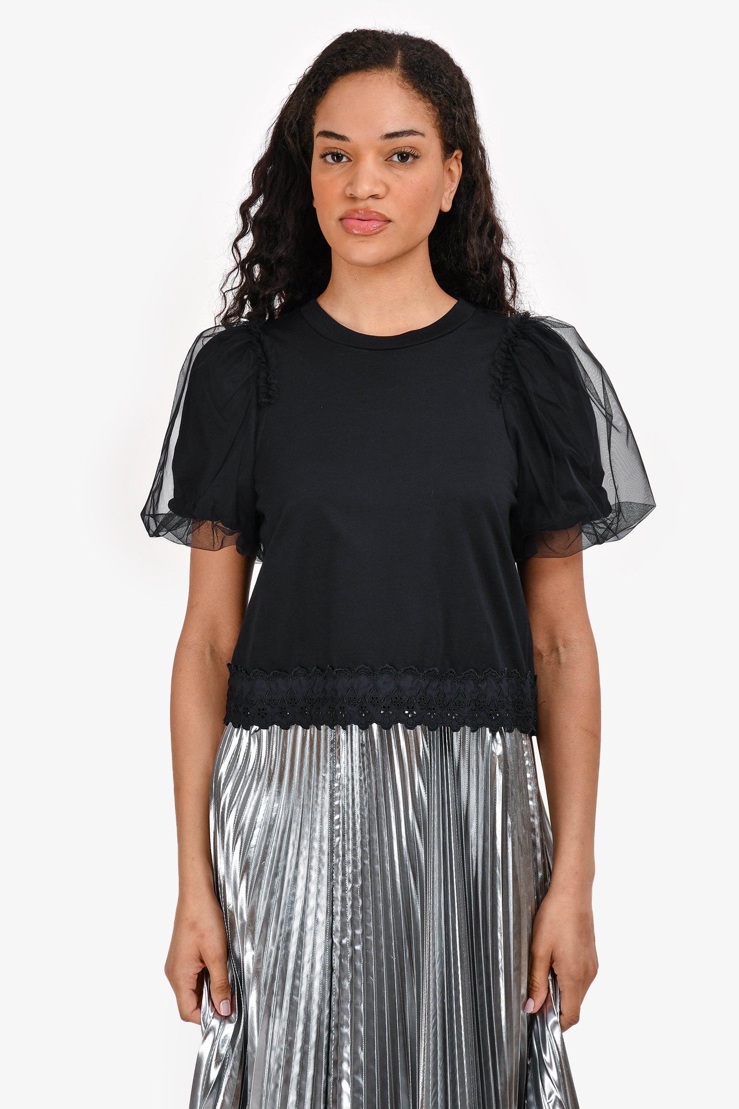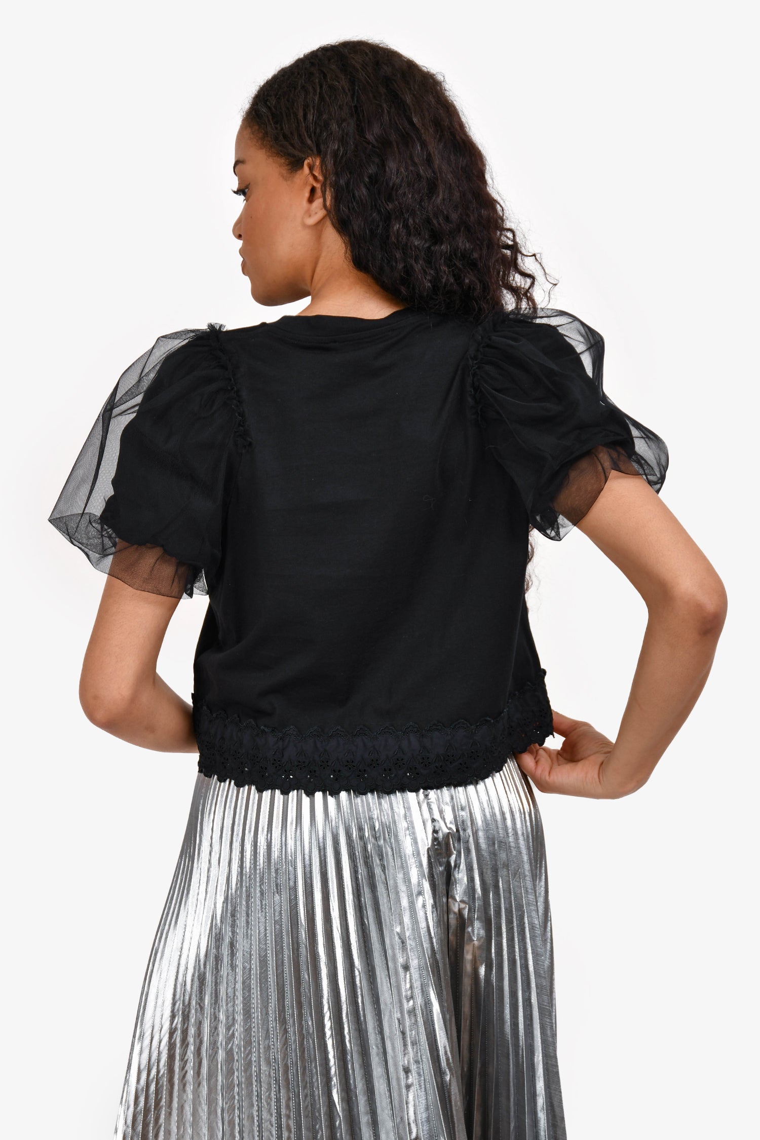 Refresh availabilitySimone Rocha Cotton Tulle Eyelet Short Sleeve Top. Crew neckline. Puff short sleeves. Tonal stitching.