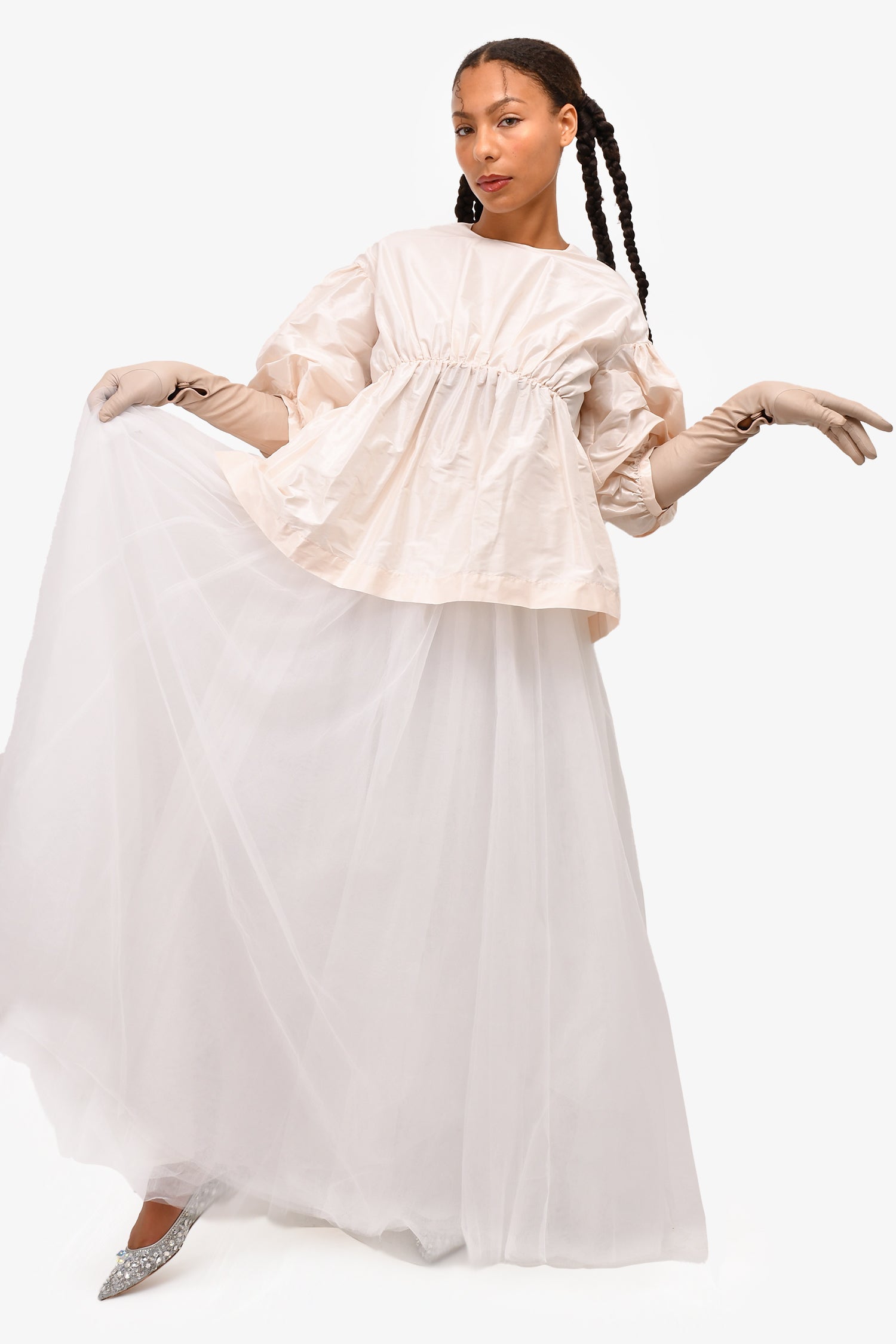 Simone Rocha Pale Pink Nylon Puff Sleeve Top Size 8