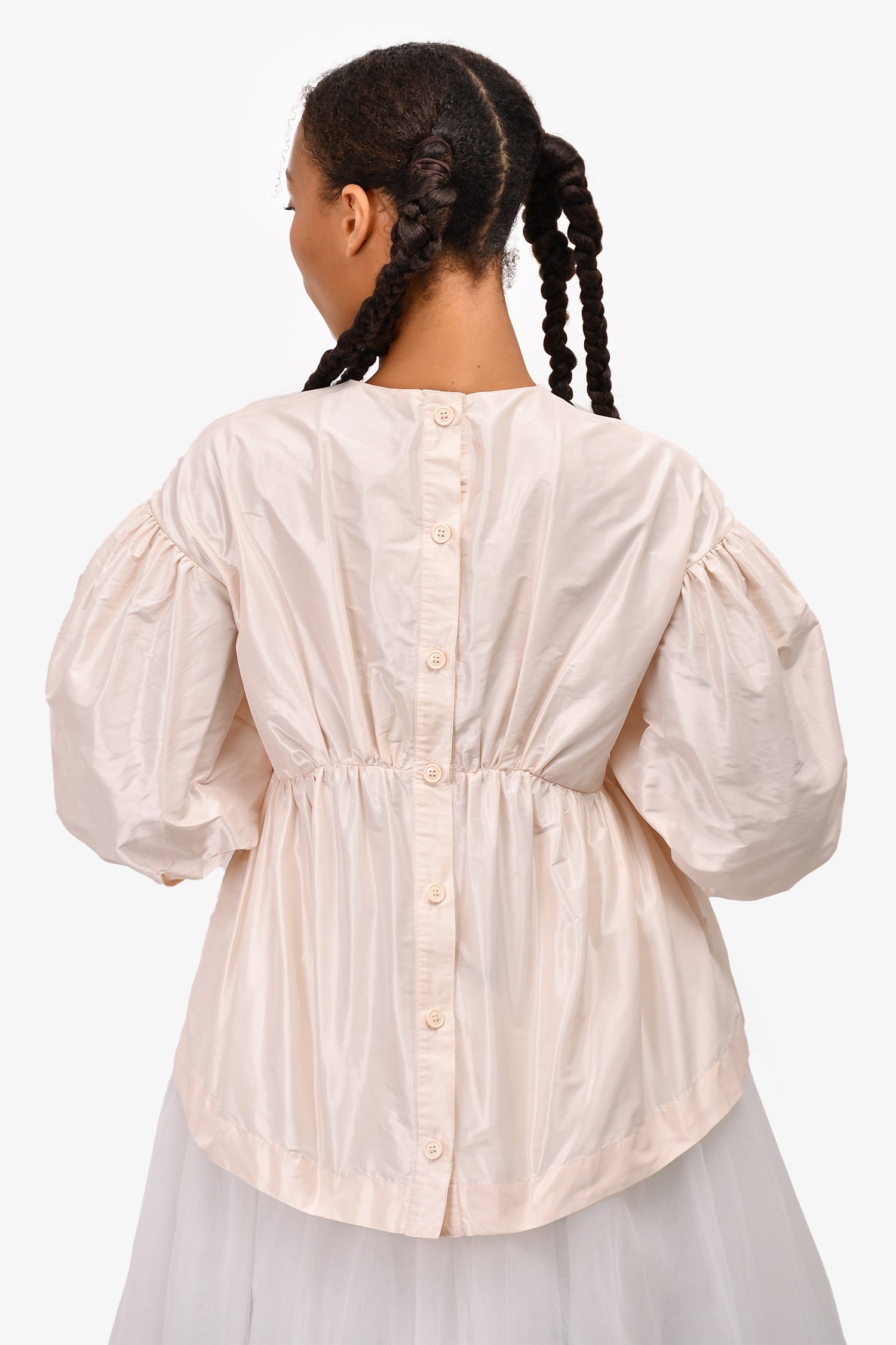 Refresh availabilitySimone Rocha Pale Pink Nylon Puff Sleeve Top. Rear button-up closure. Tonal stitching.