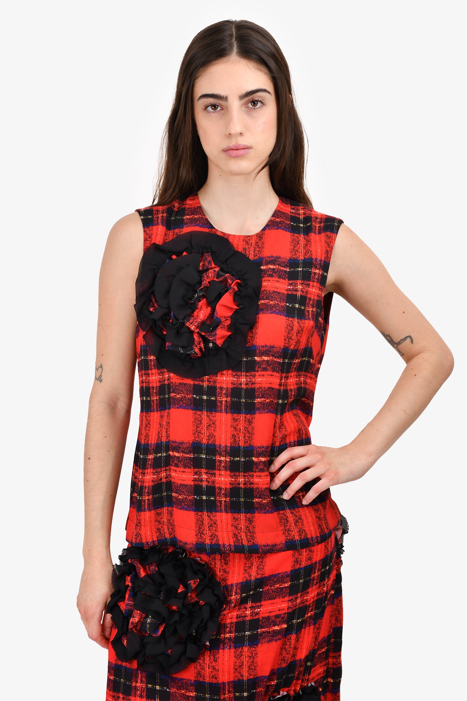 Simone Rocha Red/Black Plaid Flower Top Est. Size M