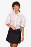 Simone Rocha White Cotton Poplin Button-Up Top With Pearl Collar Size 8 UK