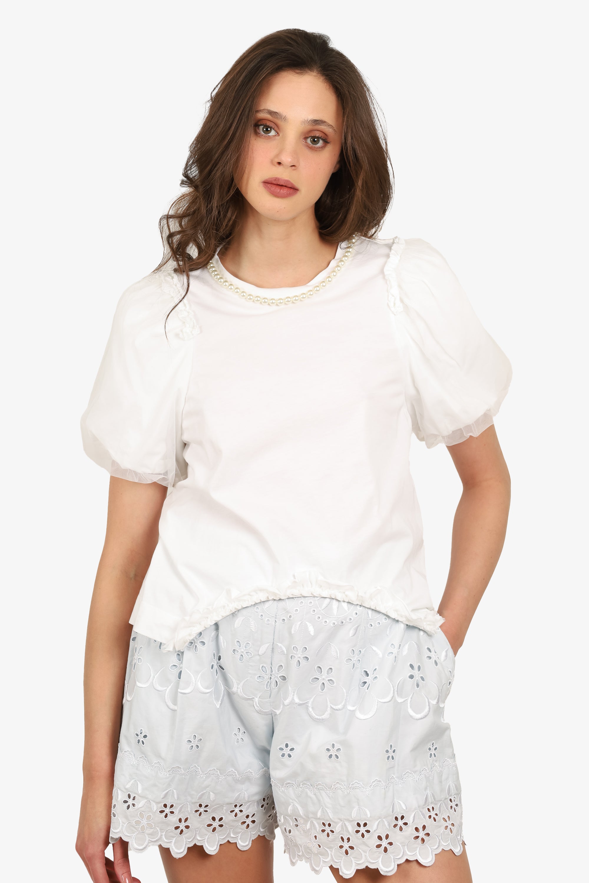 Refresh availabilitySimone Rocha White Pearl Neck Top. Pull over. Unlined. Tonal stitching.
