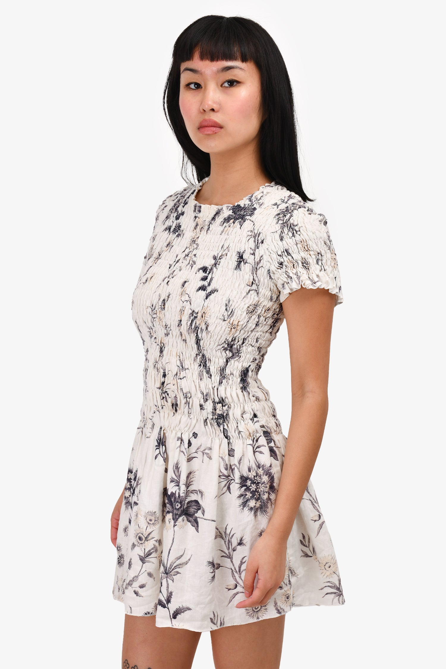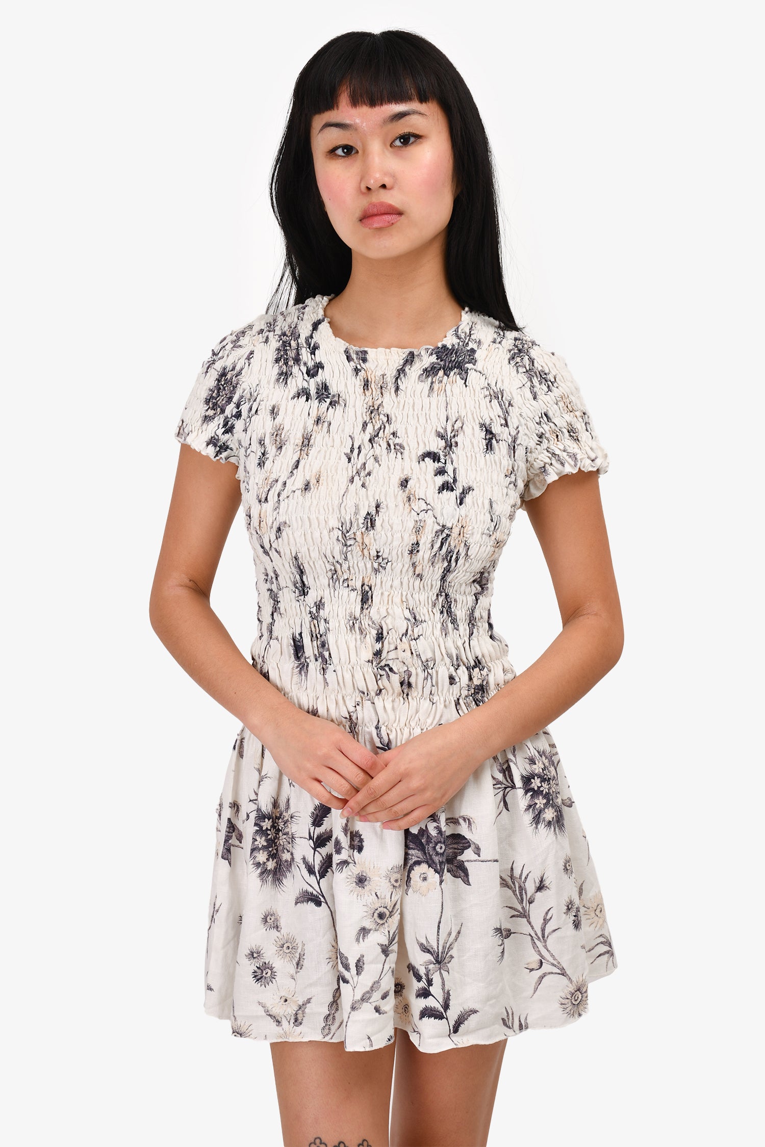 SIR The Label White/Grey Linen Smocked Mini Dress Size 3