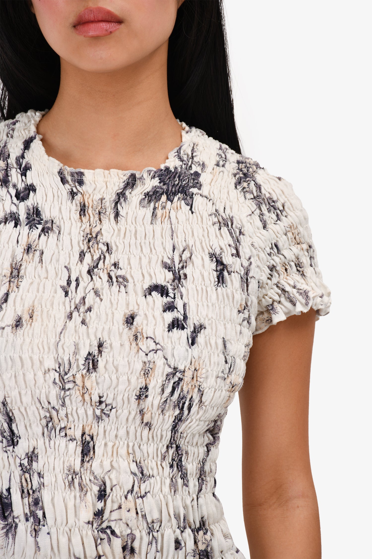 Refresh availabilitySIR The Label White/Grey Linen Smocked Mini Dress. Round neck. Pull-on. Unlined.