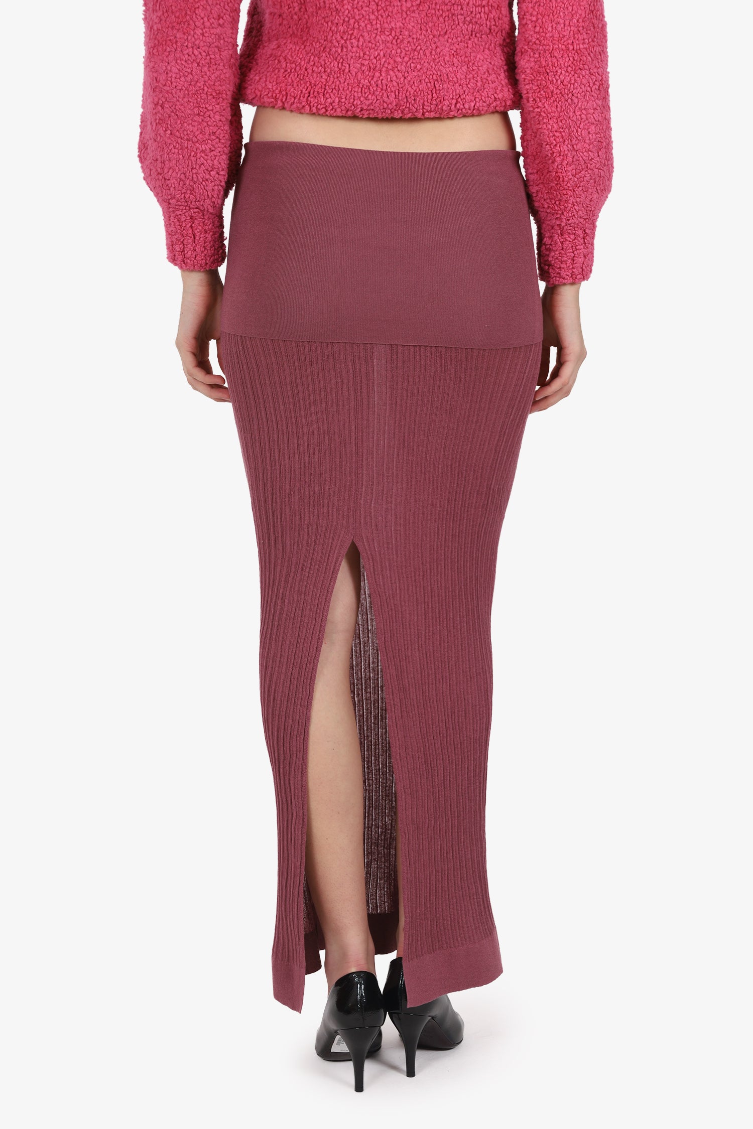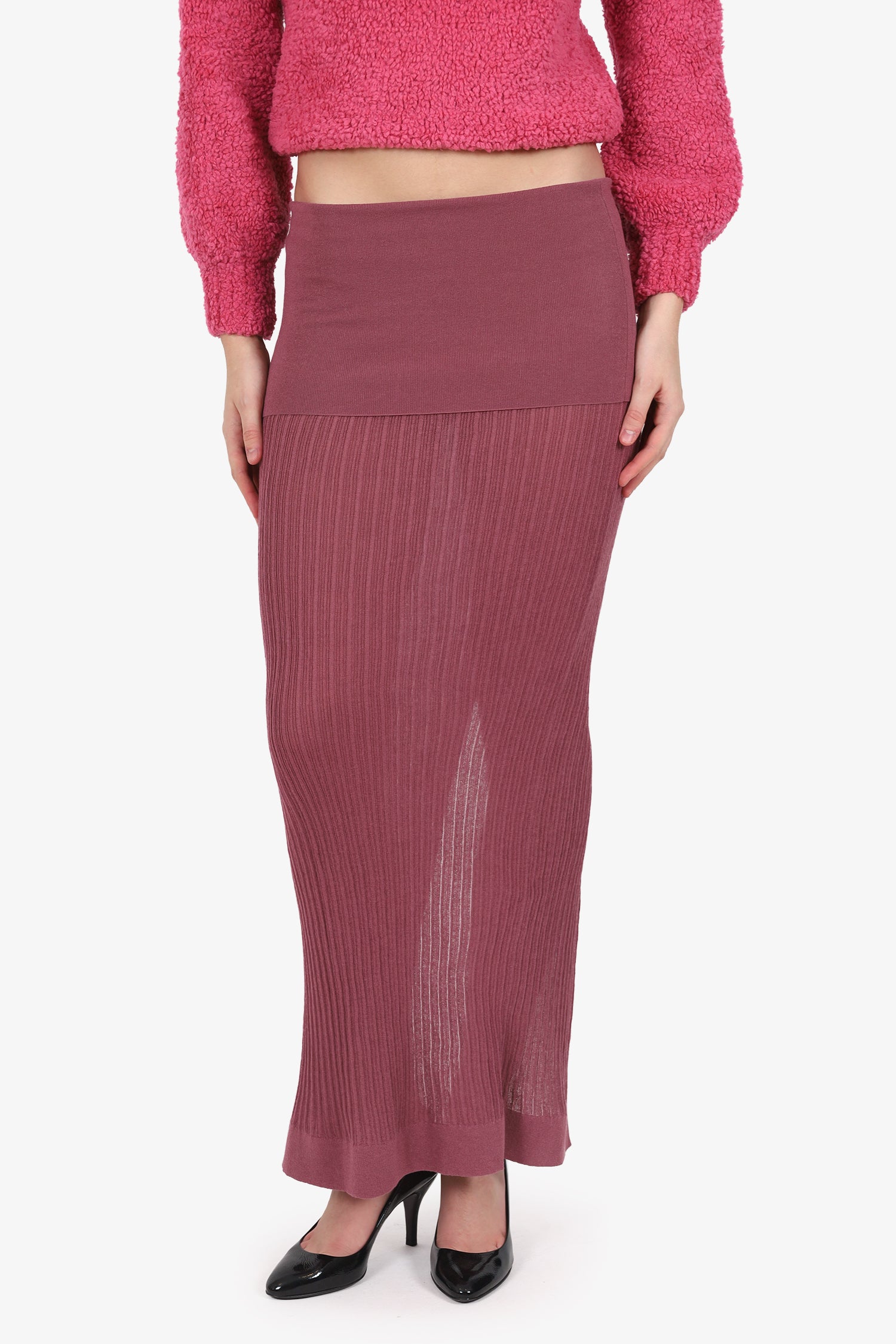 Refresh availabilitySkims Purple Rib Knit Maxi Skirt. Slip-on. Elasticated waistband. Tonal stitching.