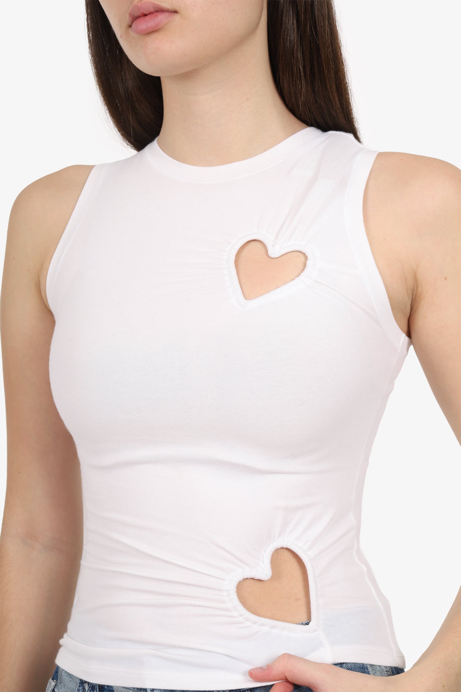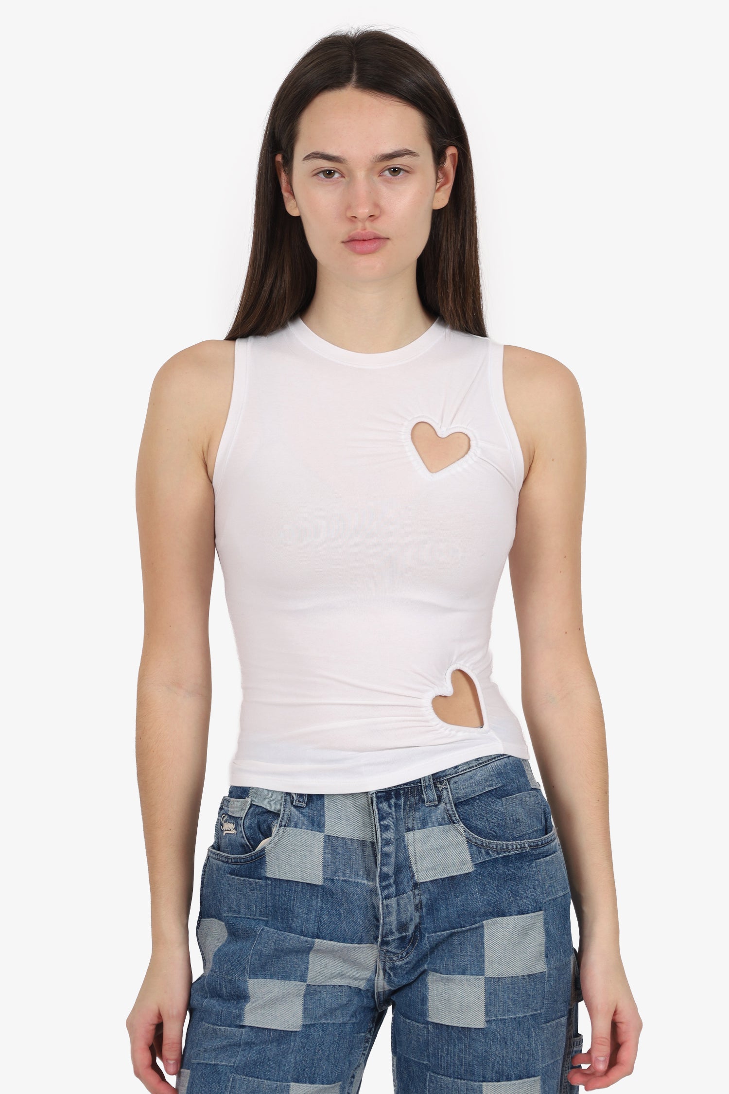 Refresh availabilitySkims White Heart Cut-Out Sleeveless T-Shirt. Pull-on. Round neckline. Heart-shape wired cut-outs at front exterior. Tonal stitching.