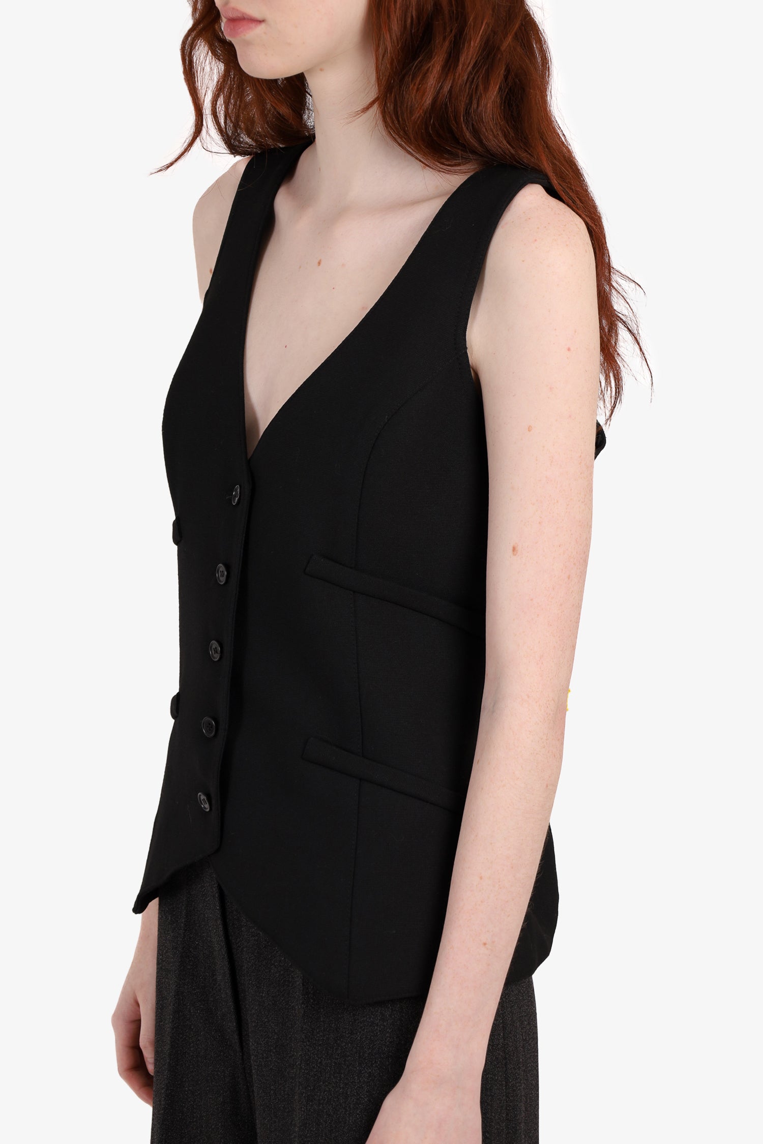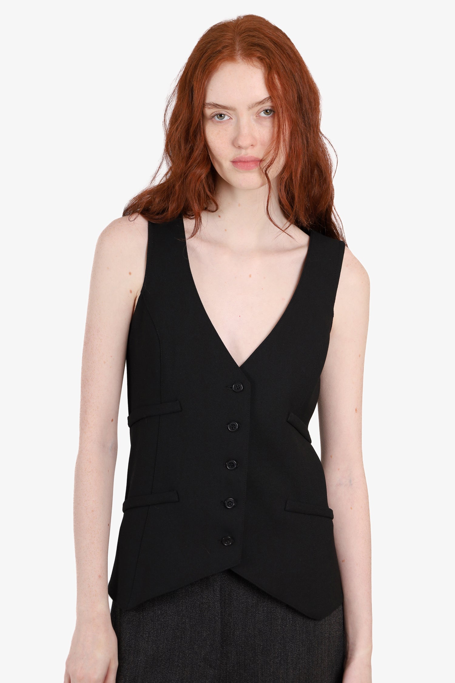 Refresh availabilitySmythe Black Button-Up Vest. Front button-up closure. V-neckline. Tonal stitching.