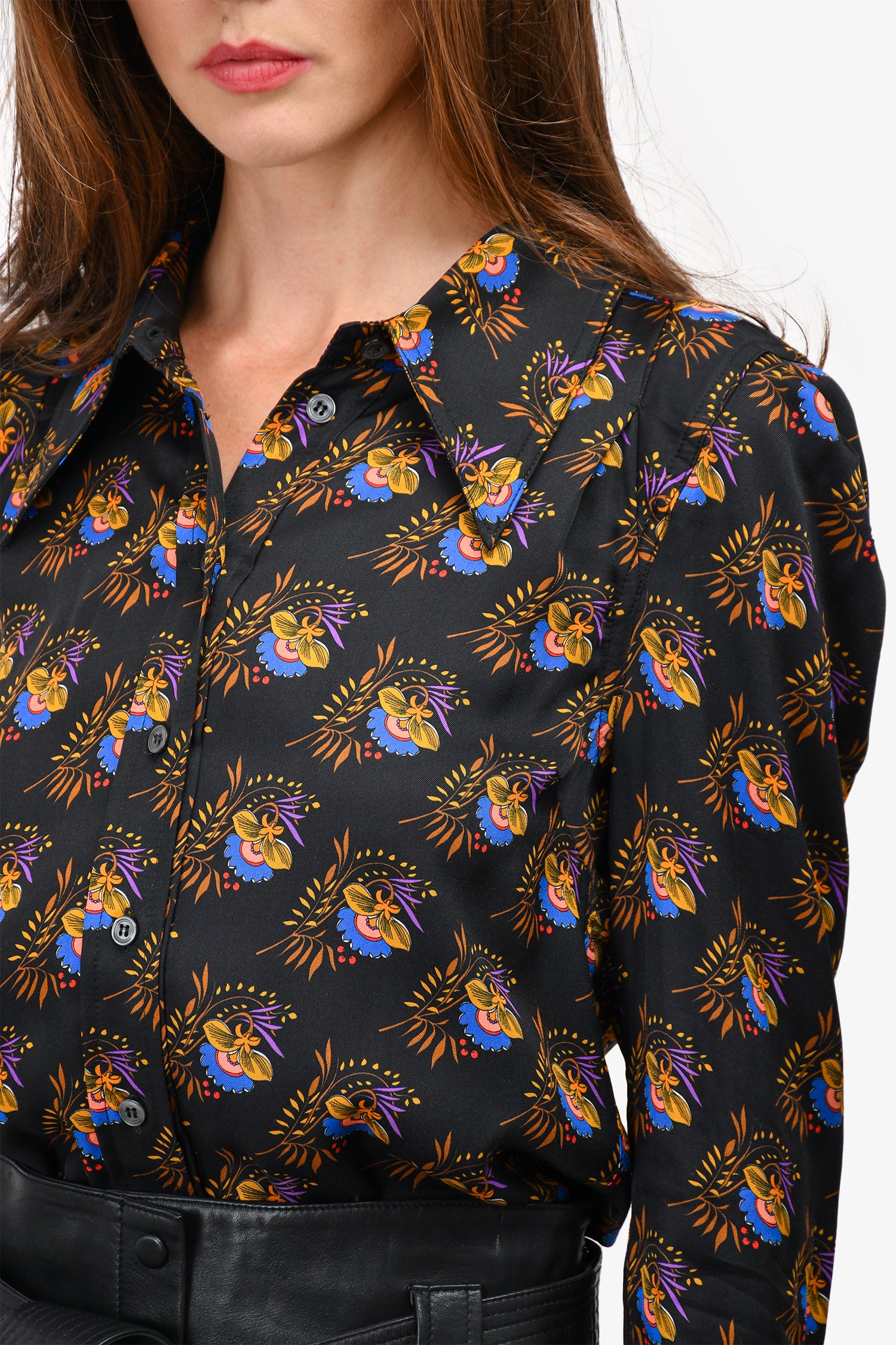Refresh availabilitySmythe Black Multicolour Printed Button-Up Top. Front button-up closure. Black-tonal hardware. Button closure at the cuff. Tonal stitching.