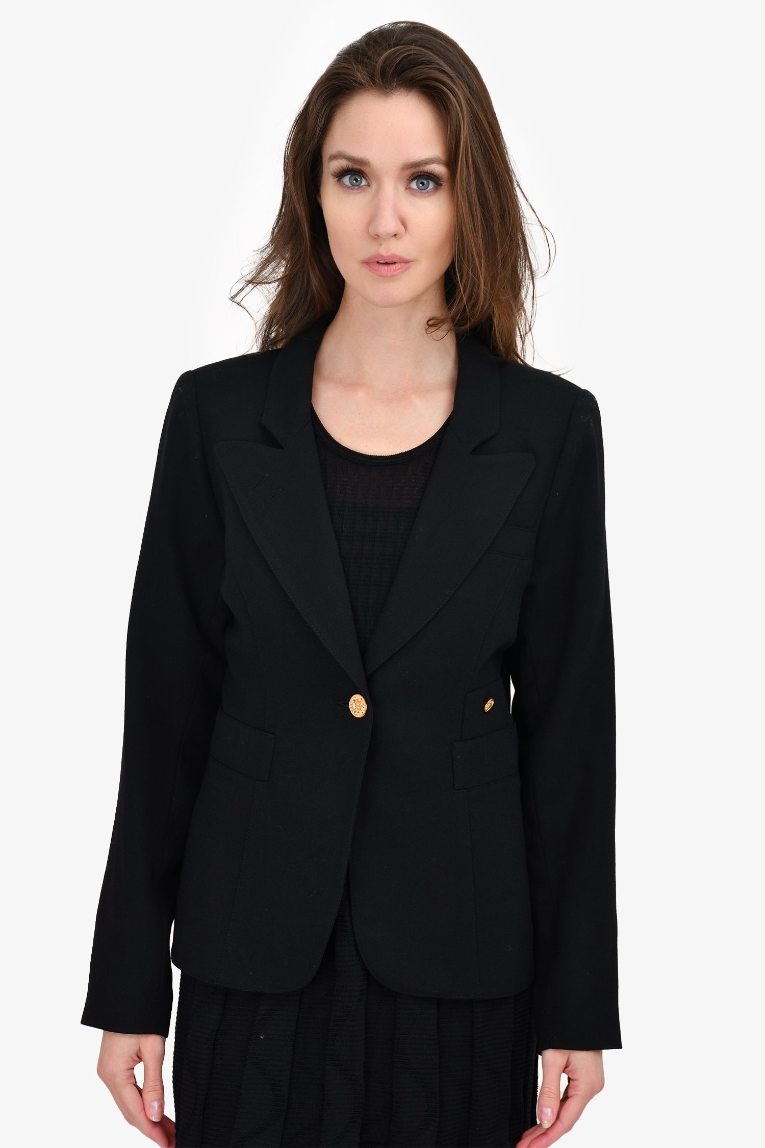 Refresh availabilitySmythe Black Single Breasted Blazer. Single front button closure. Front pockets. Padded shoulders. Lined.