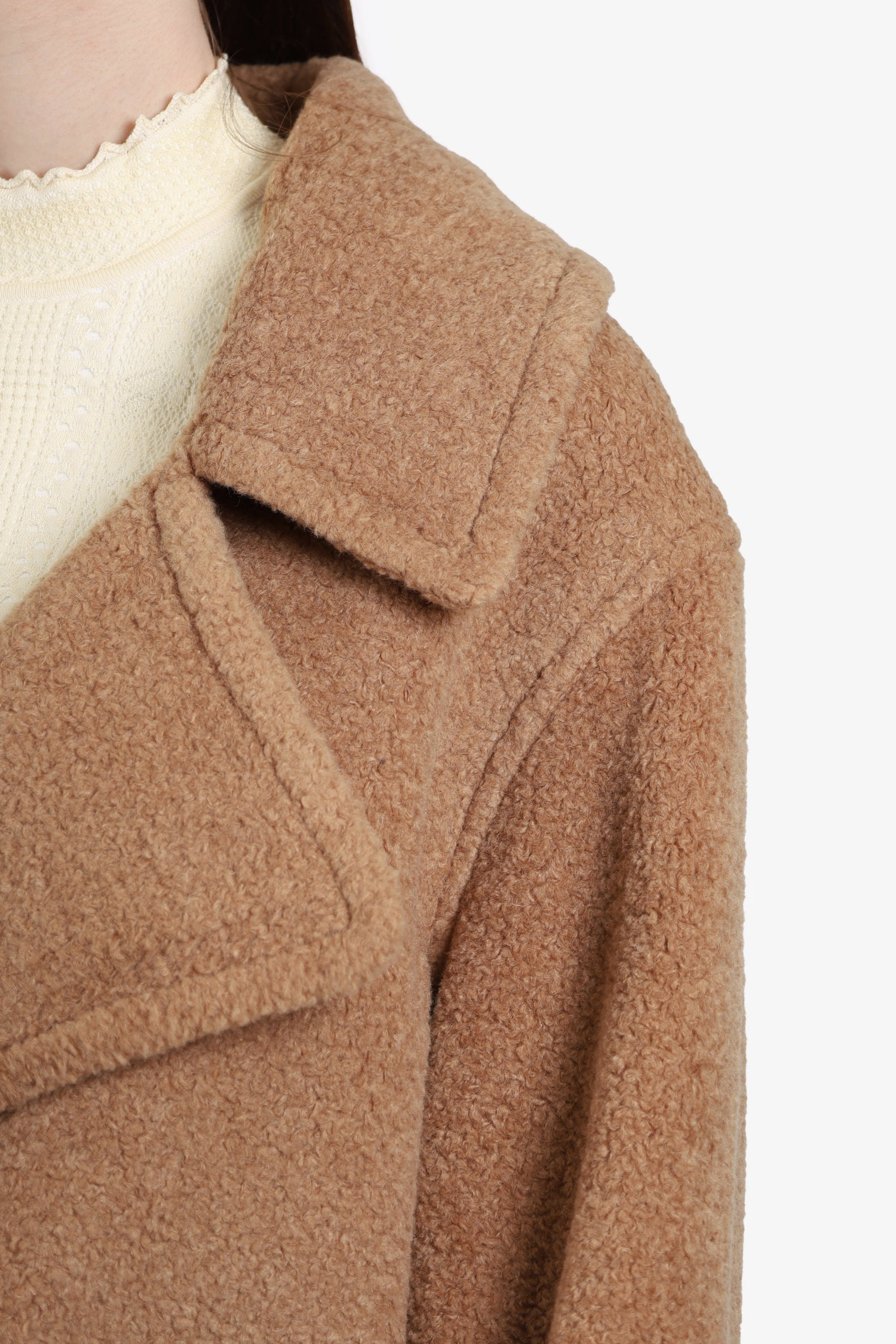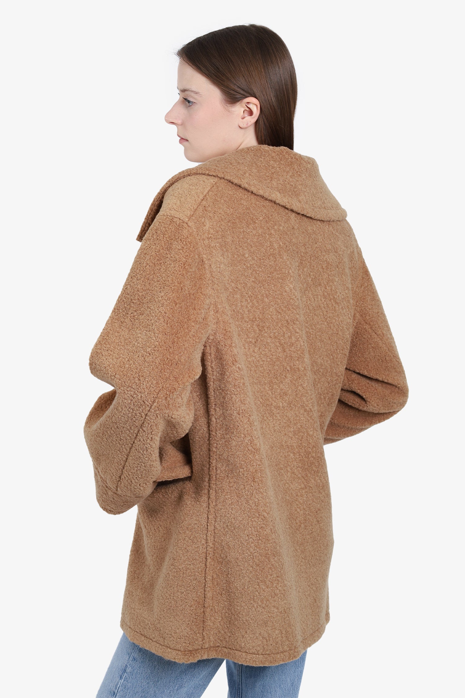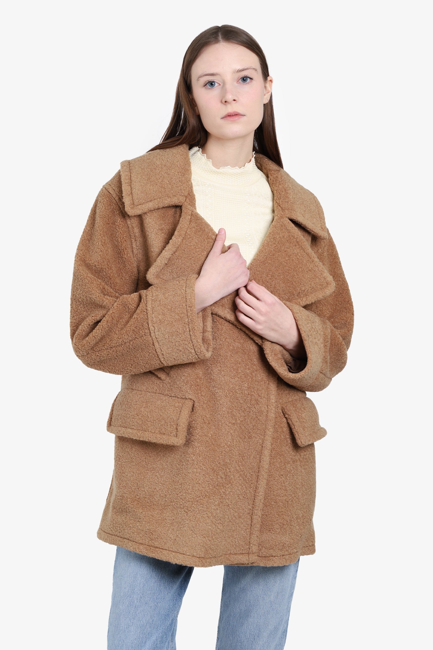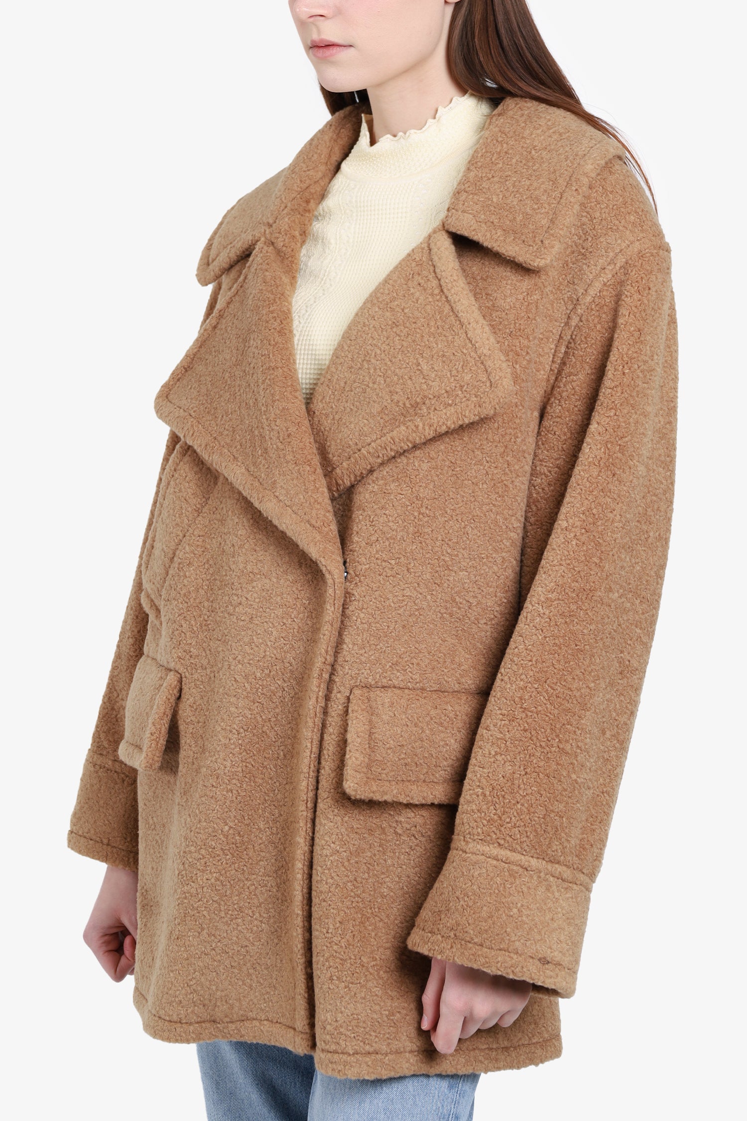 Refresh availabilitySmythe Camel Teddy Car Short Coat. Front snap button closure. Front open pockets. Lined. Tonal stitching.