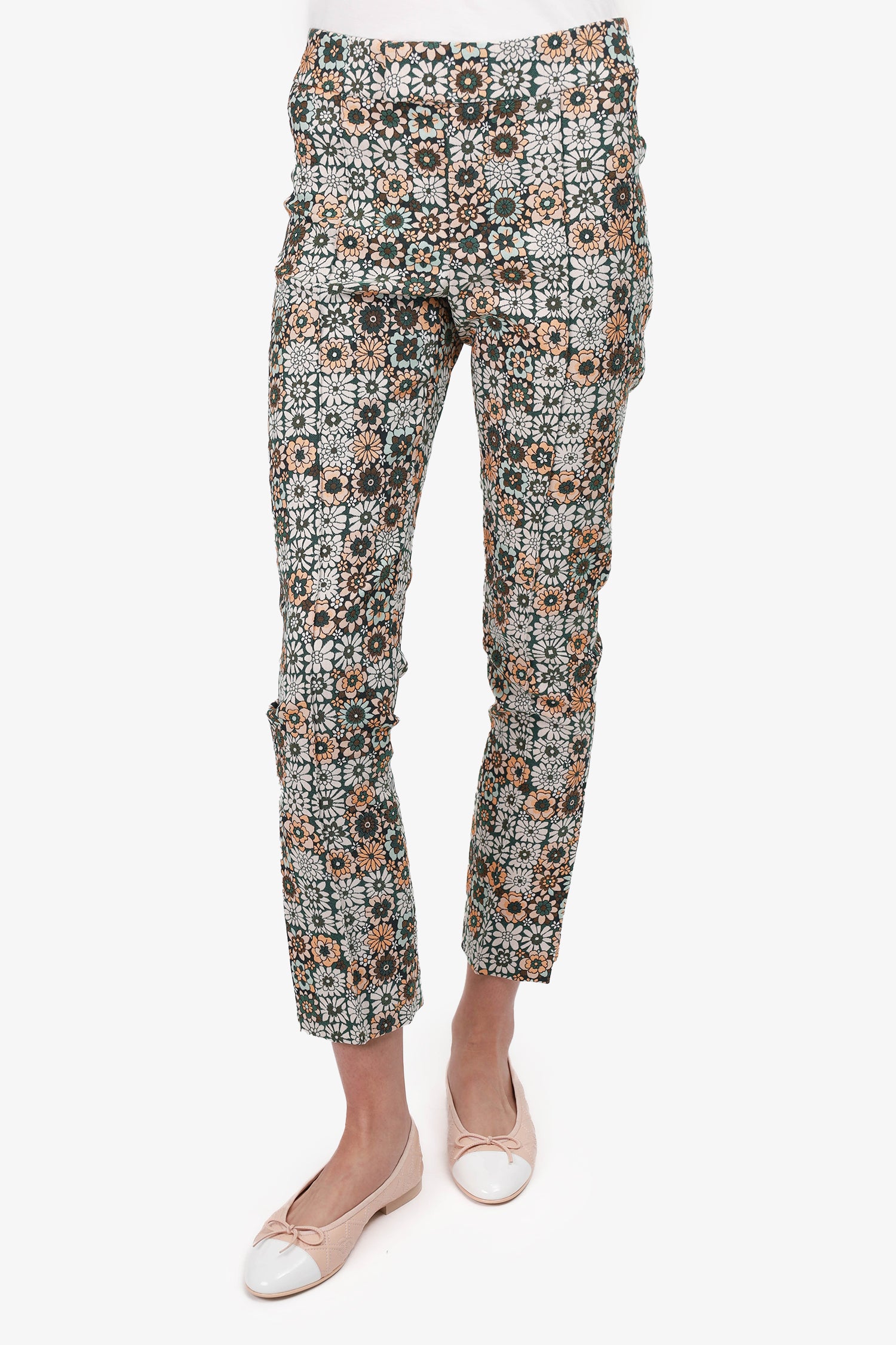 Refresh availabilitySmythe Floral Jacquard Pants. Front zip with hook and button-up closure. 2 faux slip pockets on rear. Slits on sides of bottom hems. Unlined. Tonal stitching.