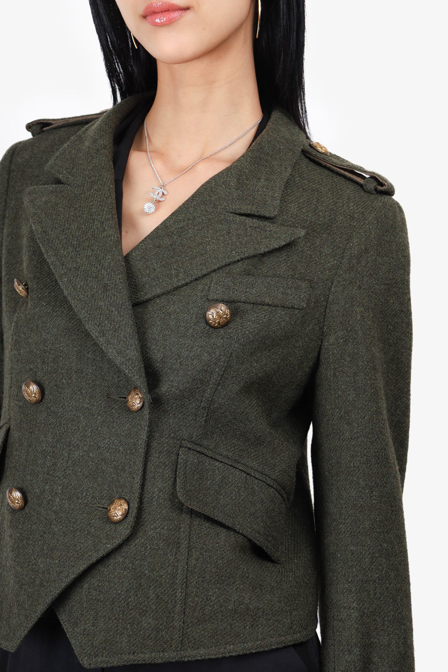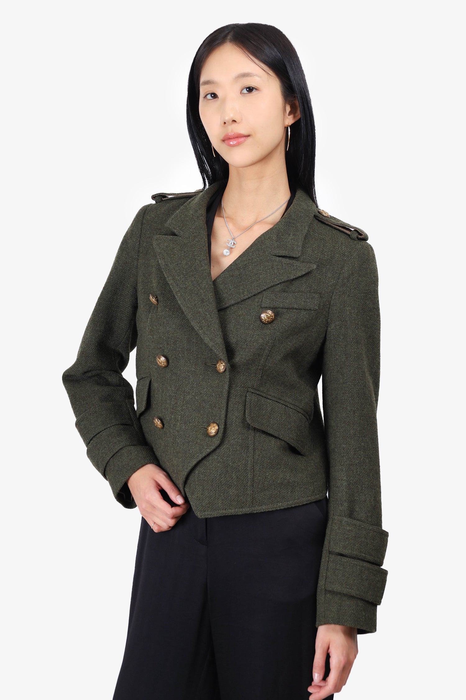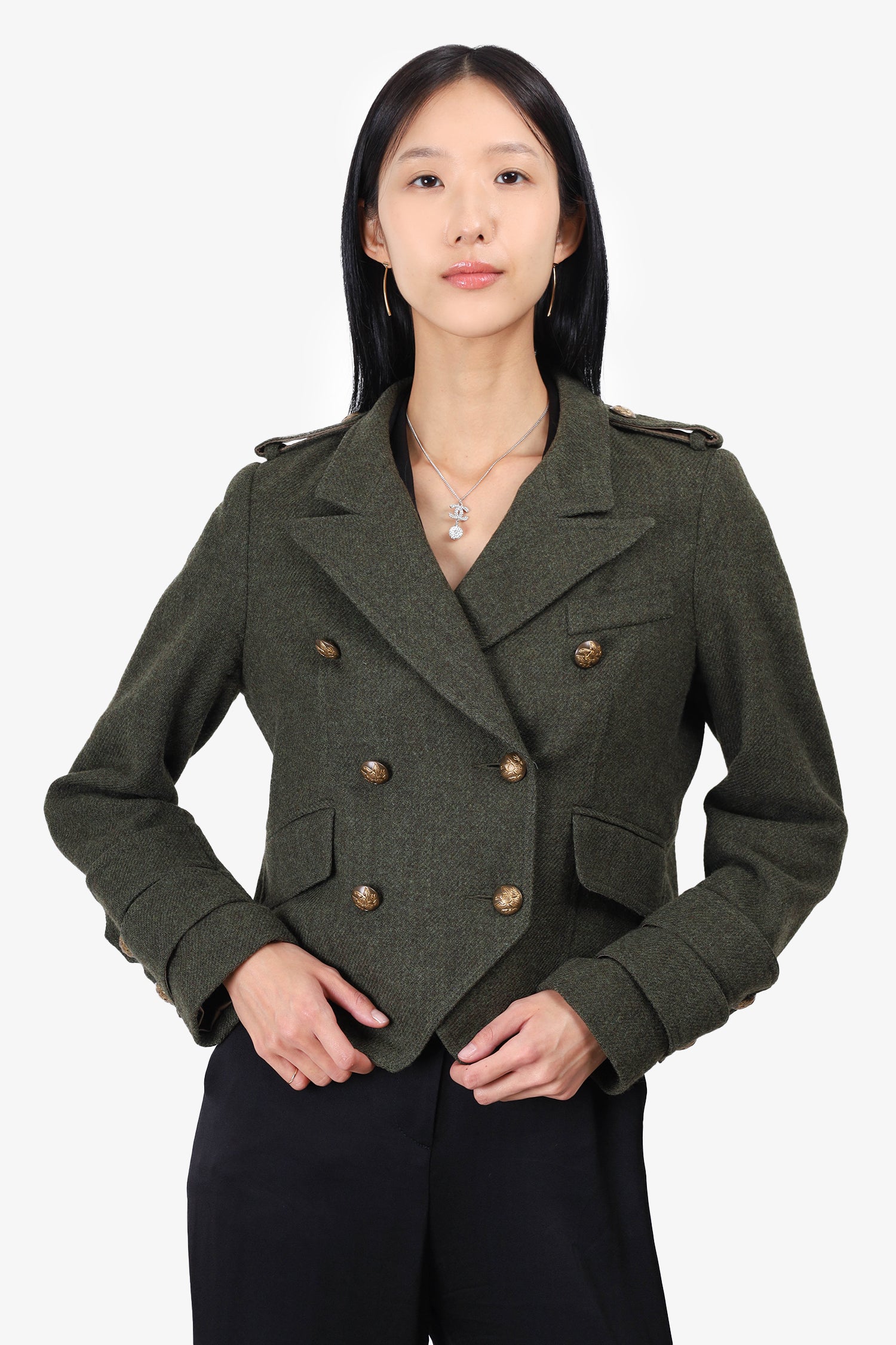 Refresh availabilitySmythe Green Wool Double Breasted Blazer. Gold-tone hardware. Lined. Tonal stitching.