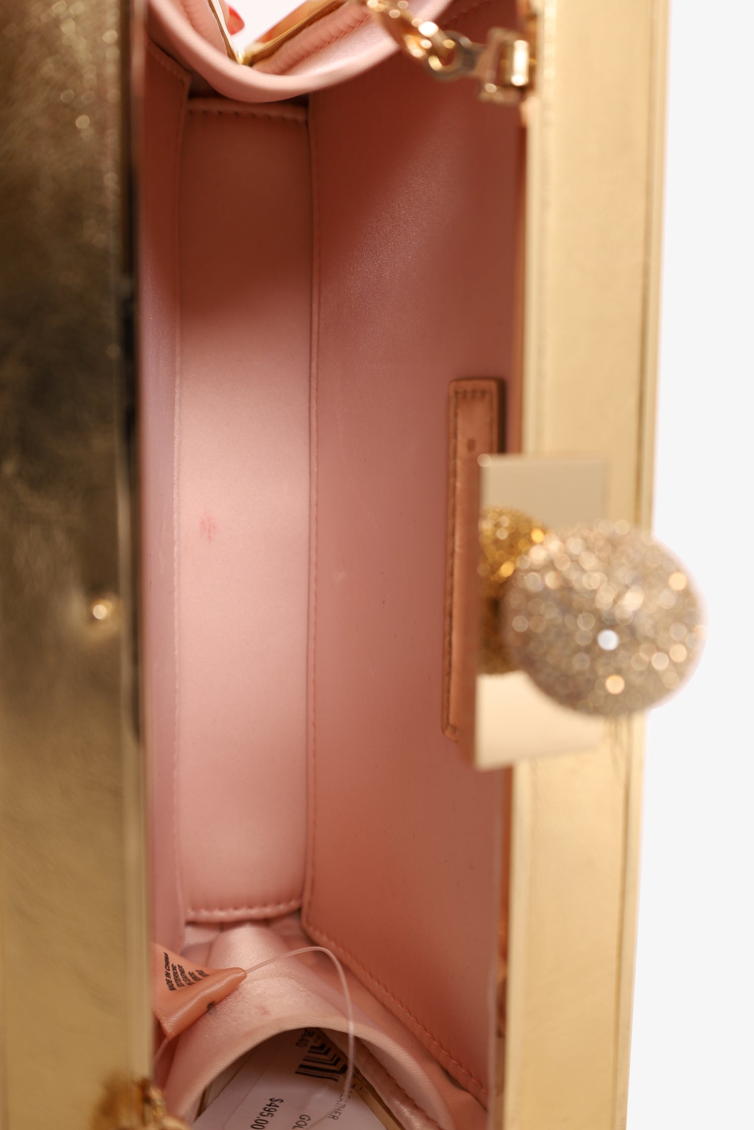 Sophia Webster Gold Metallic Leather Crystal Clutch