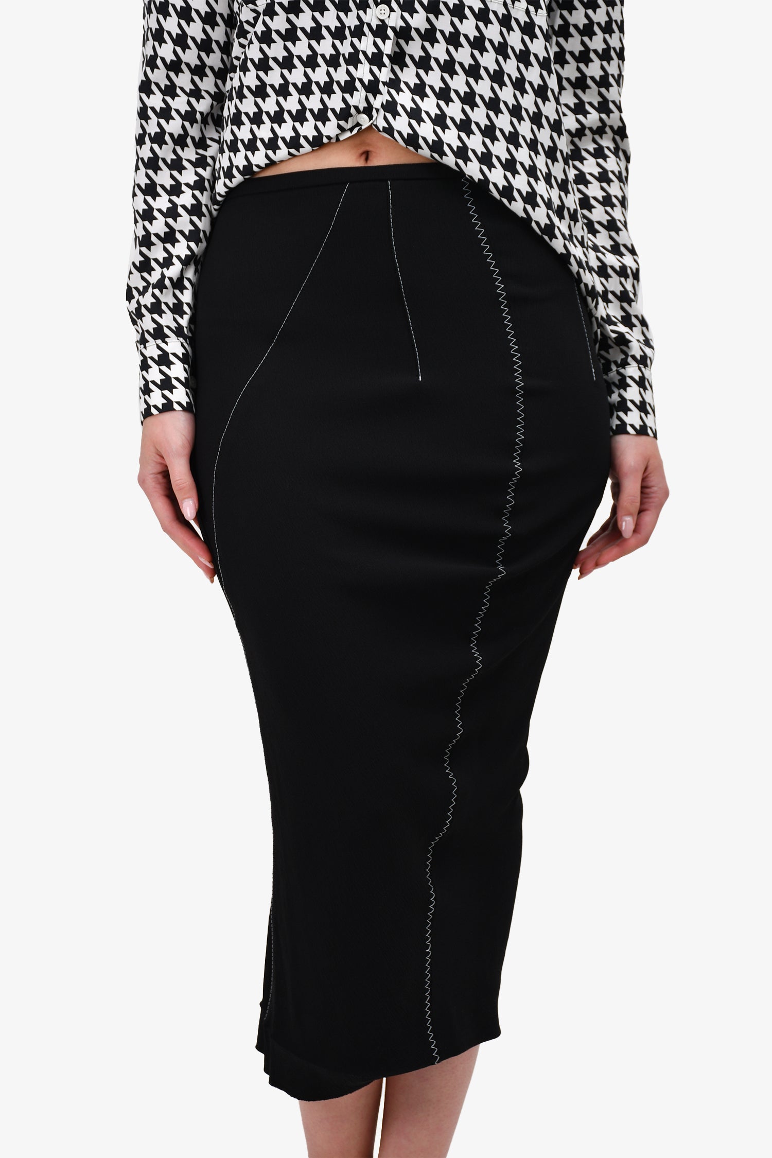Sportmax Black Contrast Stitch Midi Skirt Size 38