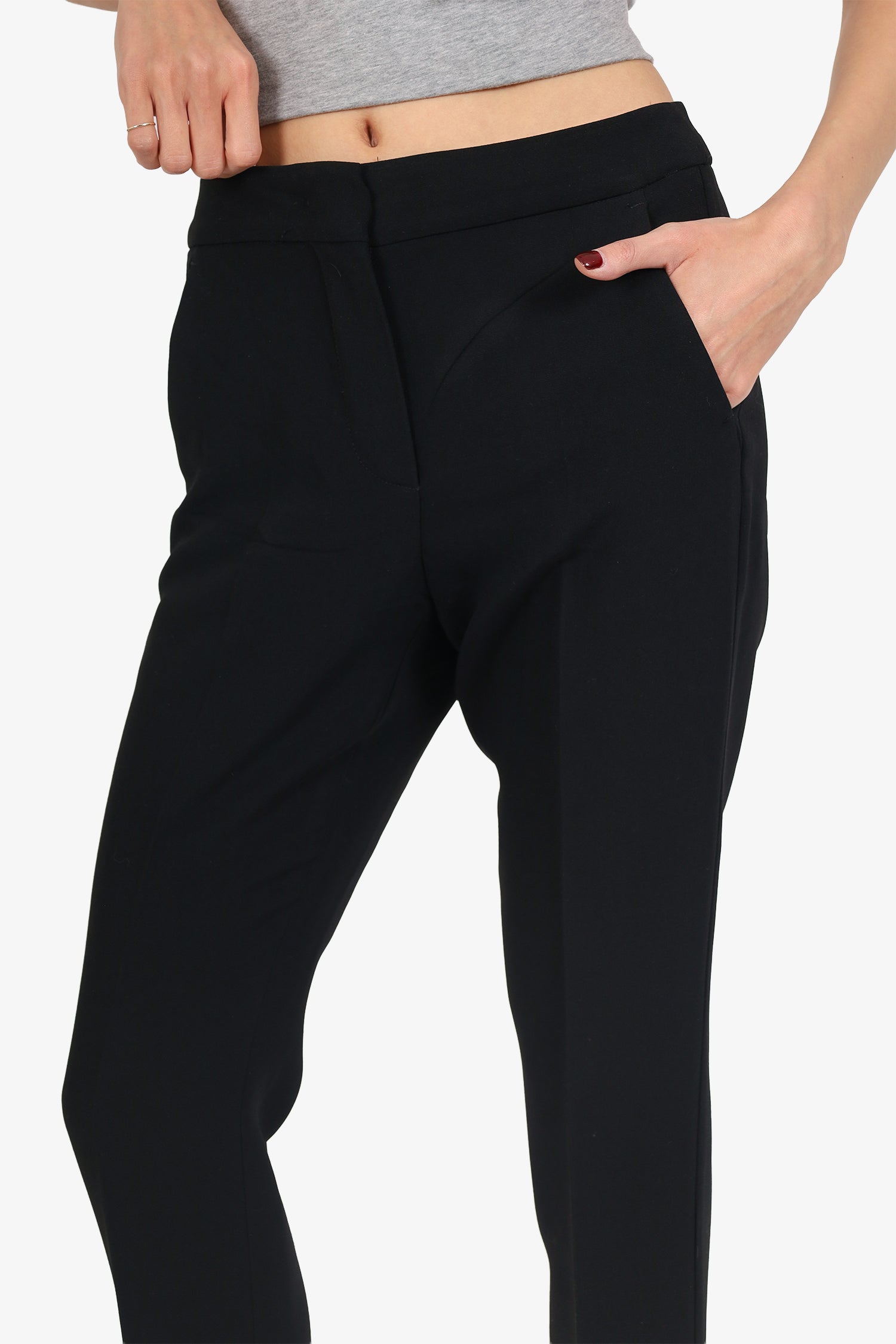 Refresh availabilitySportmax Black Straight Leg Pants. Slip-on. Front zip and hook closure. 4 exterior pockets; 2 side slip and 2 rear slip. Tonal stitching.