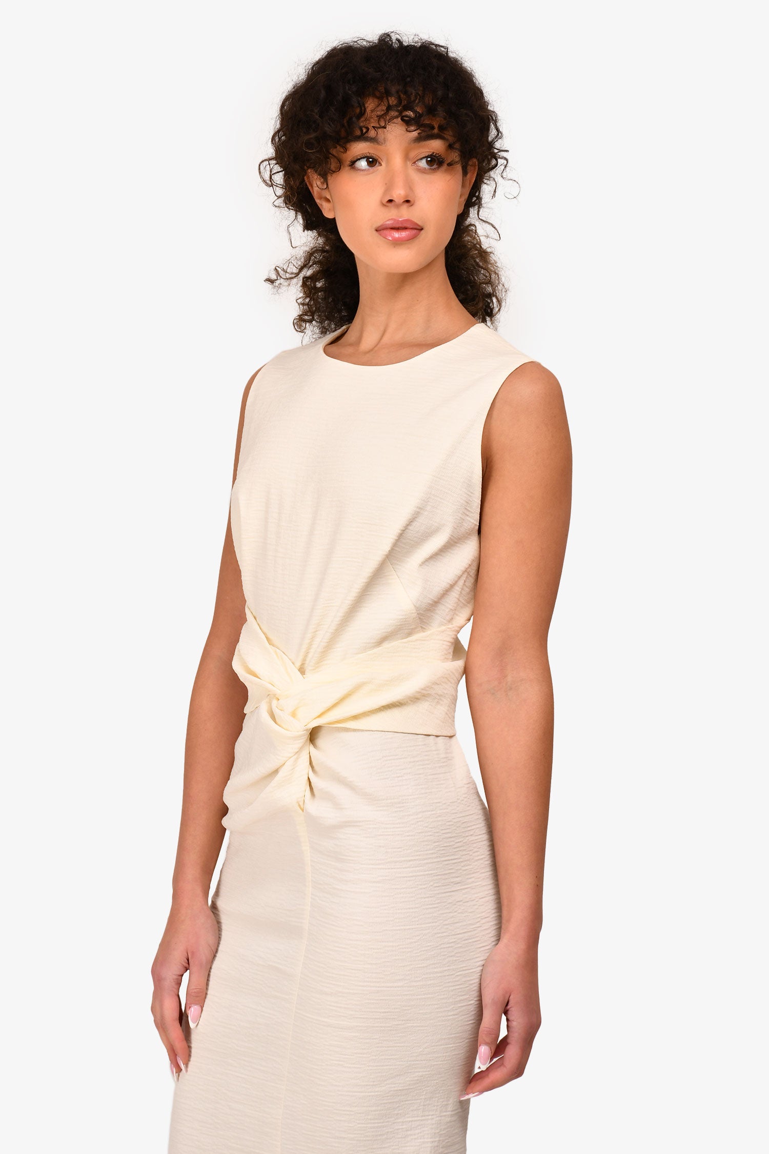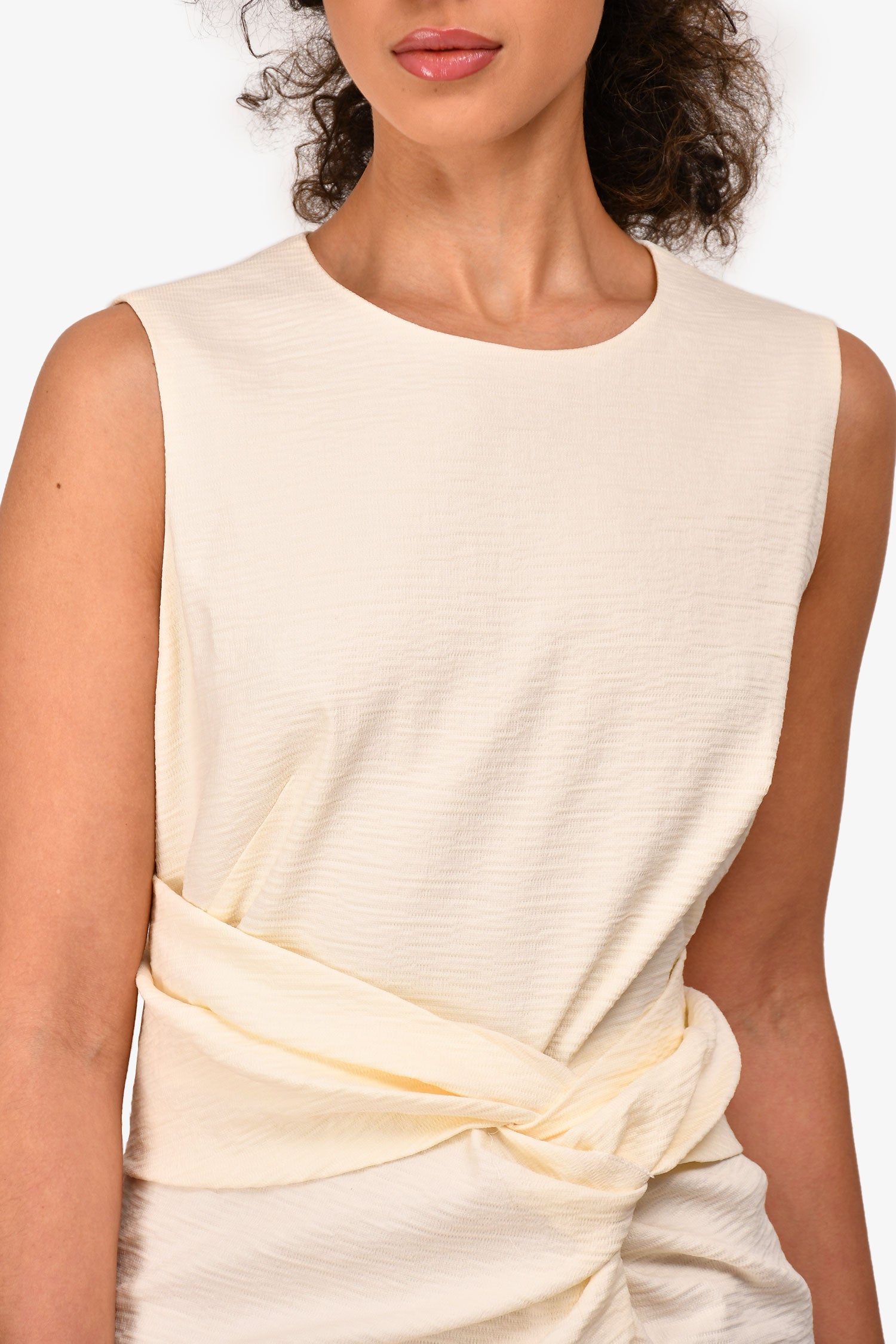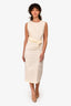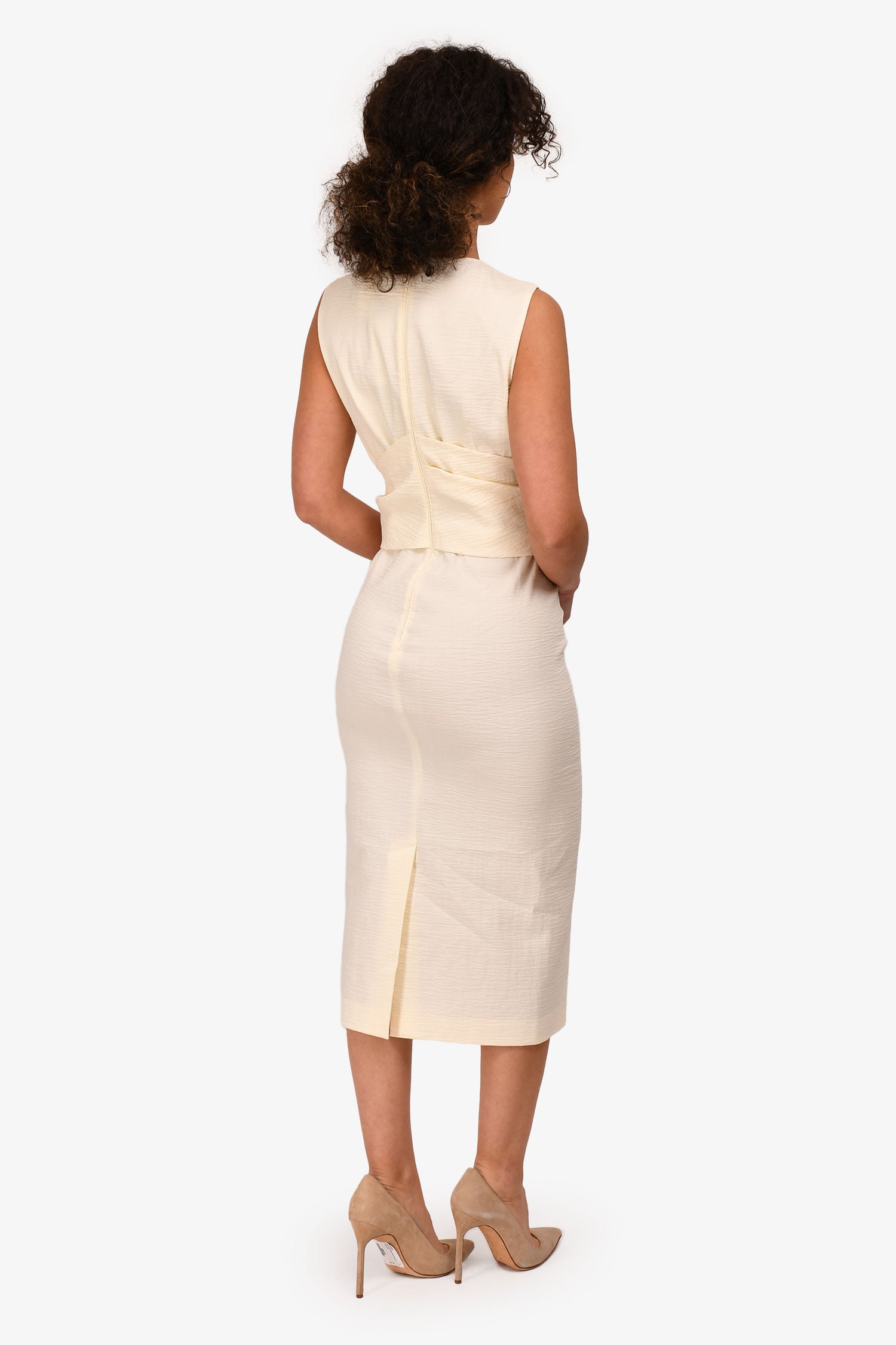 Refresh availabilitySportmax Cream Stretch Rouched Dress. Round neck. Rear zip-up closure. Rear crystal detail next to closure. Silver-tone hardware. Lined. Tonal stitching.