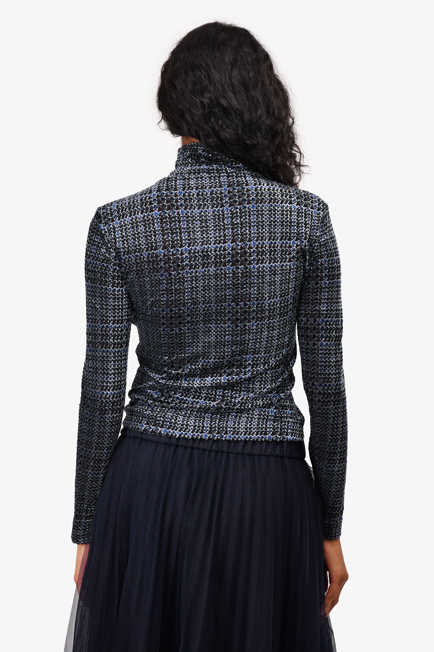 Sportmax Navy Patterned/Textured Turtleneck Top Size S