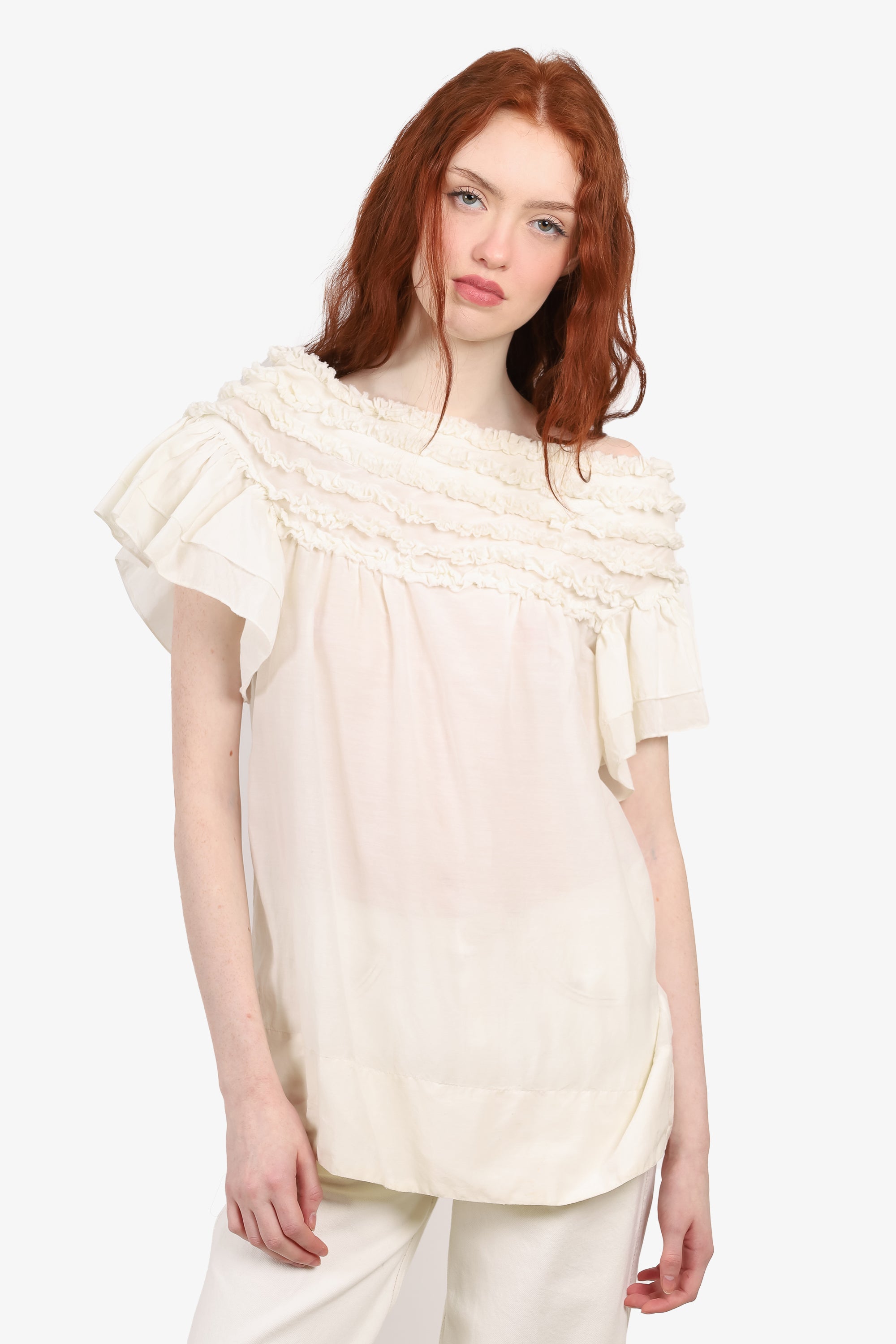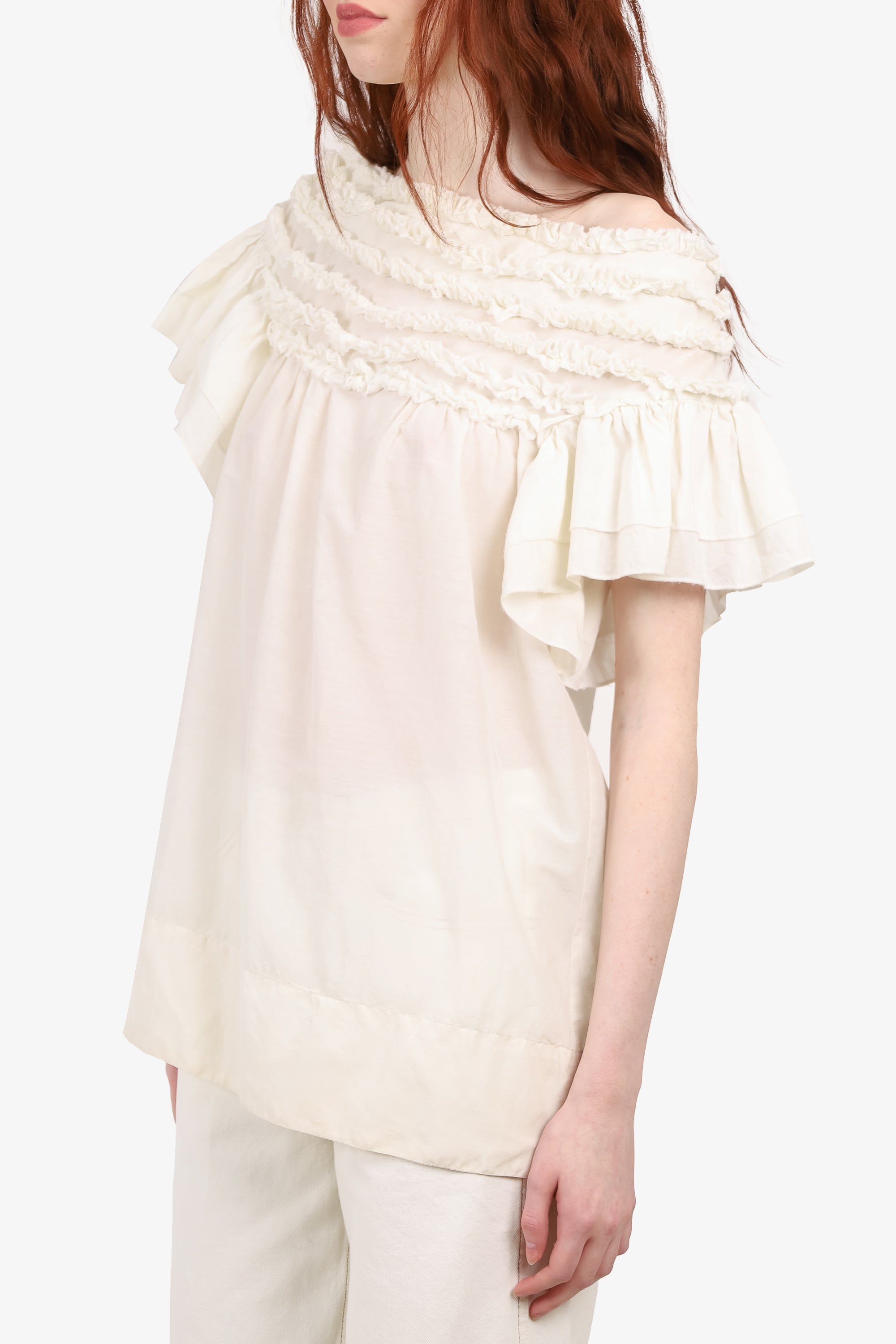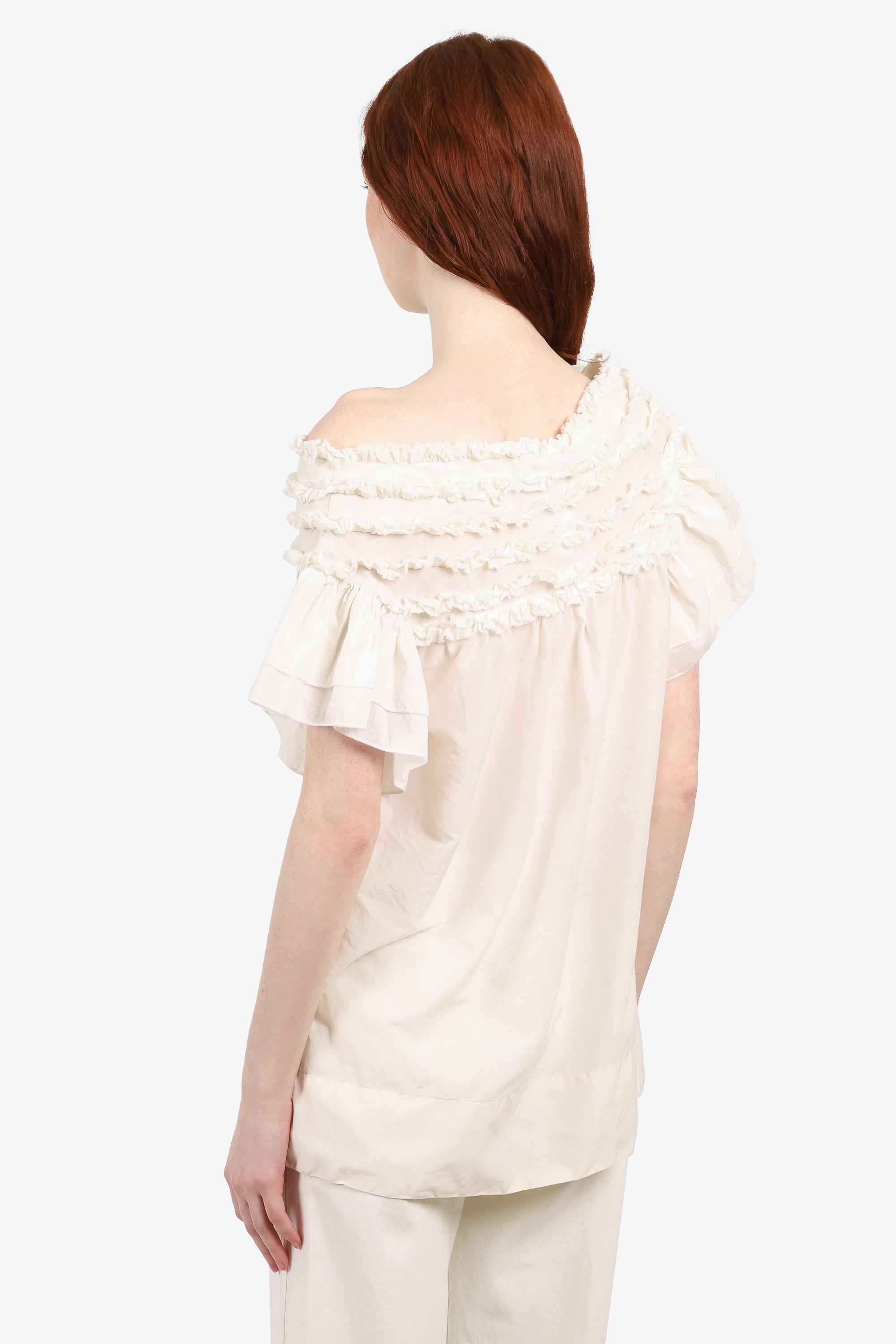 Sportmax White Raw Ruffle Short-sleeve Top Size 6