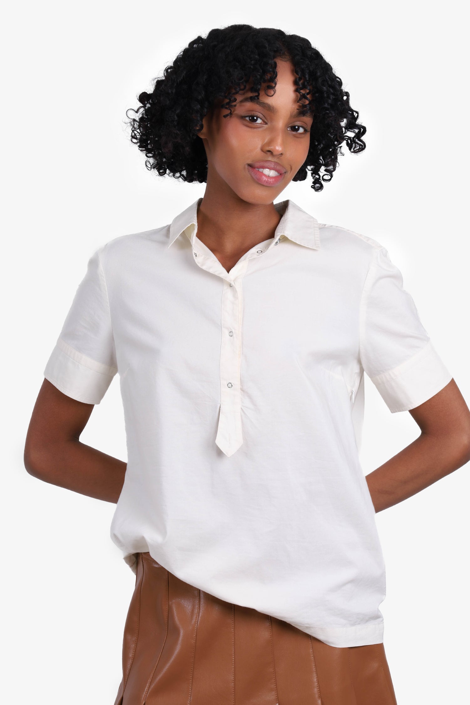 Refresh availabilitySportmax White Pleated Top. Quarter-button closure. Collared neckline. Tonal stitching.