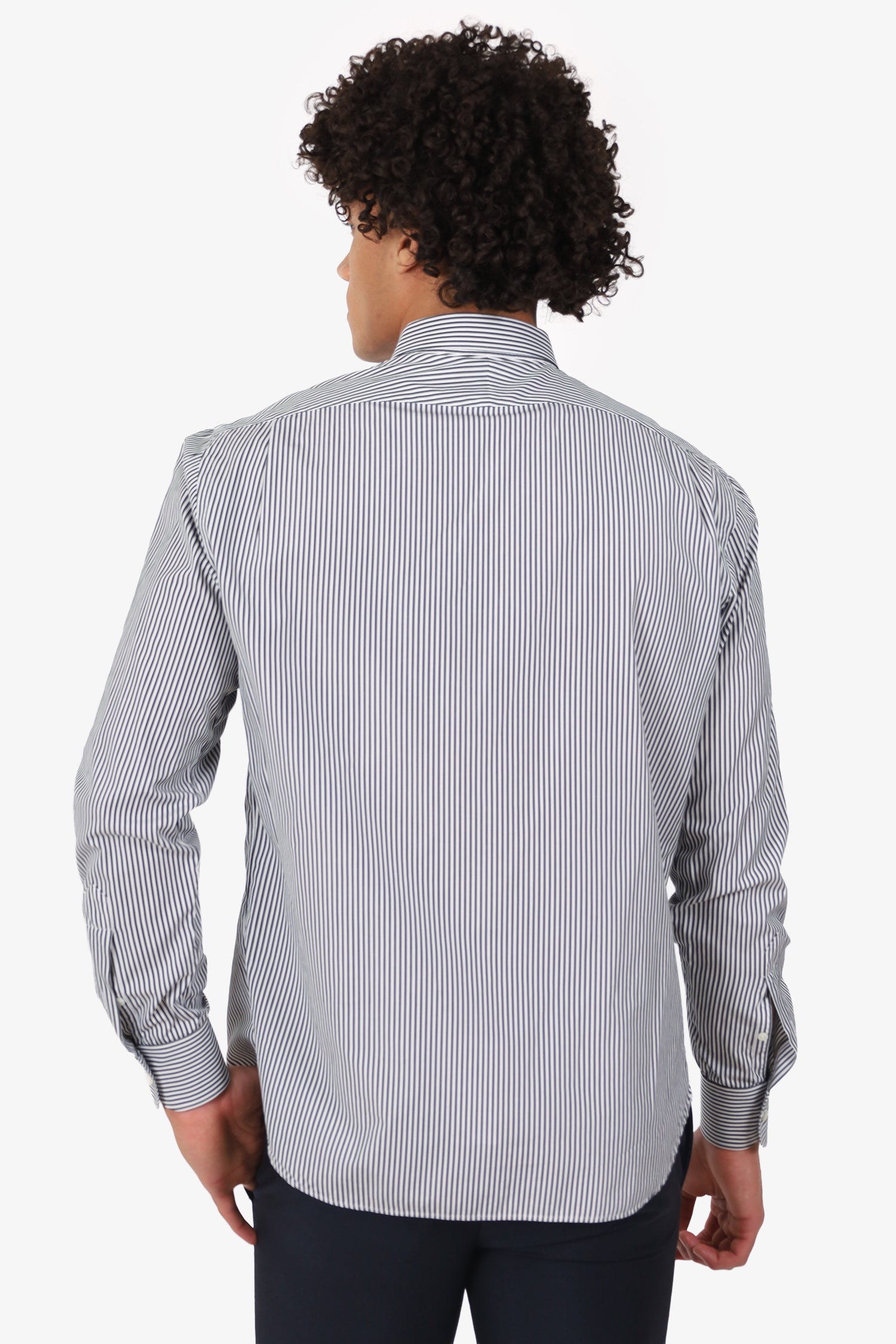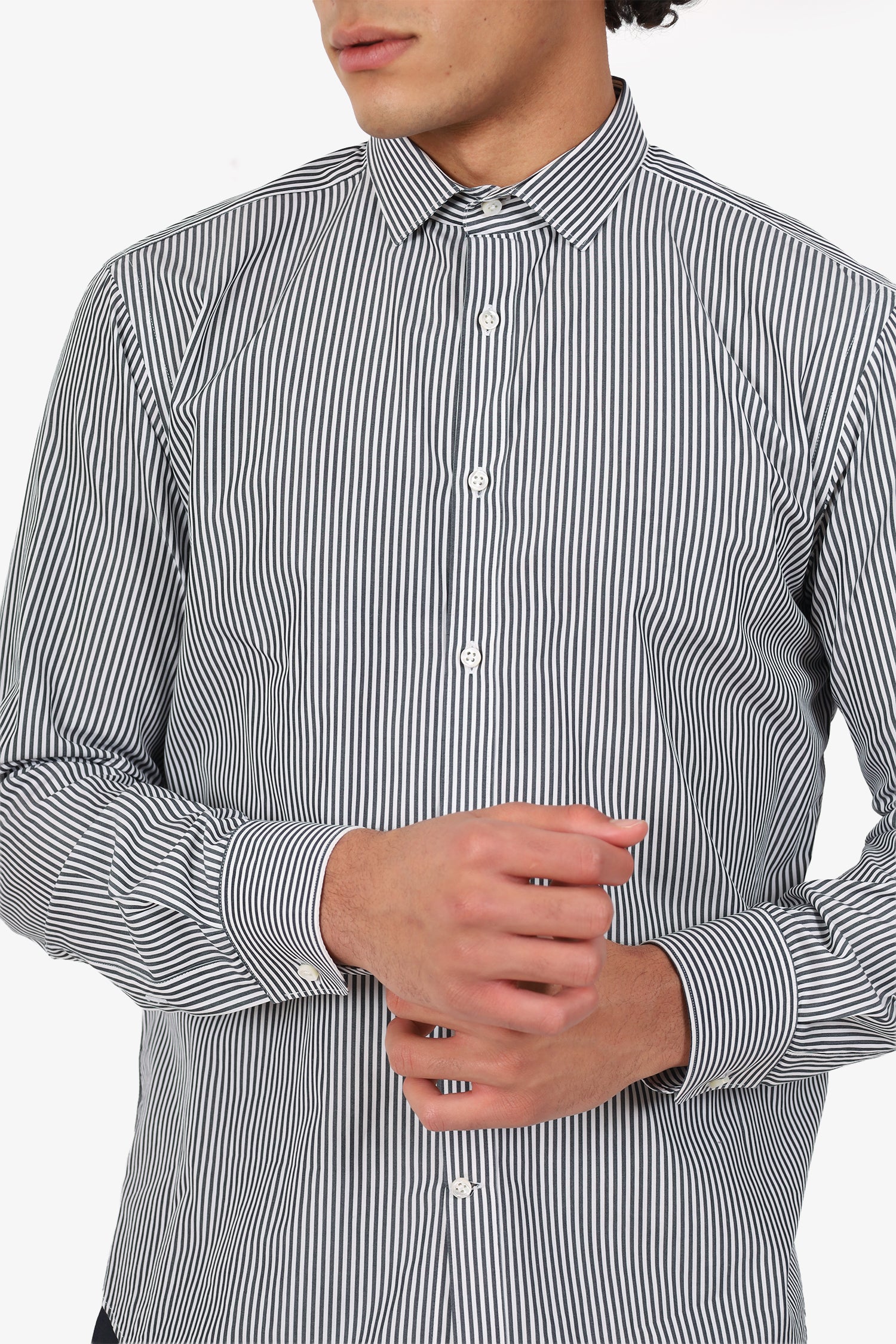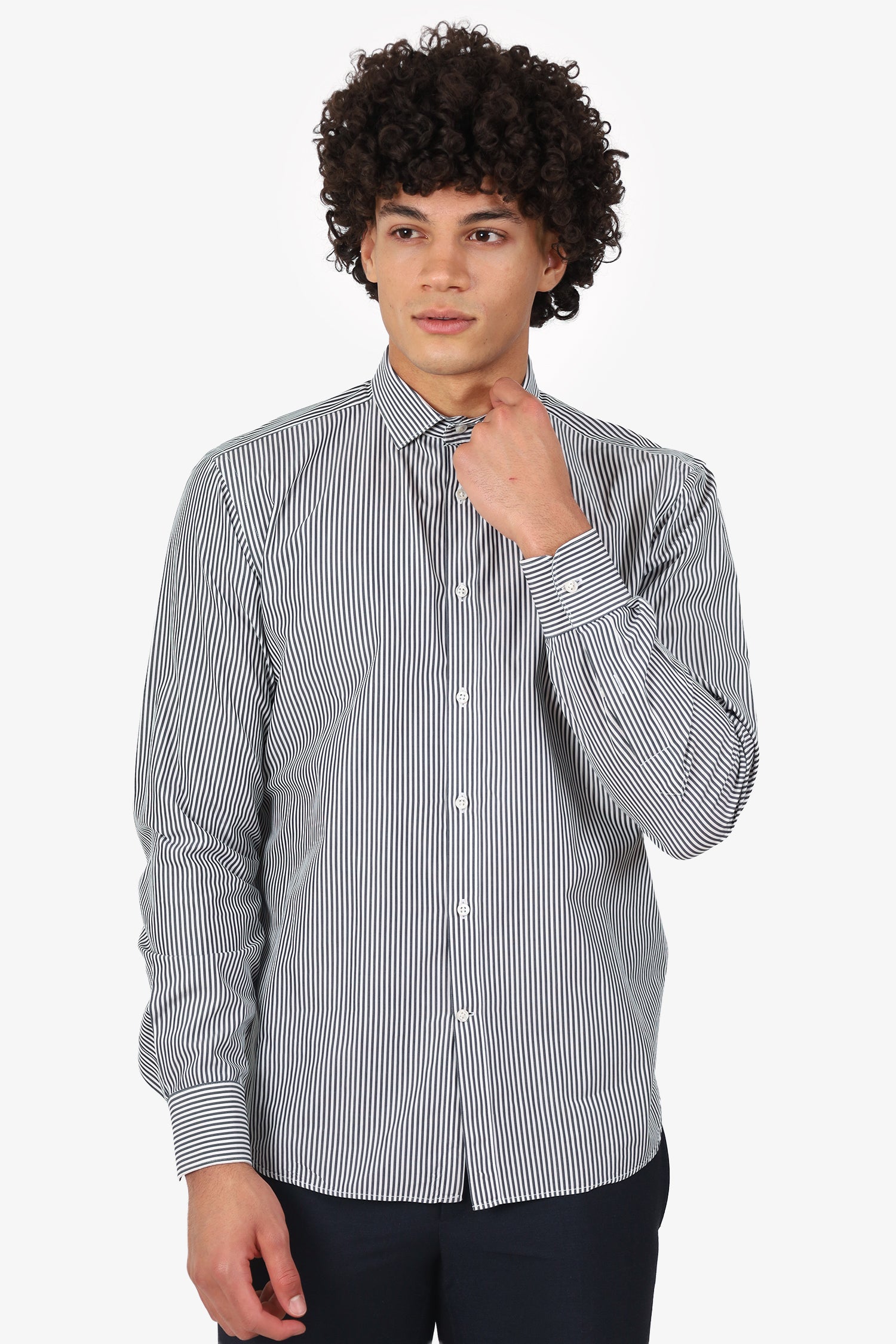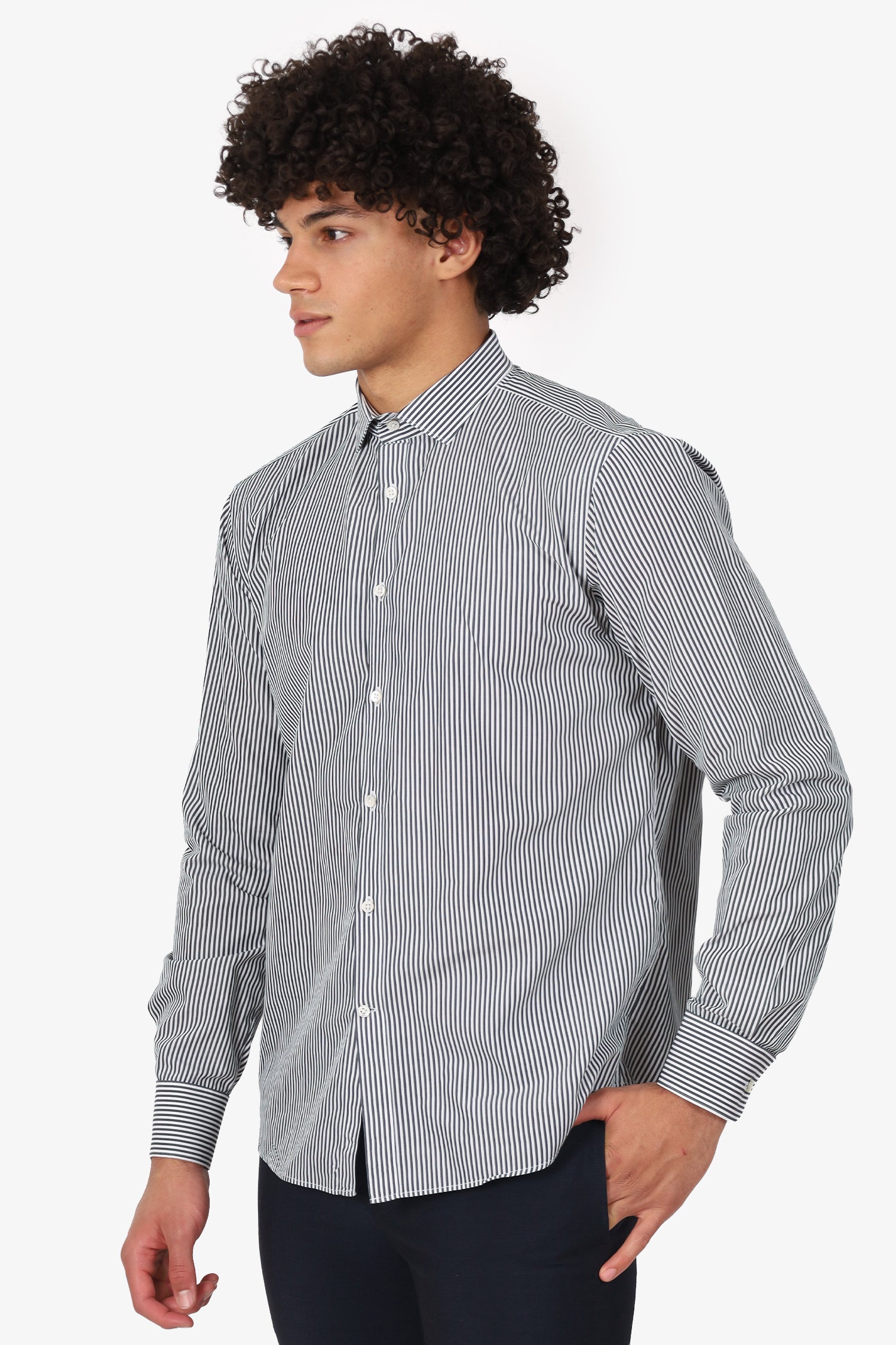 Refresh availabilitySpurr Black/White Cotton Striped Button Down Shirt. Pull-on. Collared neckline. Front button-up closure. Sleeve cuffs with button-up closure. Tonal stitching.