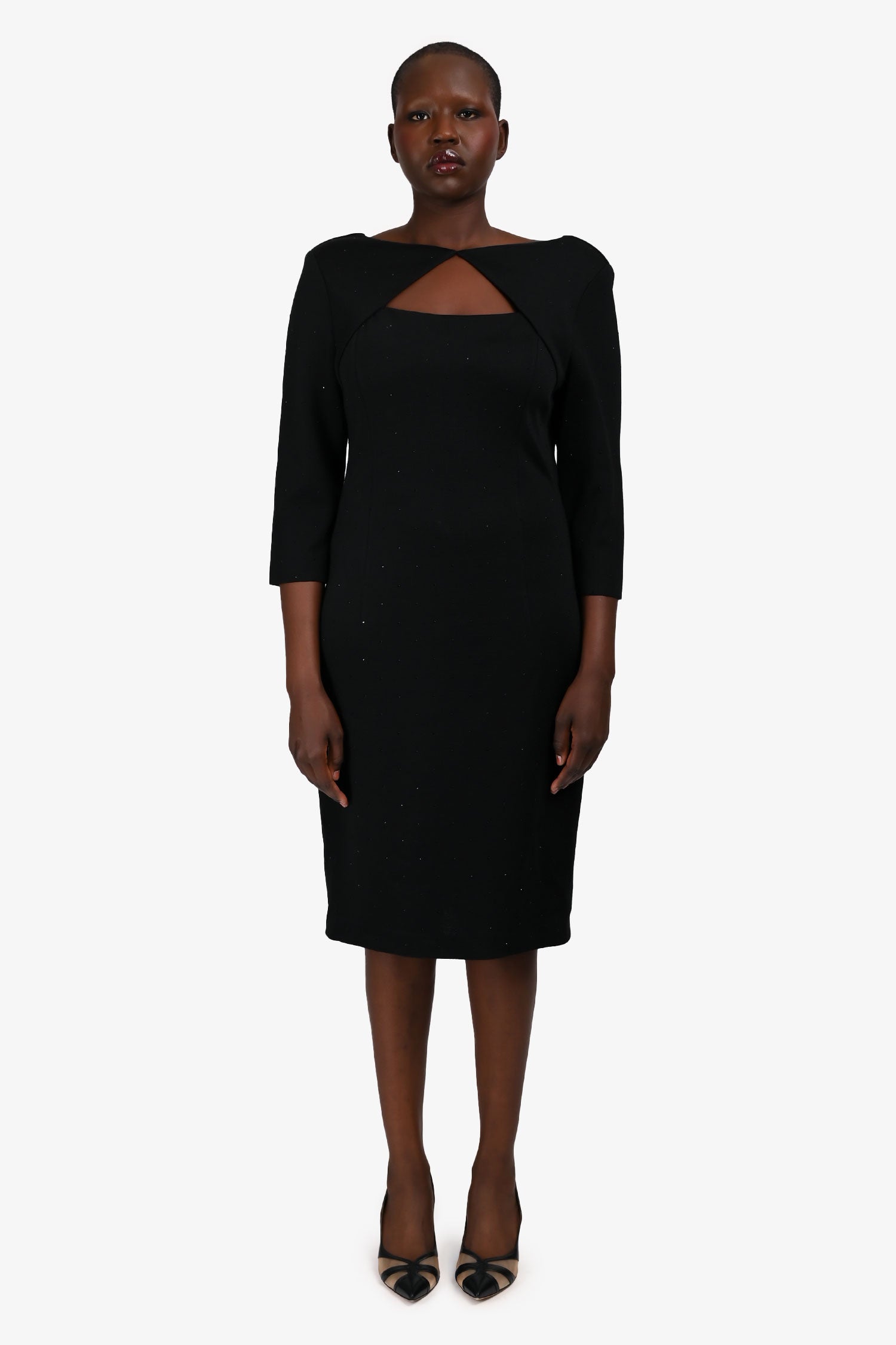 St. John Black Beaded Padded Shoulder Cut Out 3/4 Sleeve Dress Size 12