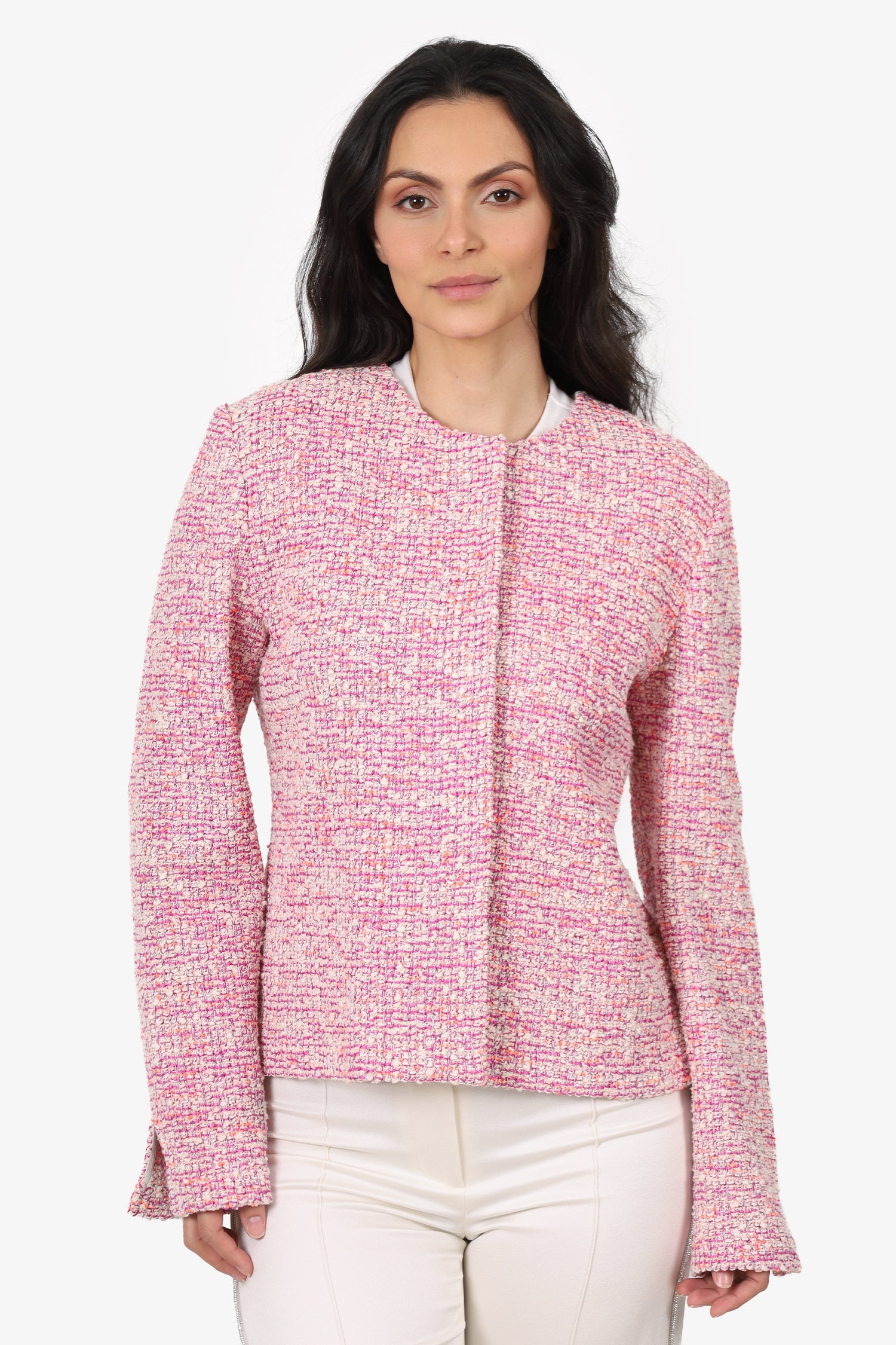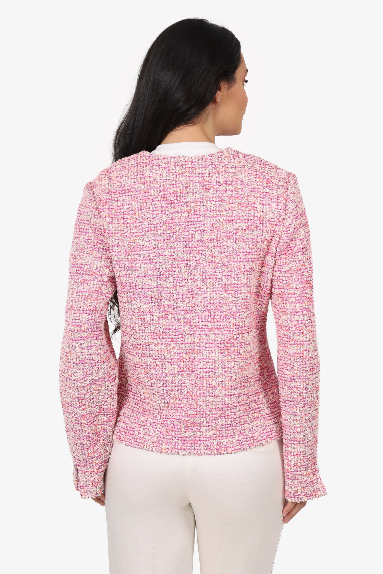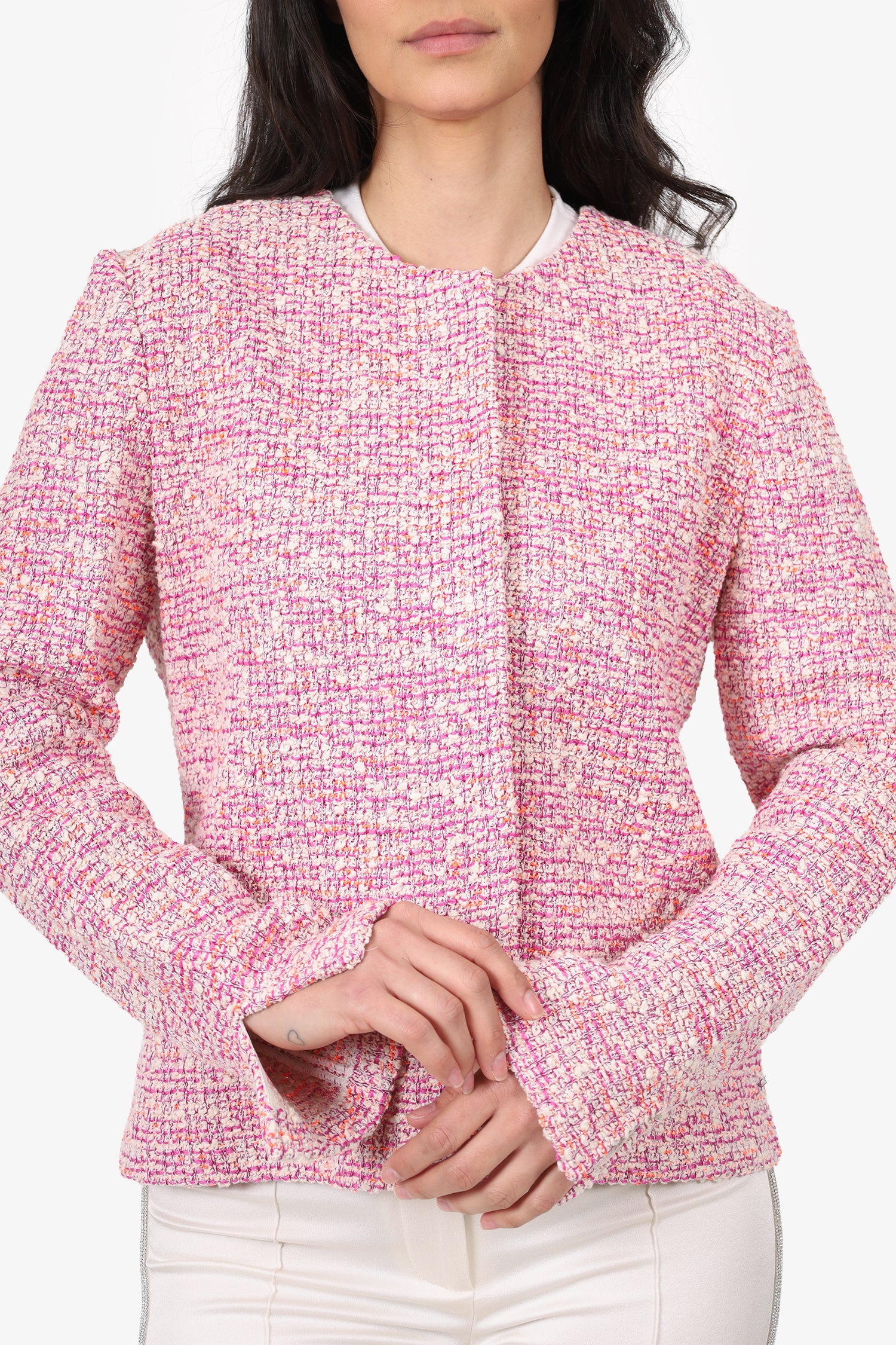 Refresh availabilitySt. John Pink Tweed Jacket. Pull-on. Round neckline. Front snap-button-up closure. Silver-tone hardware. Tonal stitching.