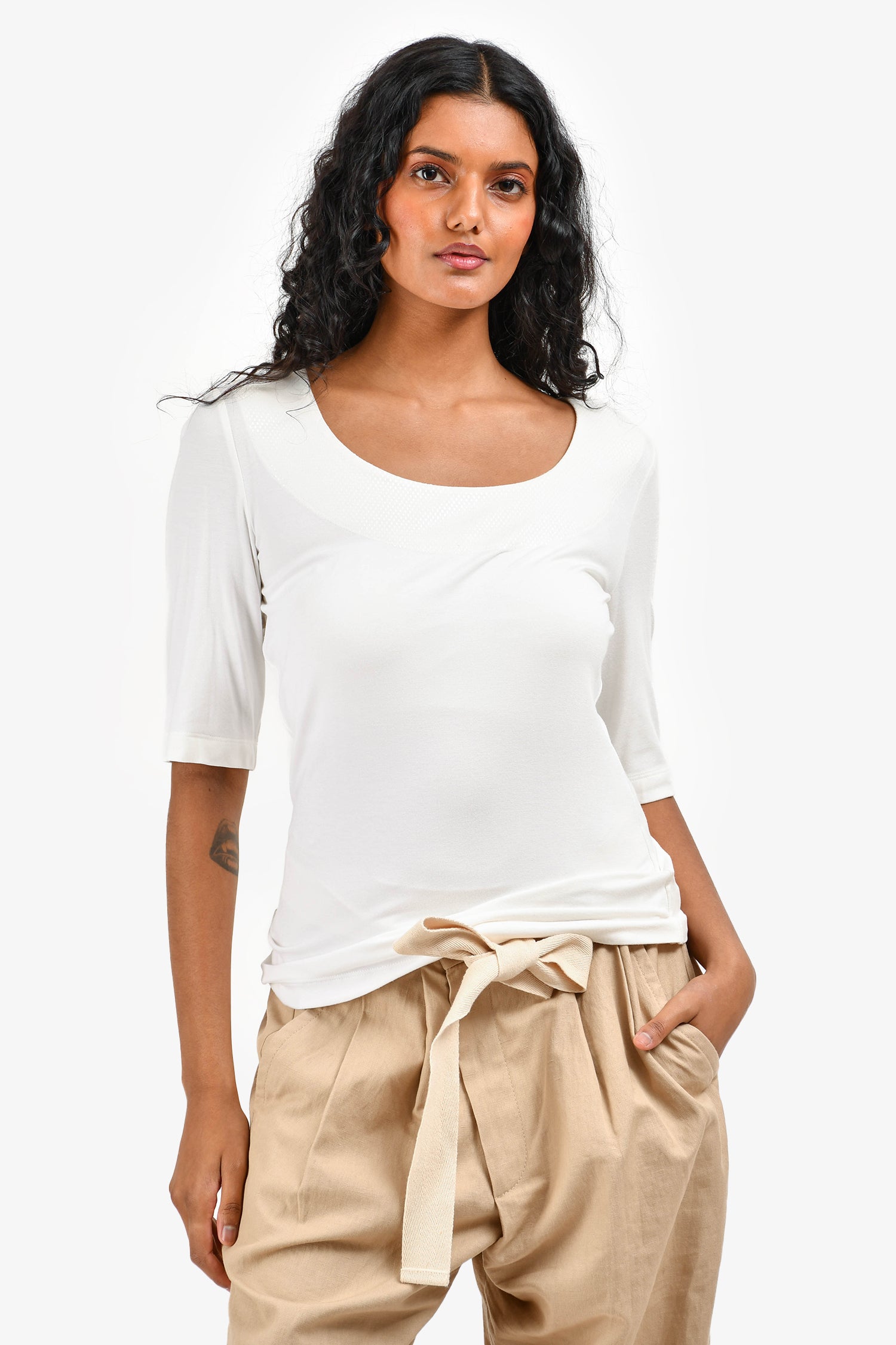 Refresh availabilitySt. John White Boat Neckline 3/4 Sleeve Top. Pull-on style. Tonal stitching.