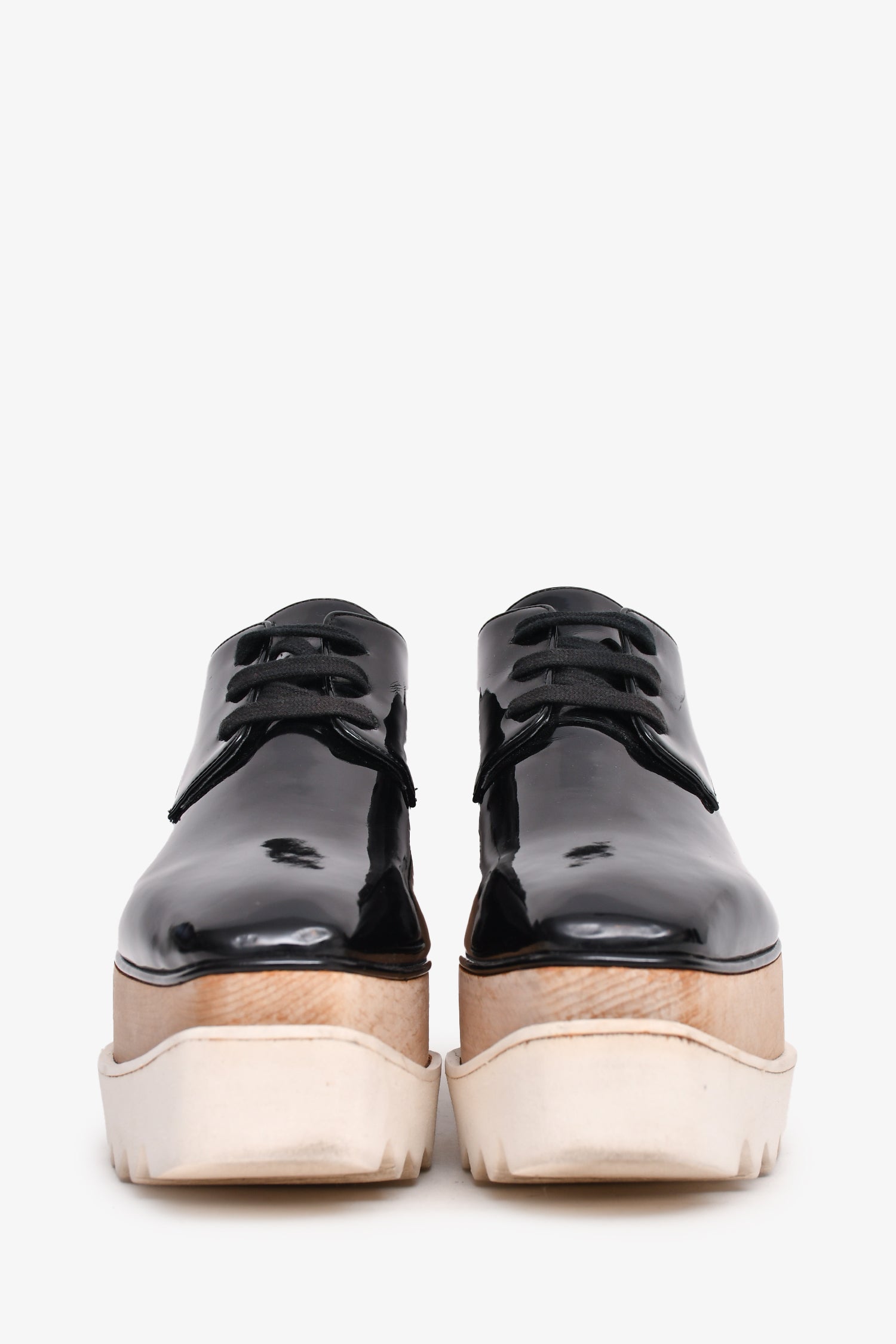 Stella McCartney Black Patent Leather Platform Sneakers Size 35
