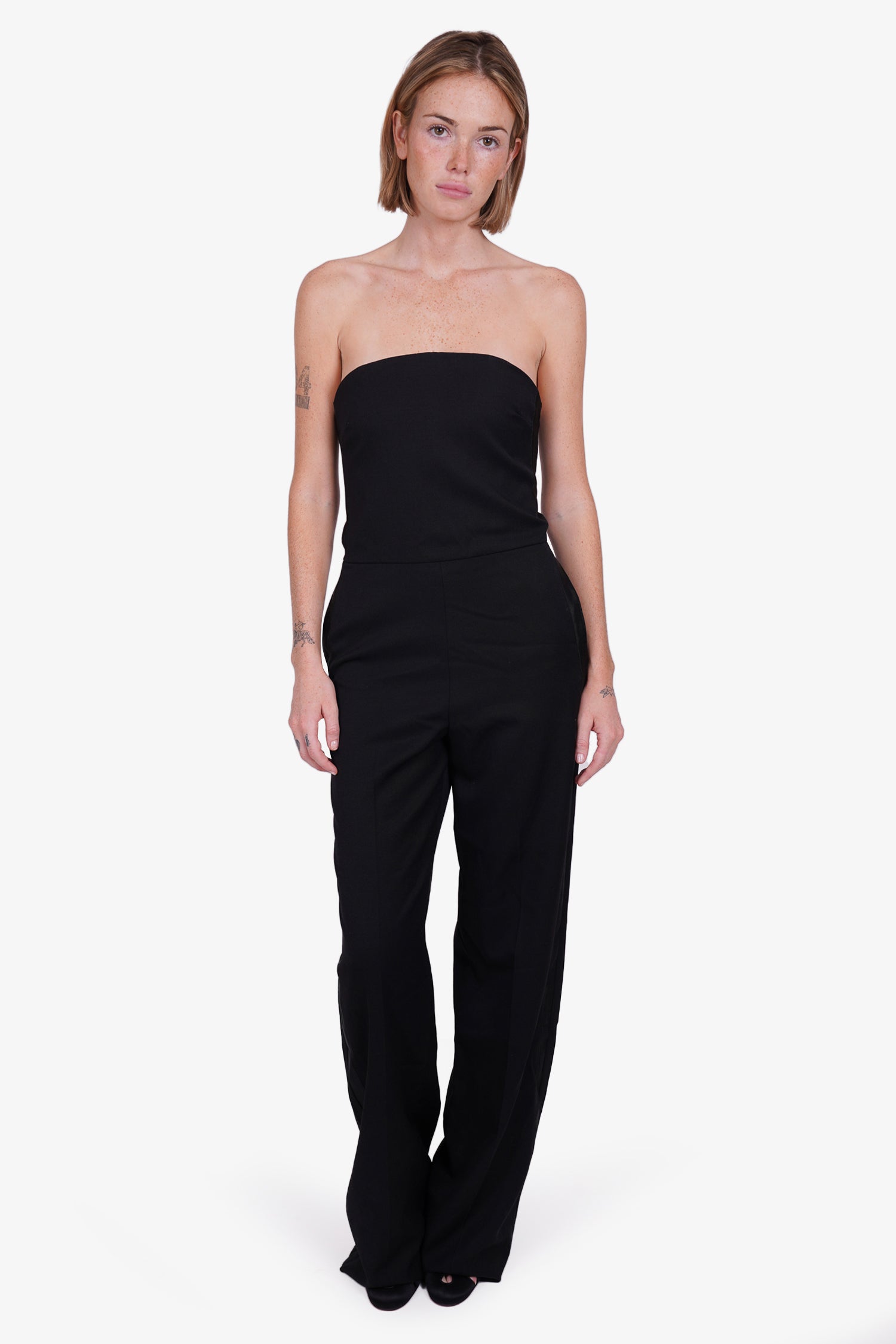 Stella McCartney Black Strapless Jumpsuit. Rear zip closure. Lined. Tonal stitching.