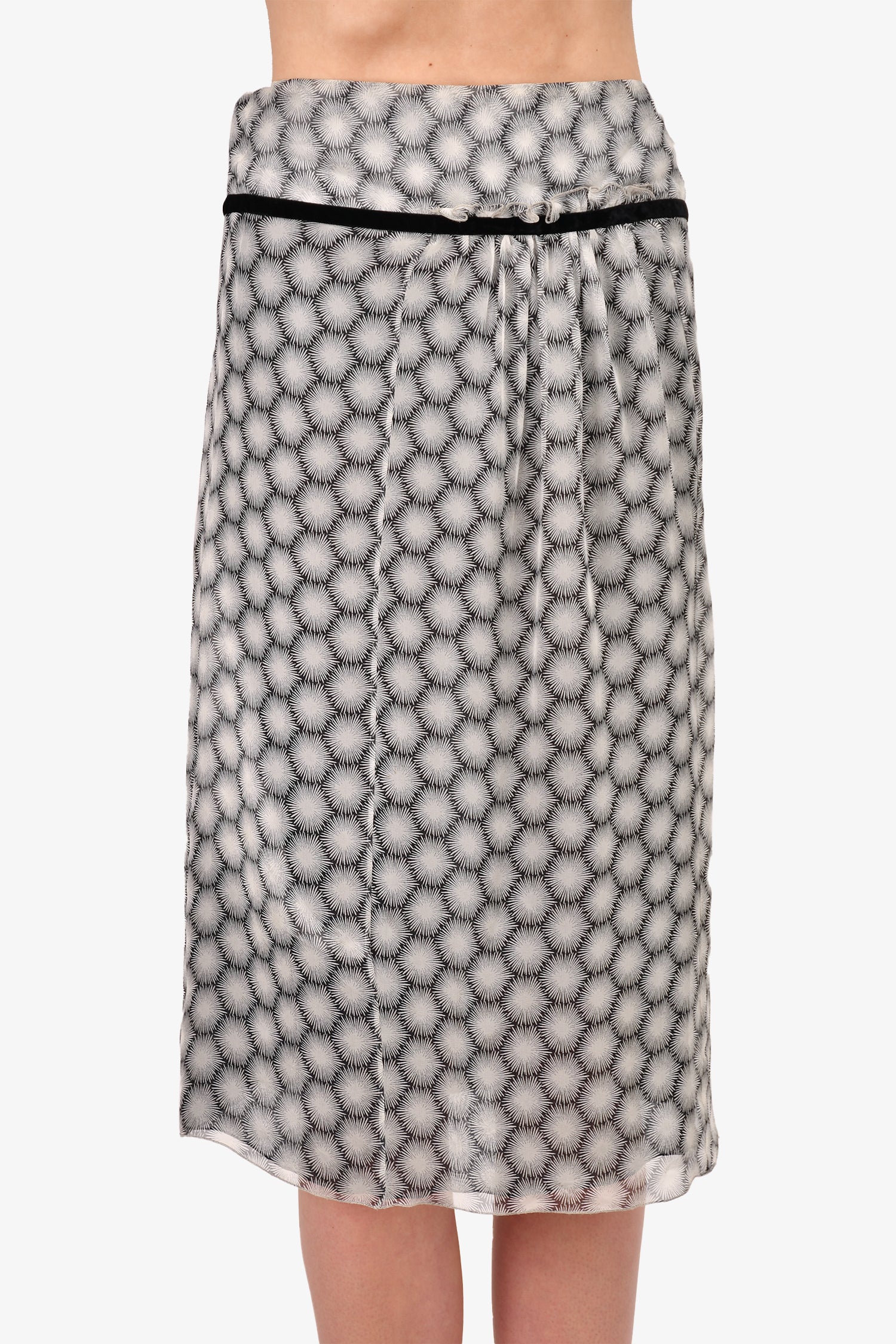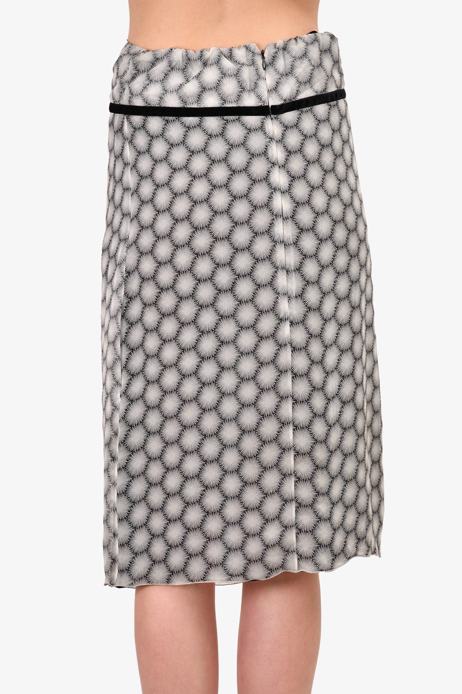 Stella McCartney Black/White Silk Graphic Pleated Midi Skirt Size 40