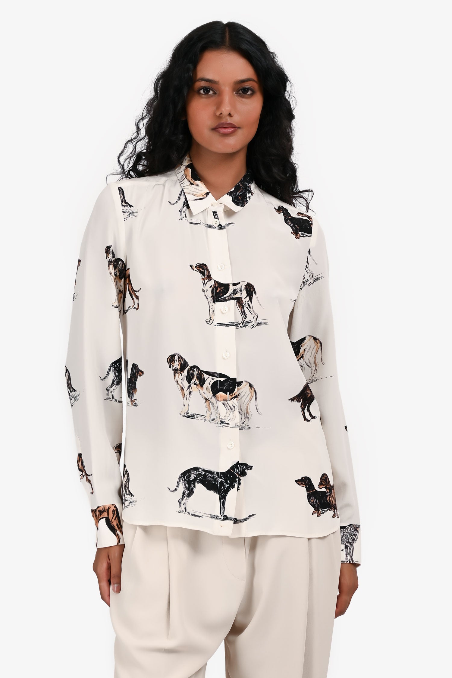 Stella McCartney Cream Dog Printed Silk Blouse Size 40