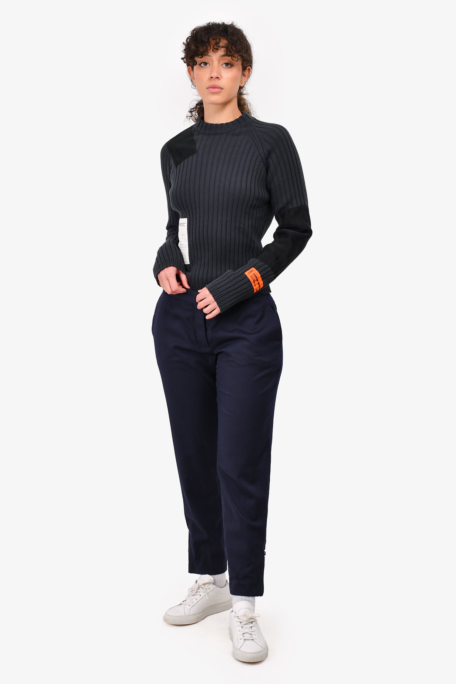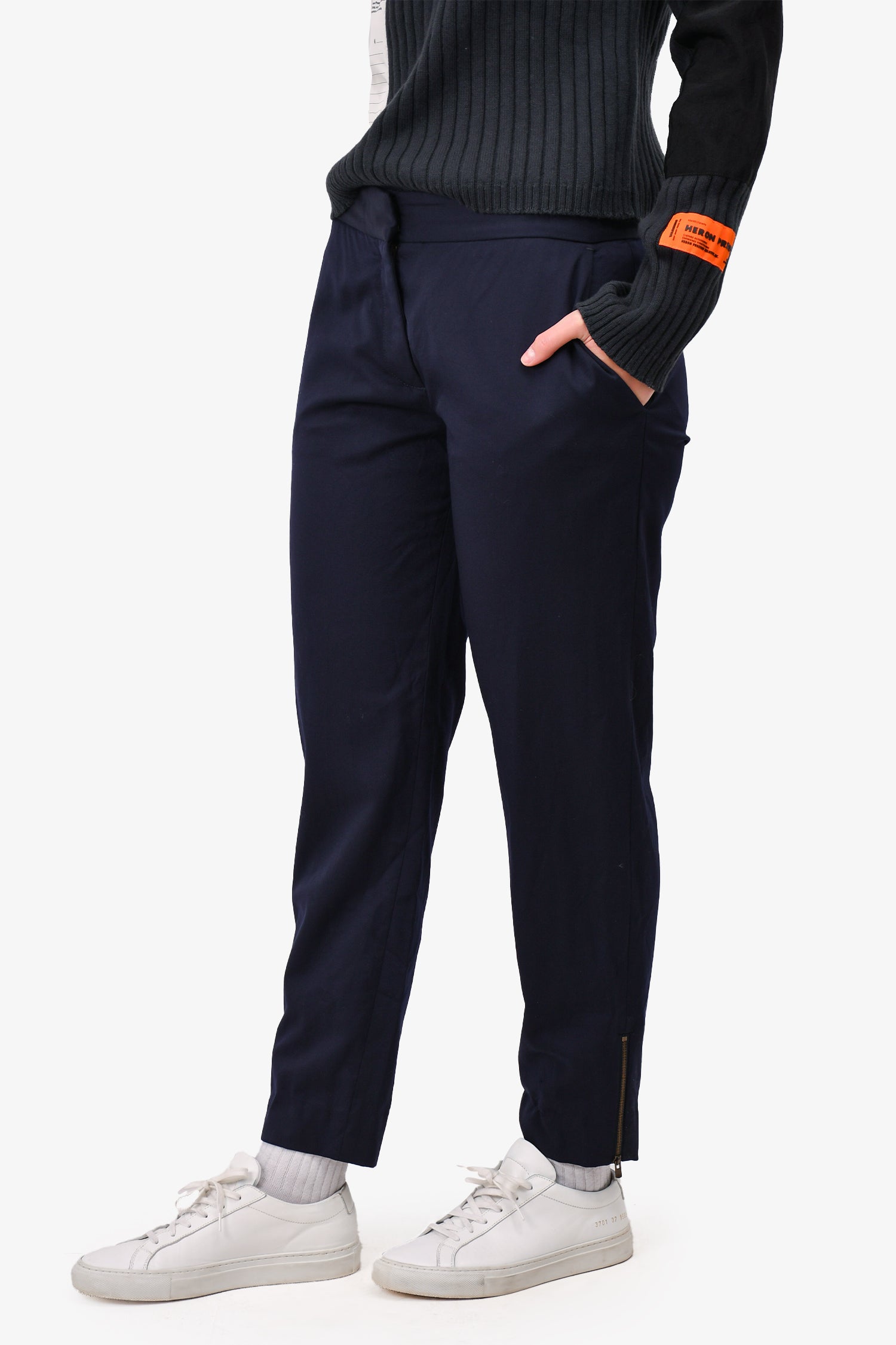 Stella McCartney Navy Blue Wool Trousers with Ankle Zip Size 44