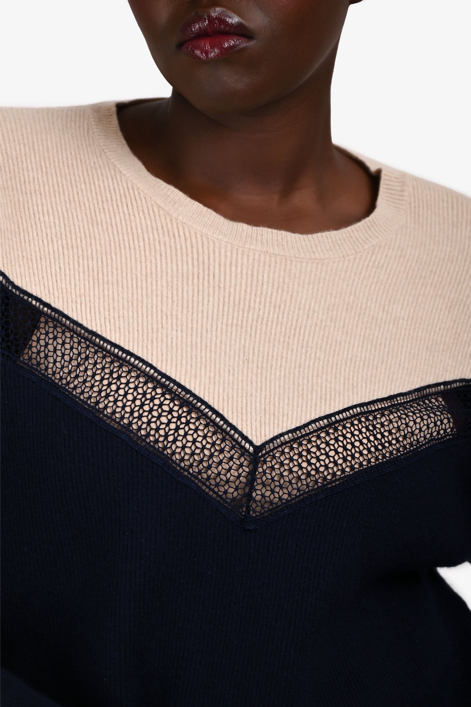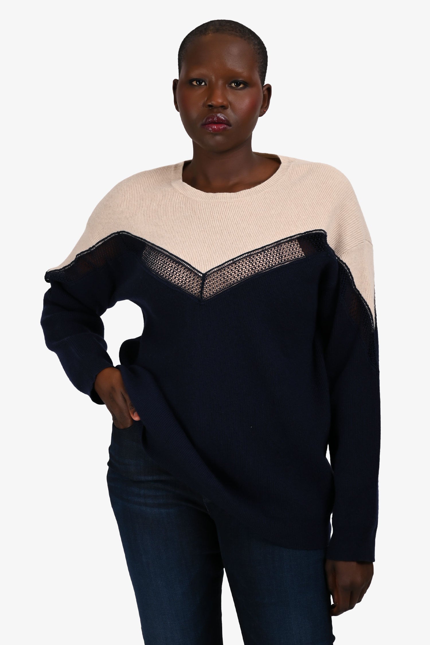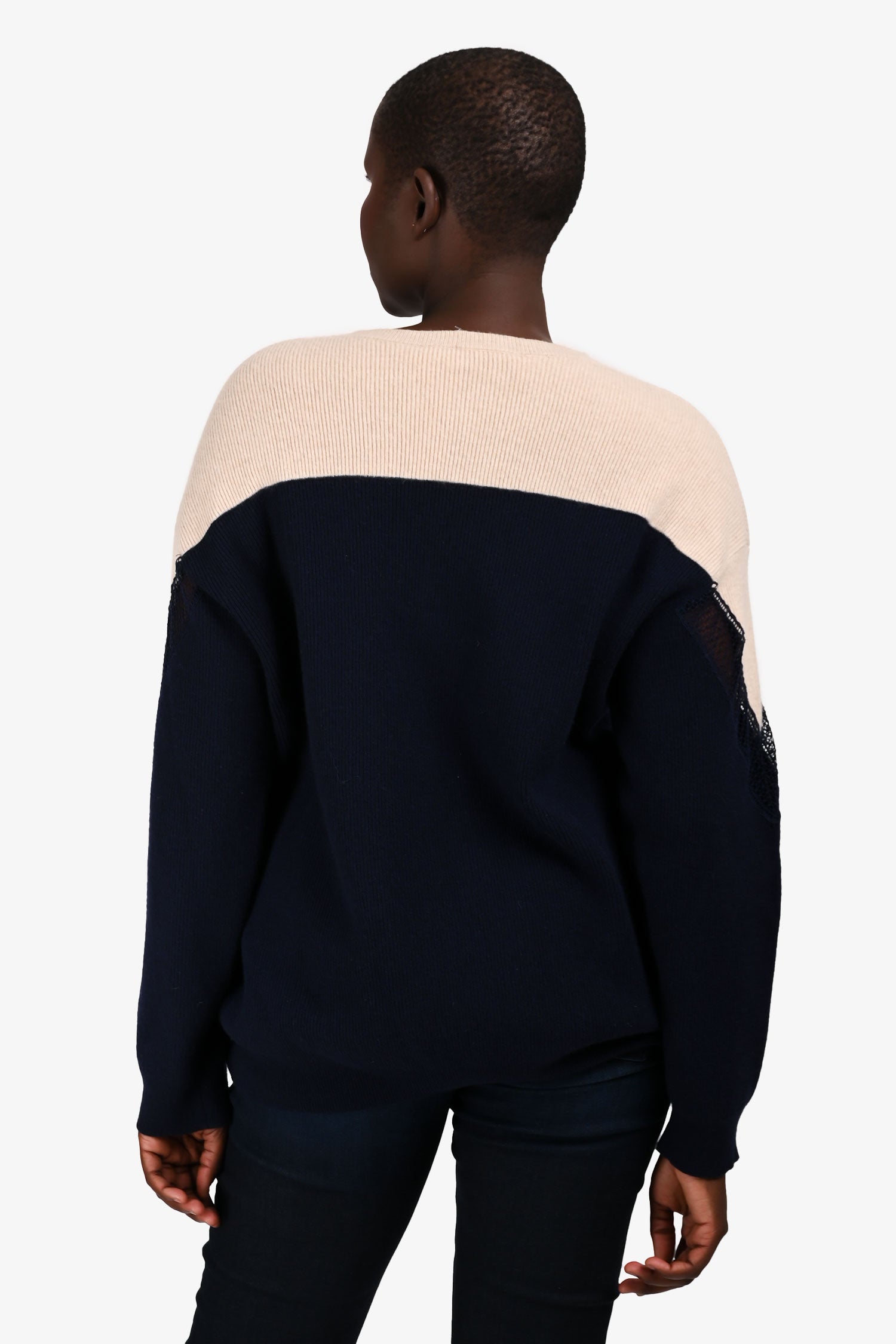 Stella McCartney Navy/Cream Cashmere/Wool Lace Detailed Sweater Size 40