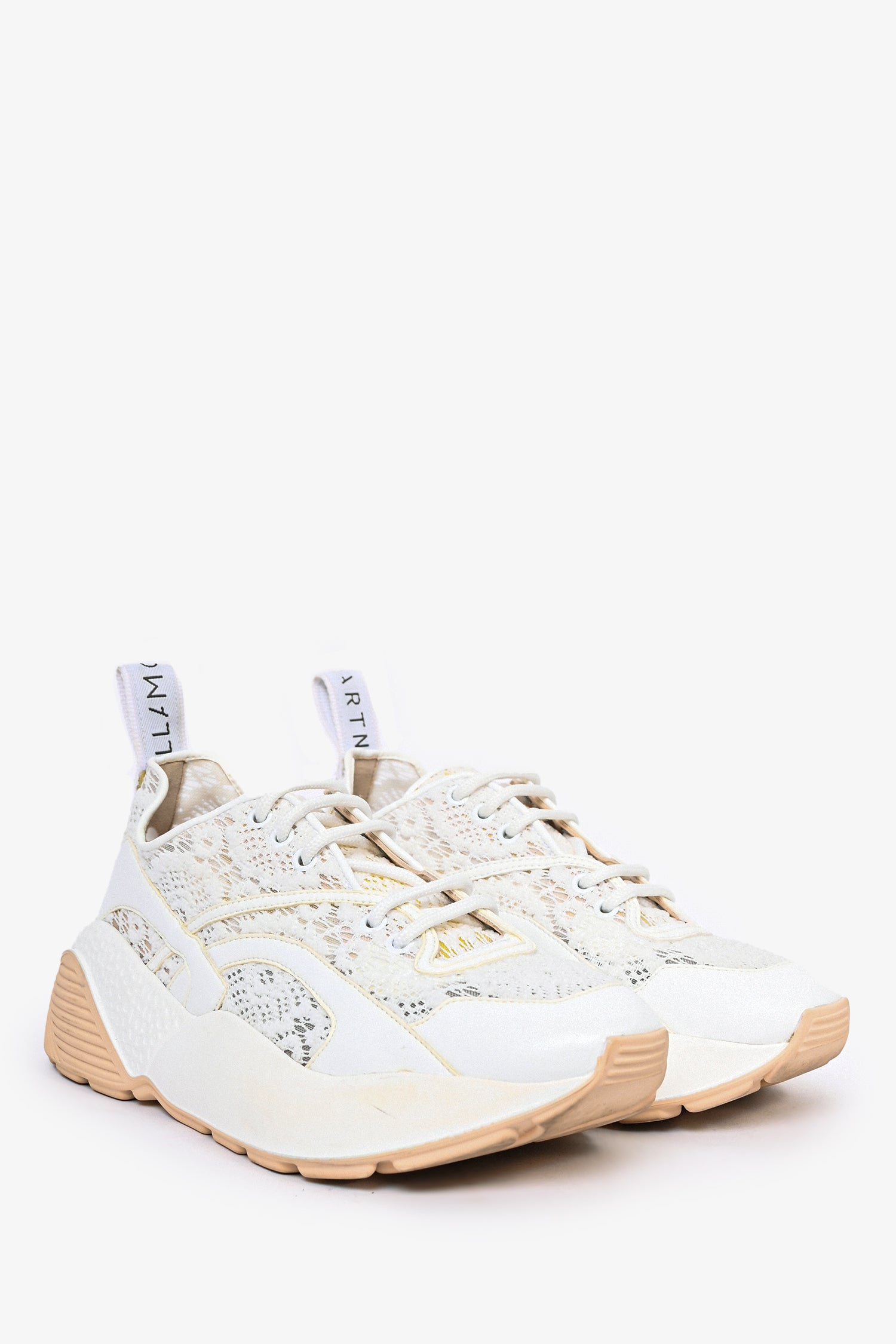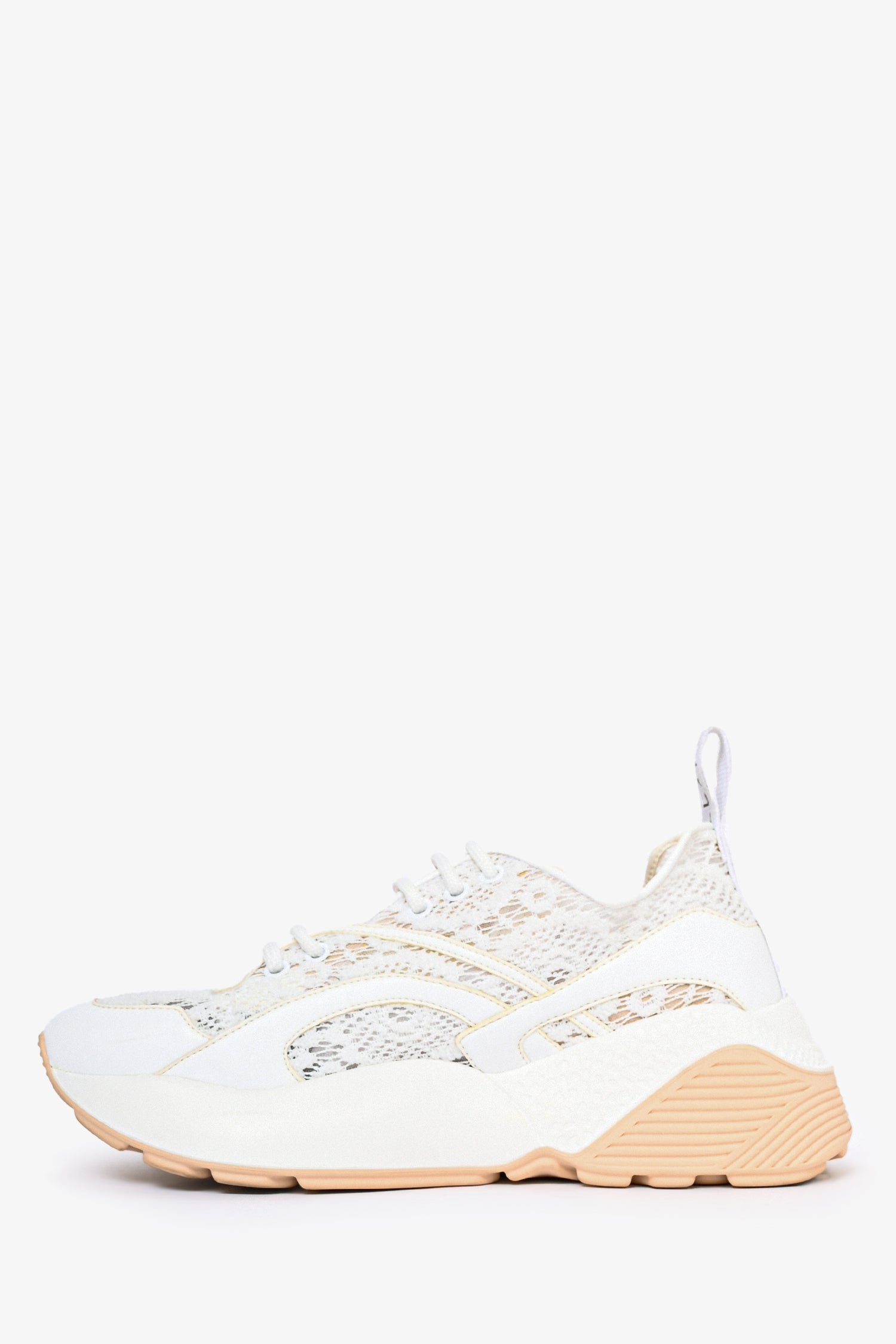 Refresh availabilityStella McCartney White Lace Sneakers. Lace-up closure. Tonal stitching. Leather lined interior.