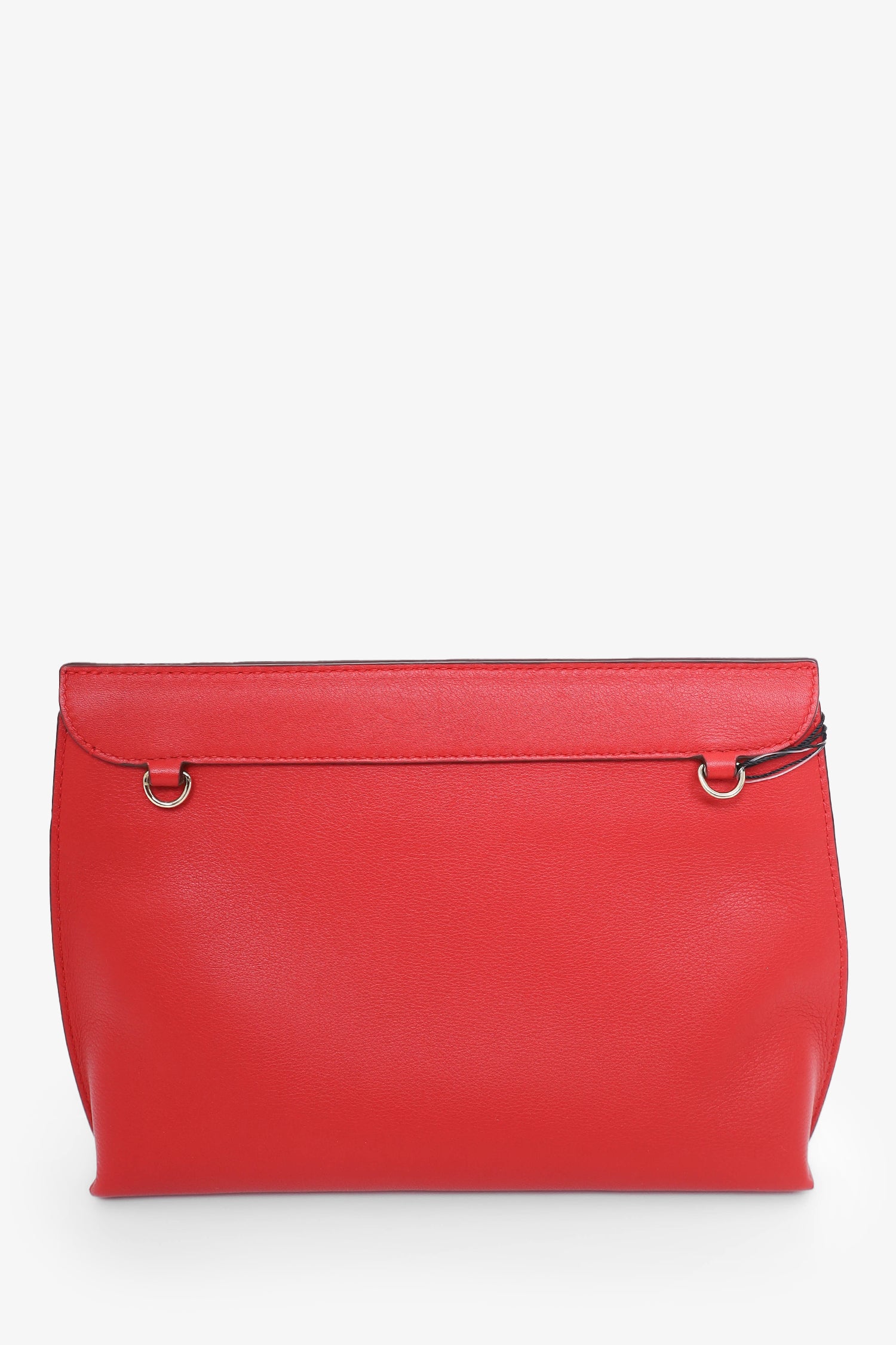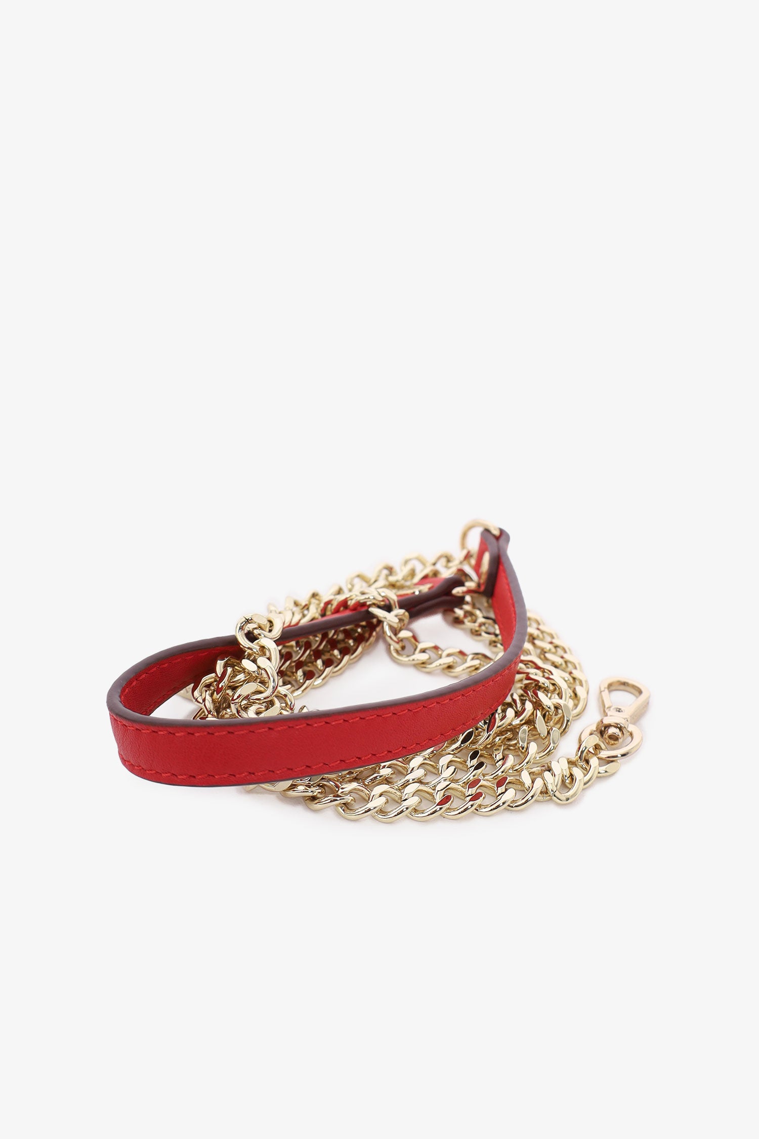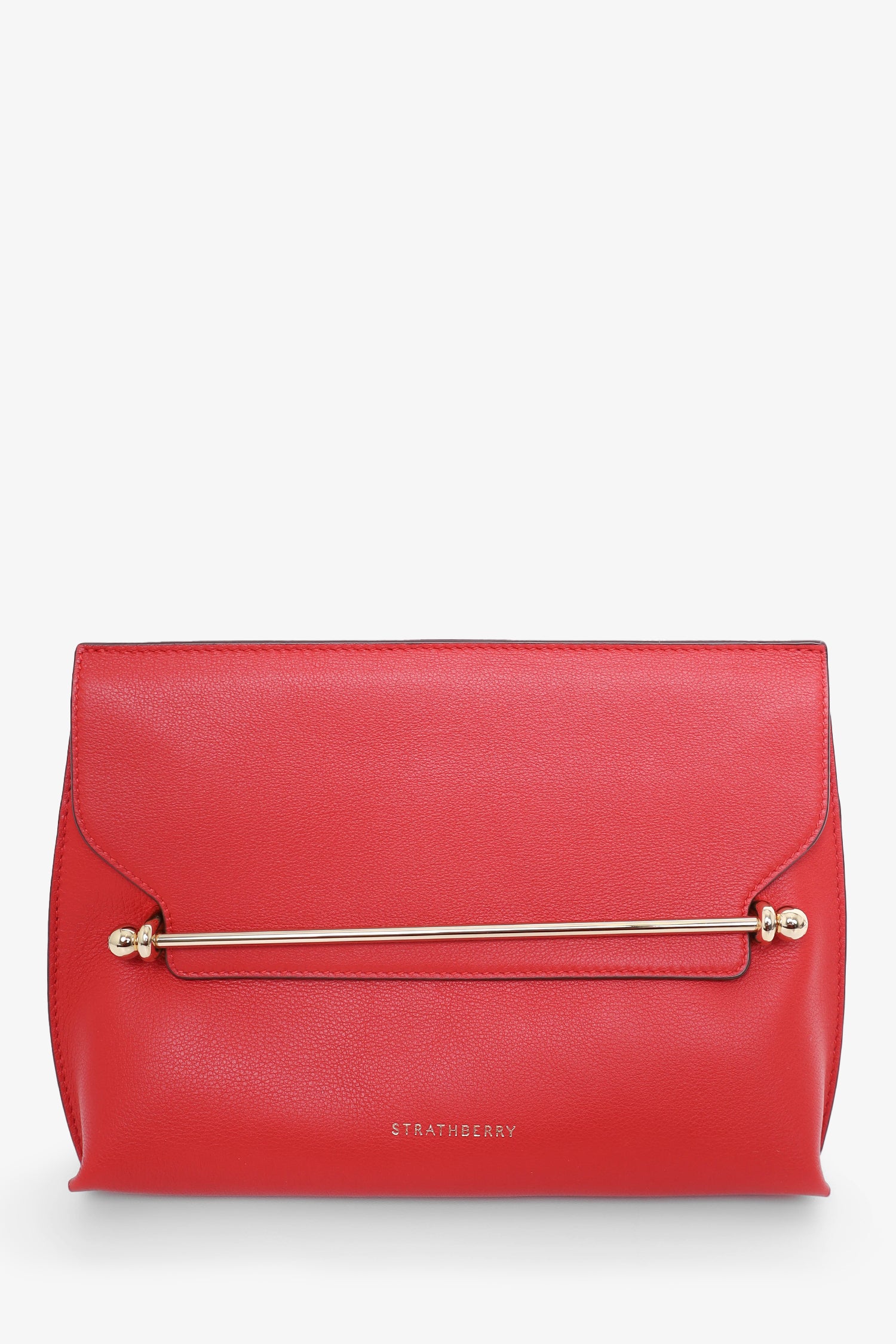 Refresh availabilityStrathberry Red Leather Chain Shoulder Bag. Fold-over flap with pull-through closure. Open suede interior. Detachable crossbody strap. Gold-tone hardware. Tonal stitching.