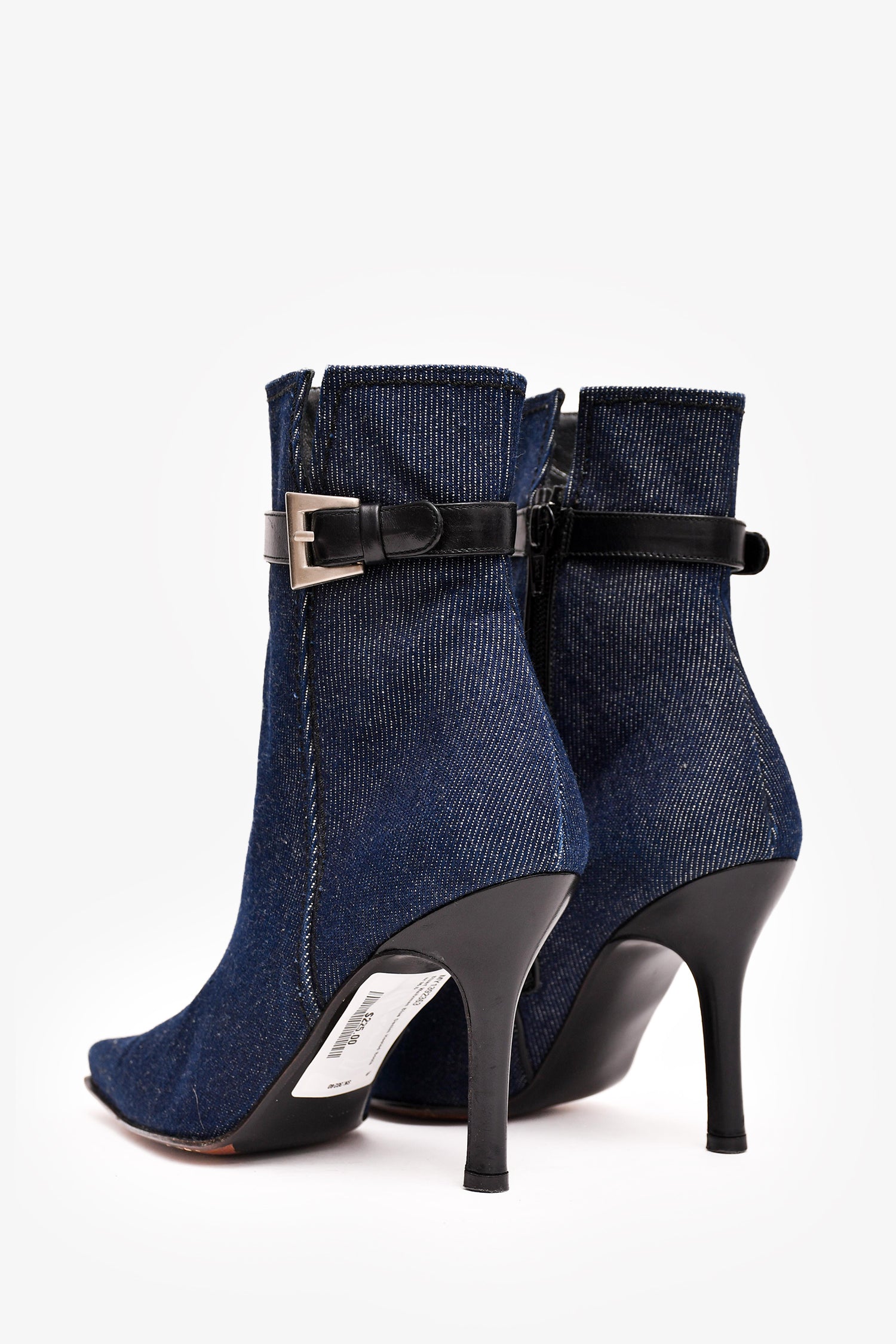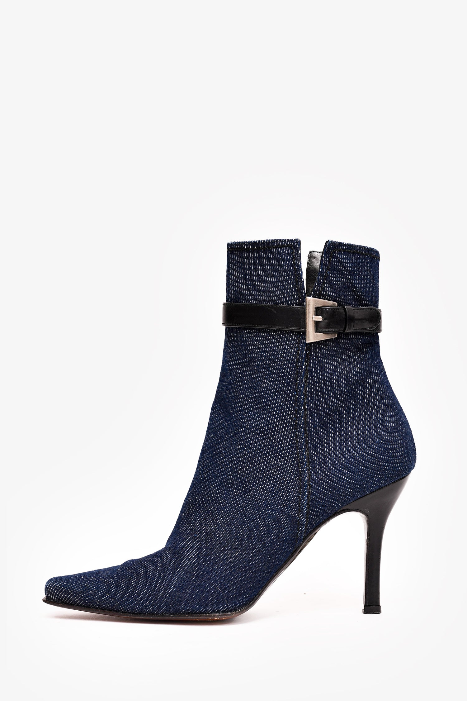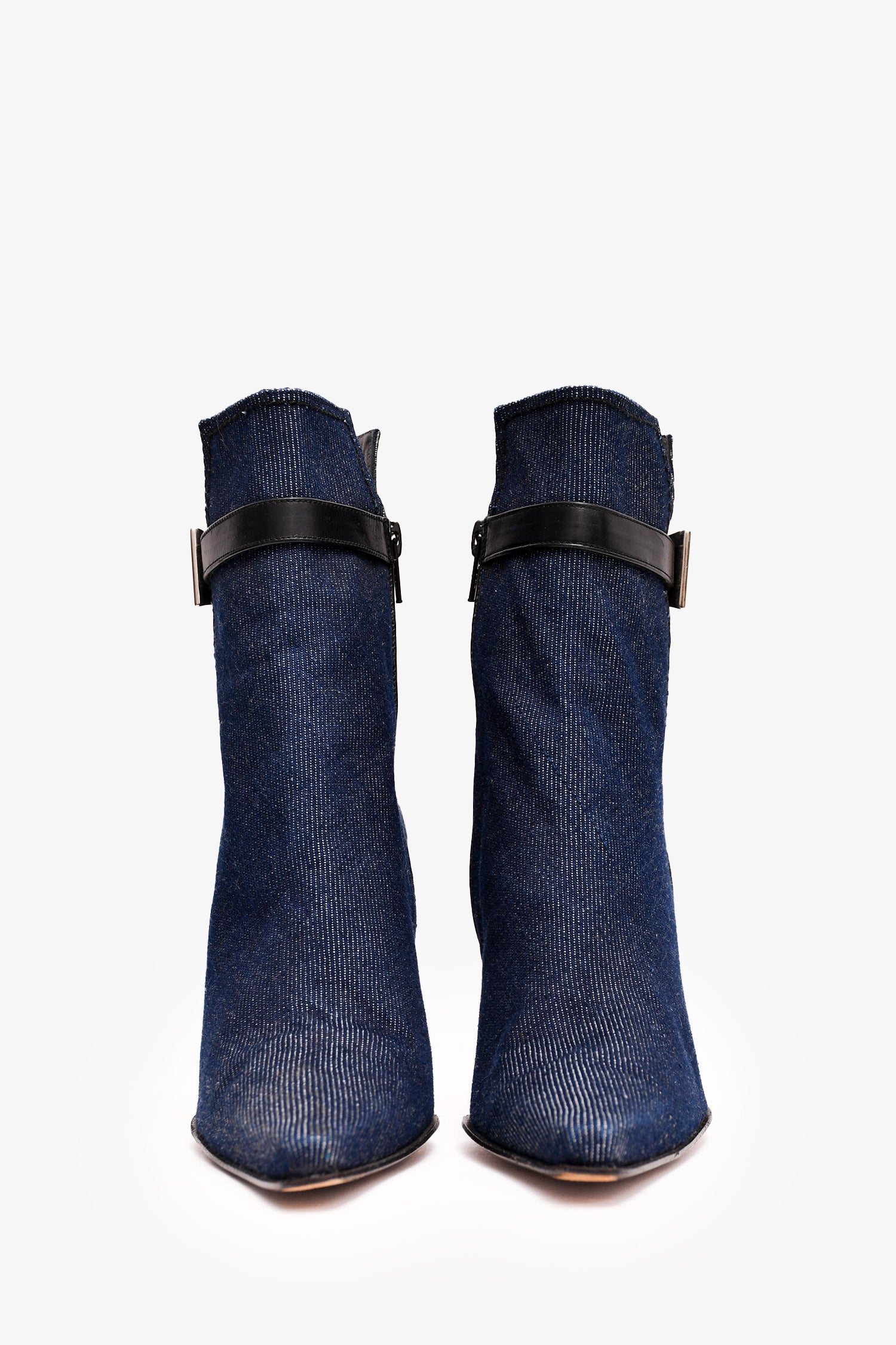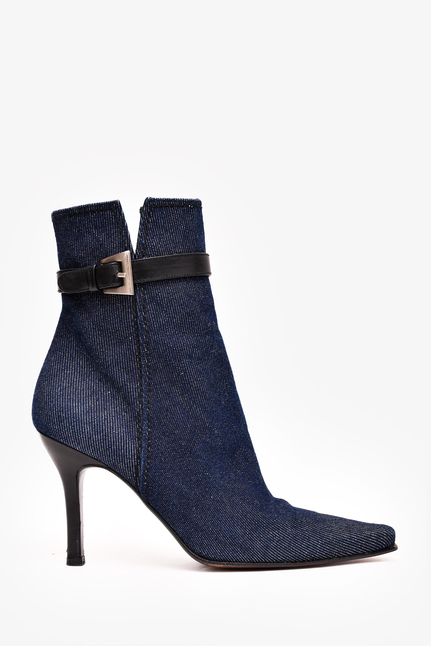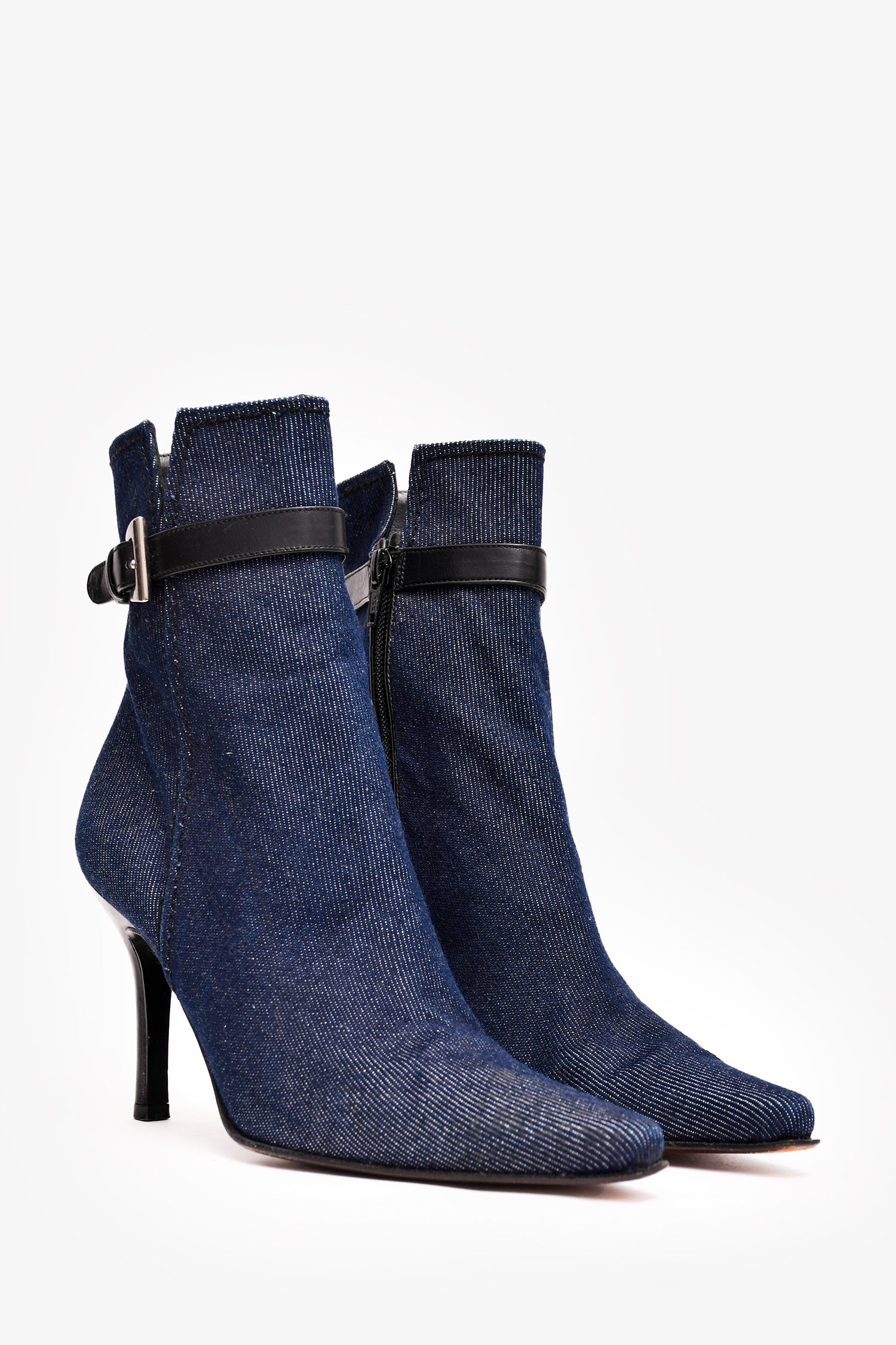 Refresh availabilityStuart Weitzman Blue Denim Heeled Boots. Pointed toe. Side zip up closure.
