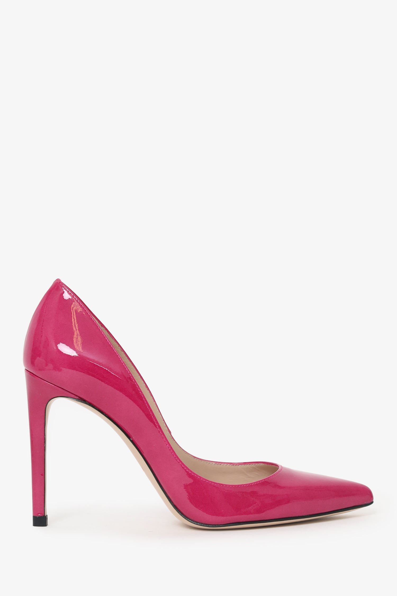 Refresh availabilityStuart Weitzman Fuchsia Patent Leather Curvia Pointed Toe Heels. Slip-on. Lined interior. Tonal stitching.