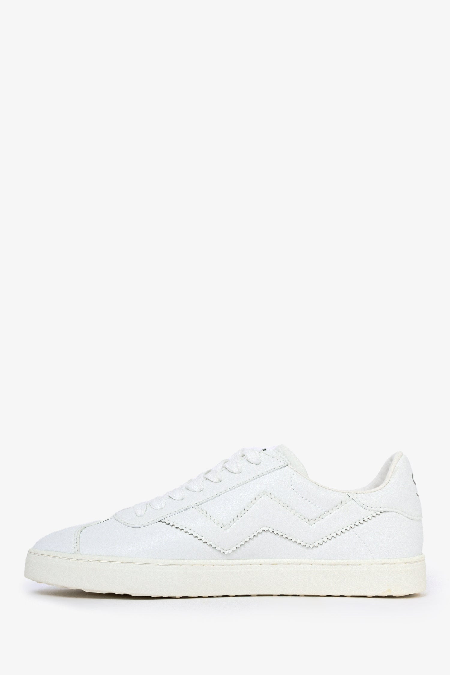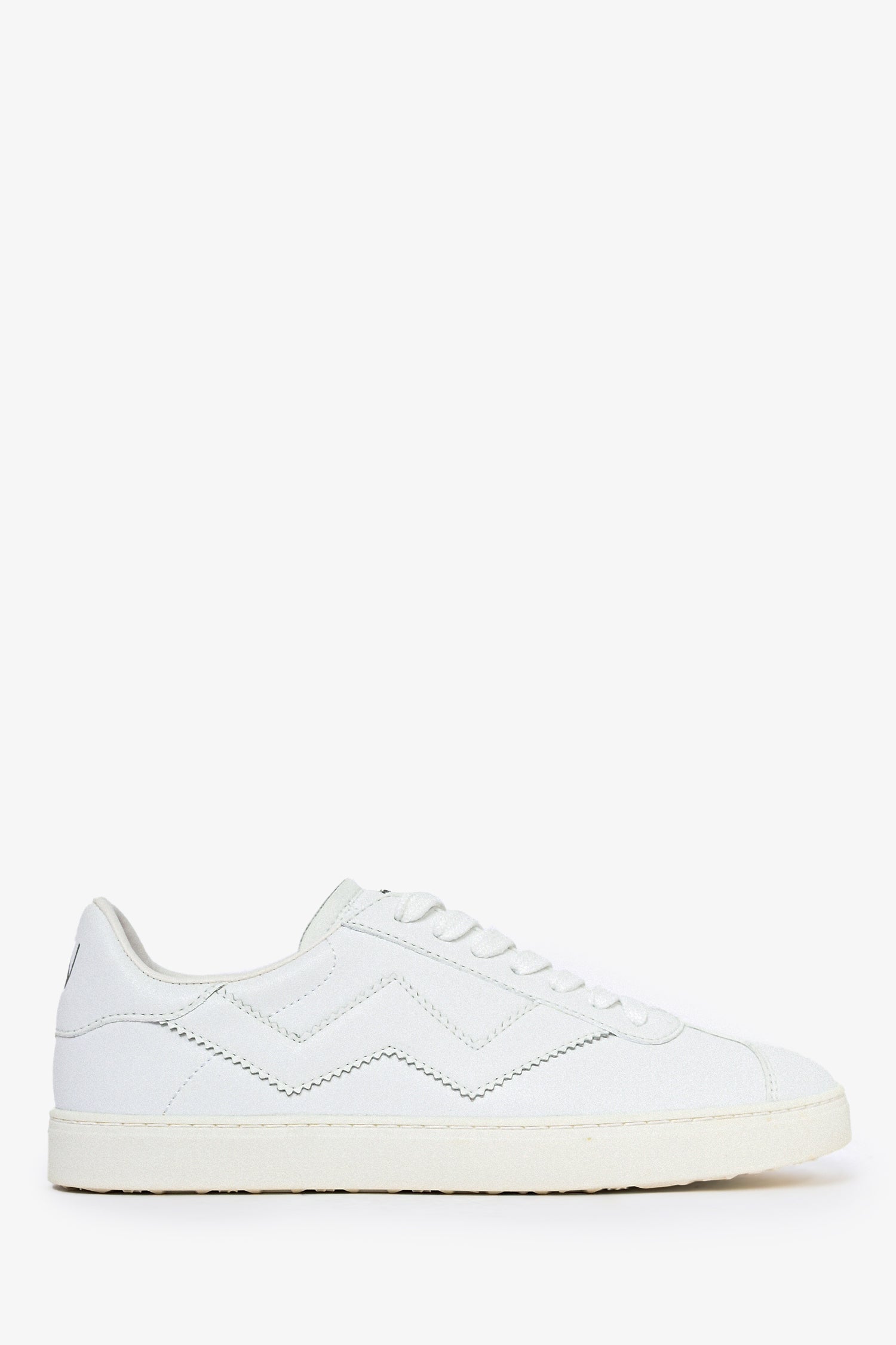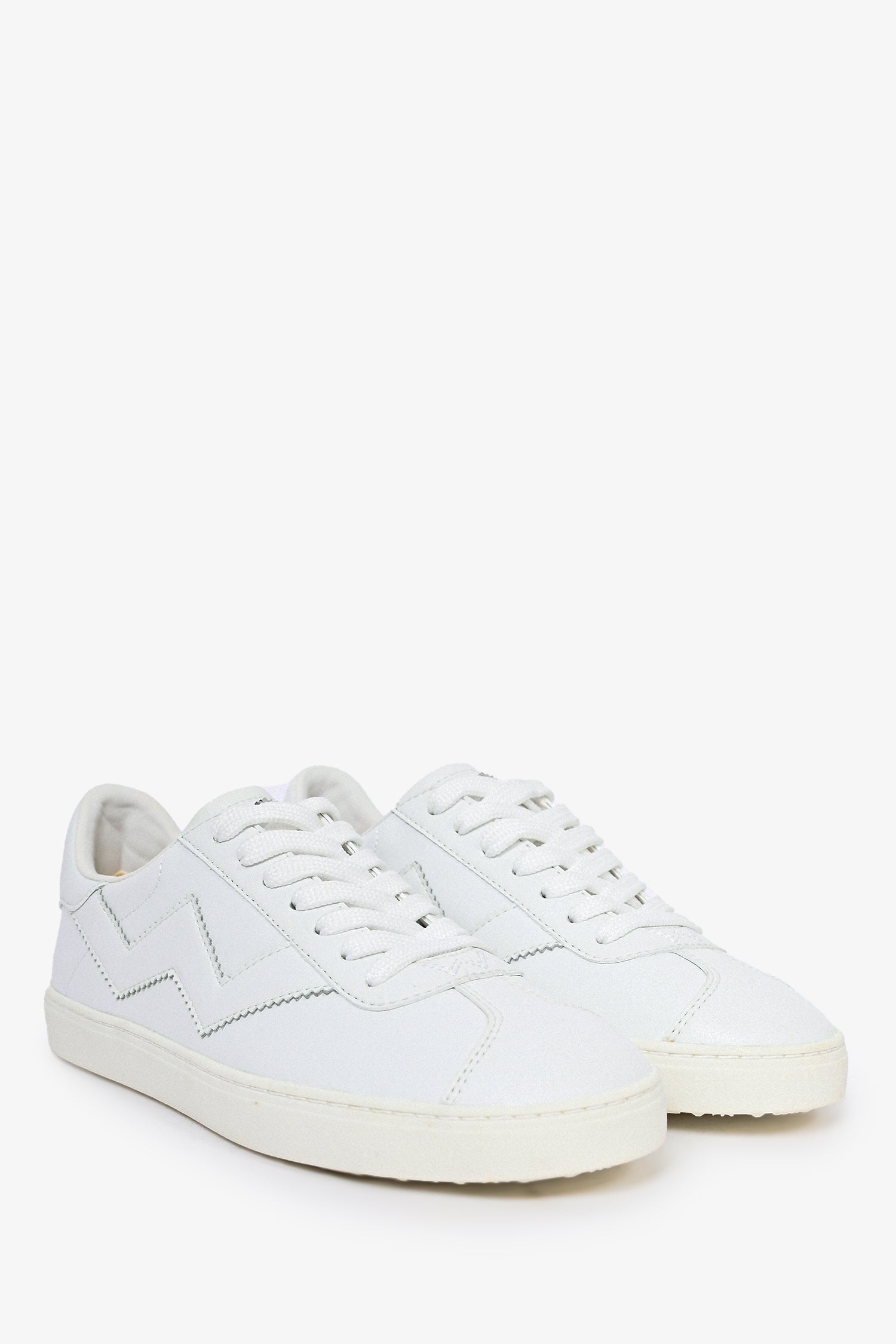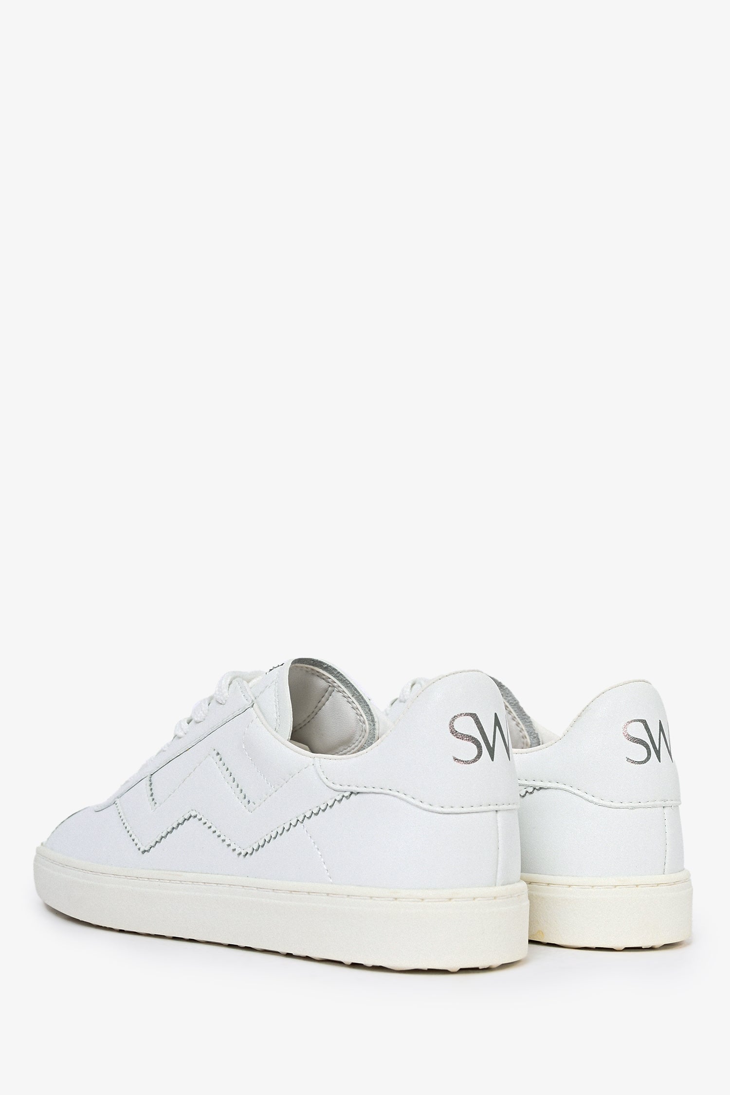 Refresh availabilityStuart Weitzman White Leather Sneakers. Tonal stitching. Round toe. Lace up closure.