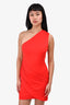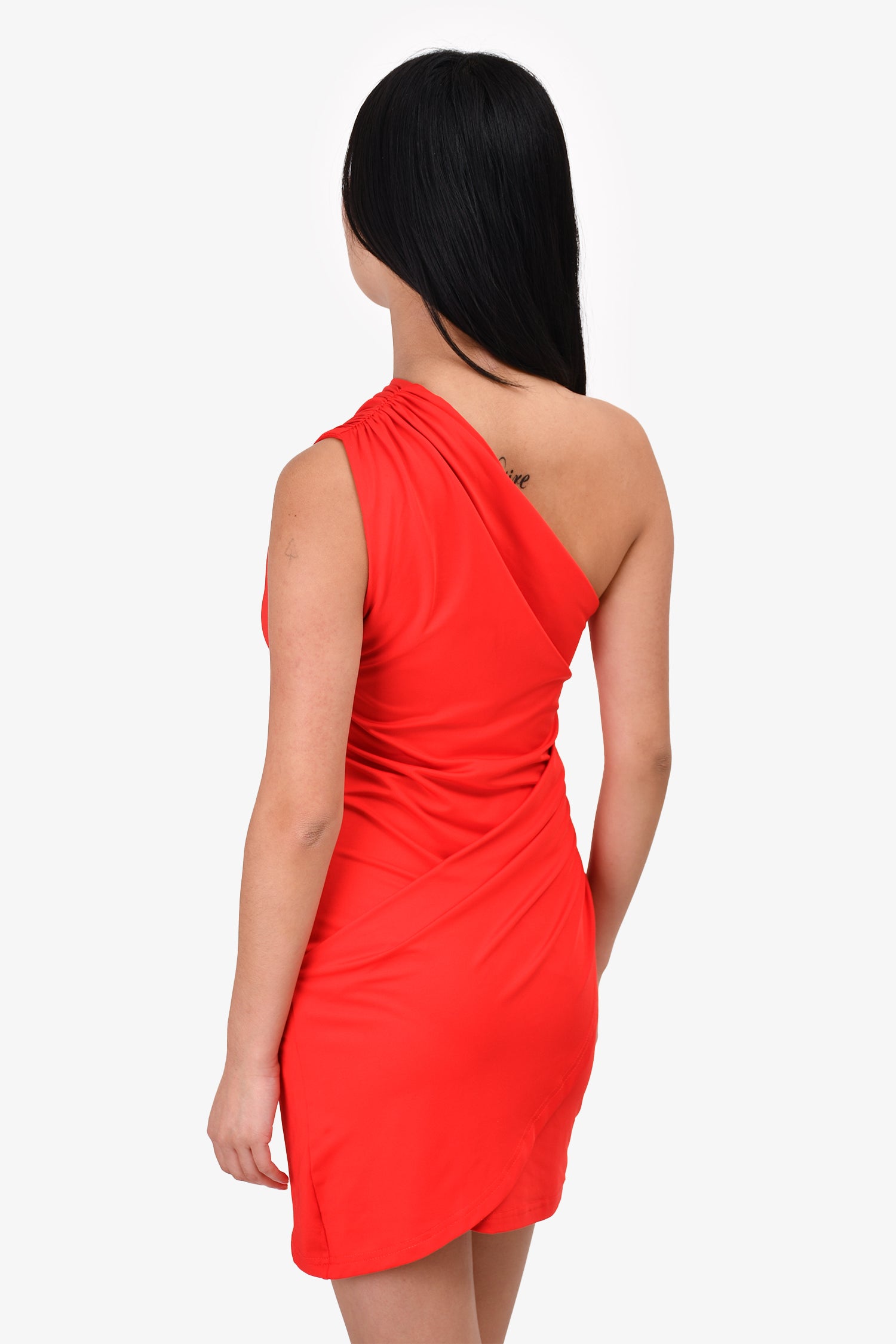 Superdown Red Ruched One-Shoulder Mini Dress Size M