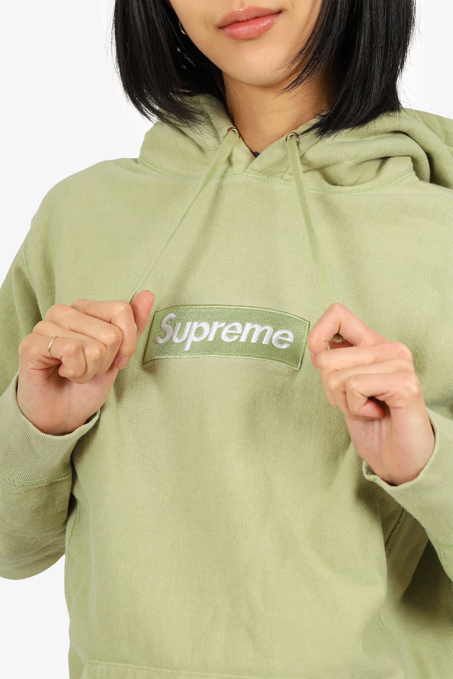 Refresh availabilitySupreme 16FW Green Box Logo Hoodie. Pull-on. Drawstring hood. Front kangaroo pocket. Ribbed sleeve cuffs and waistband. Silver-tone hardware. Tonal stitching.