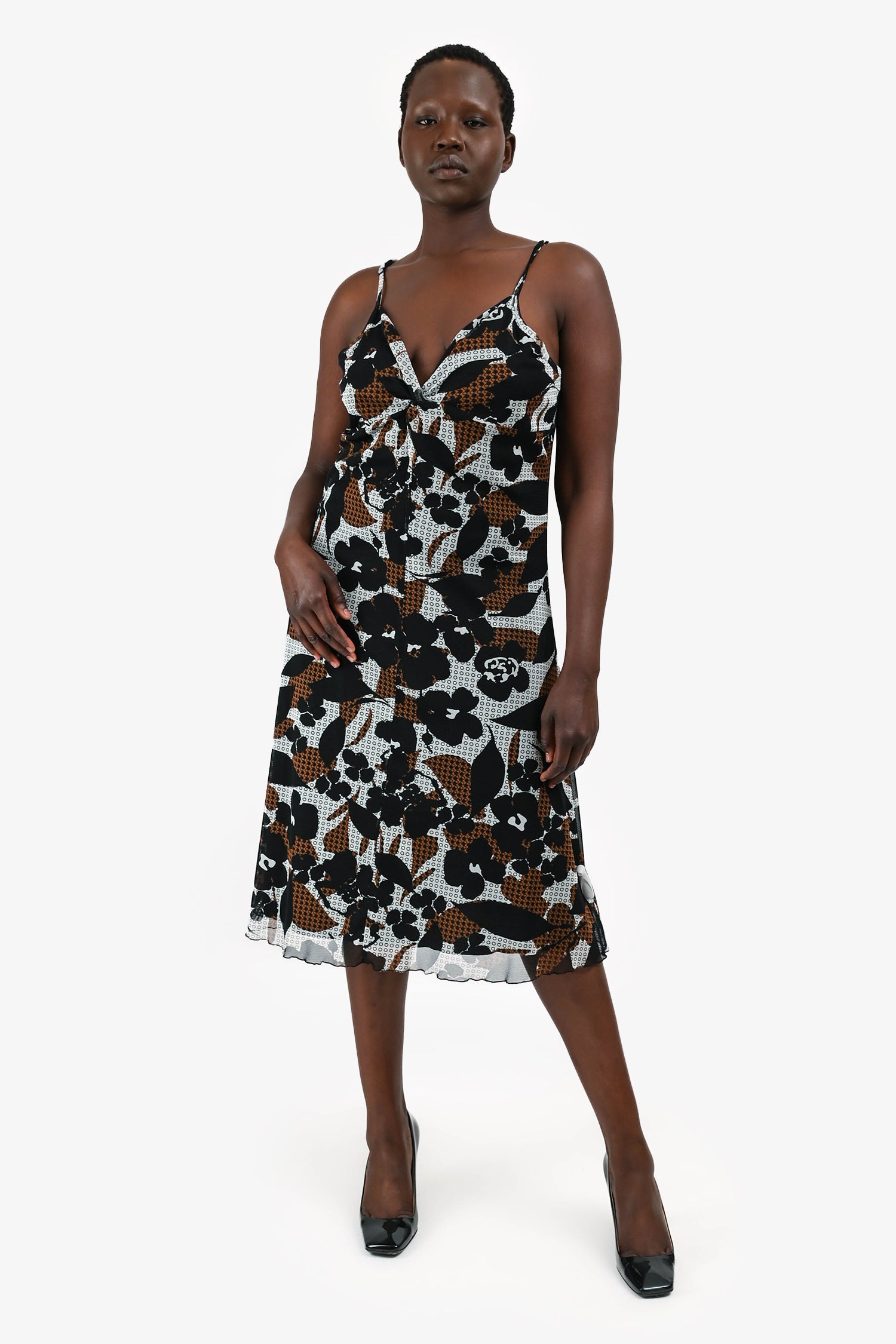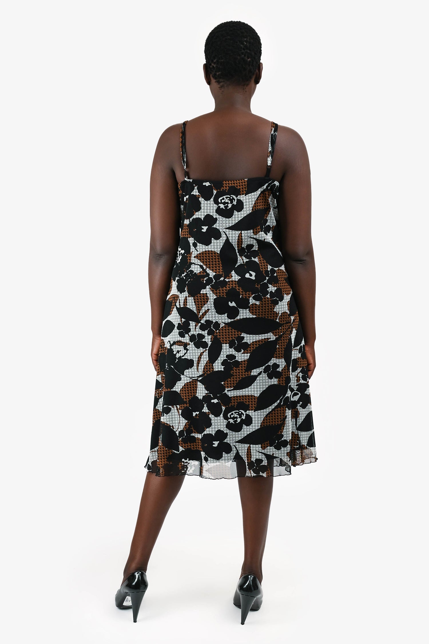 Taifun Collection Brown/Black Printed Tulle Mini Dress Size 44