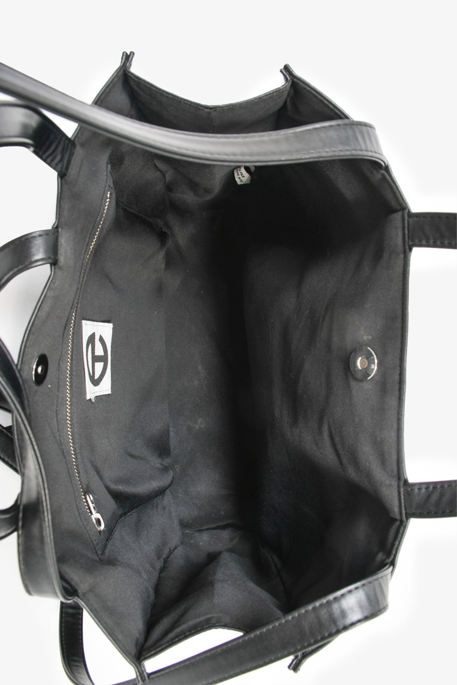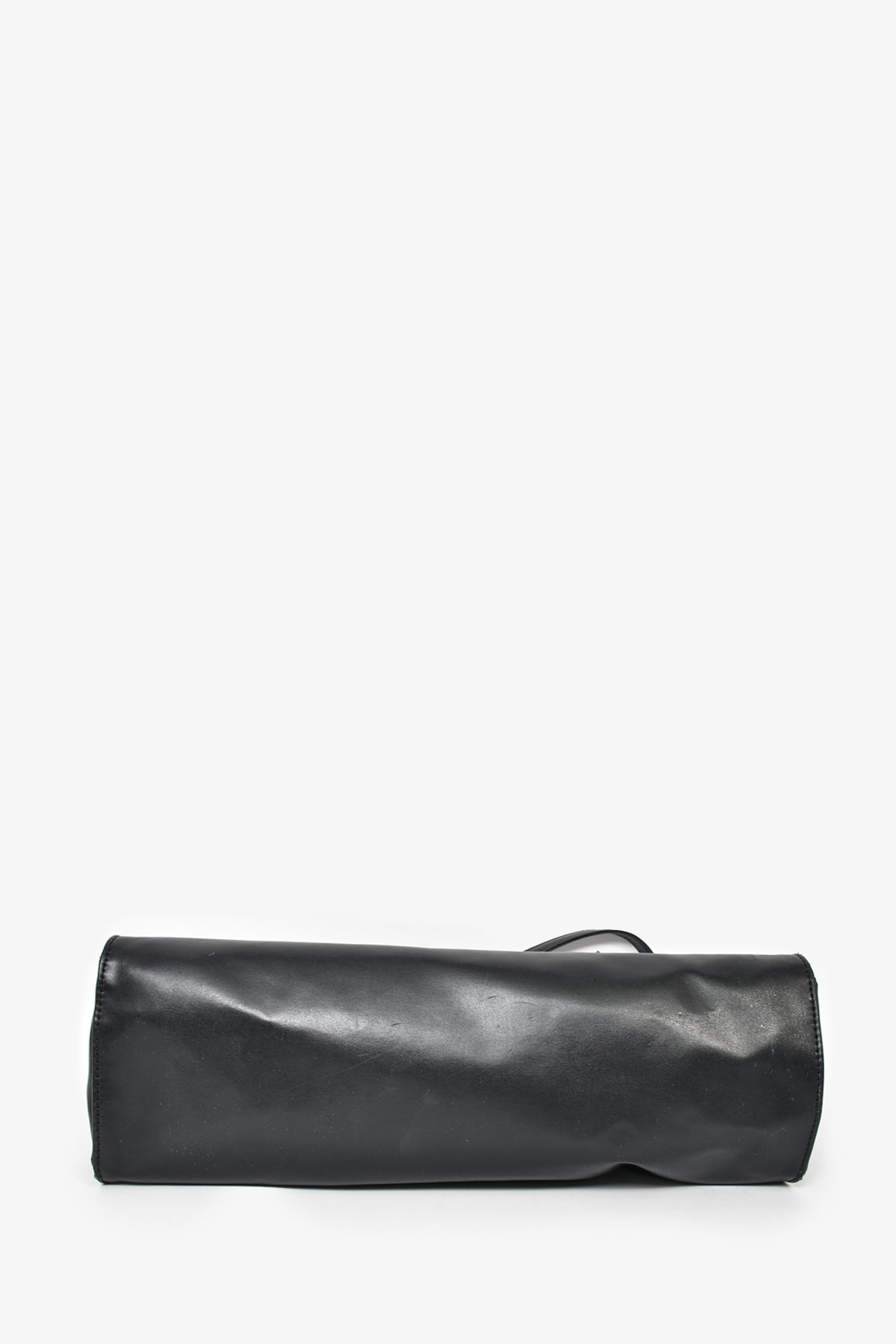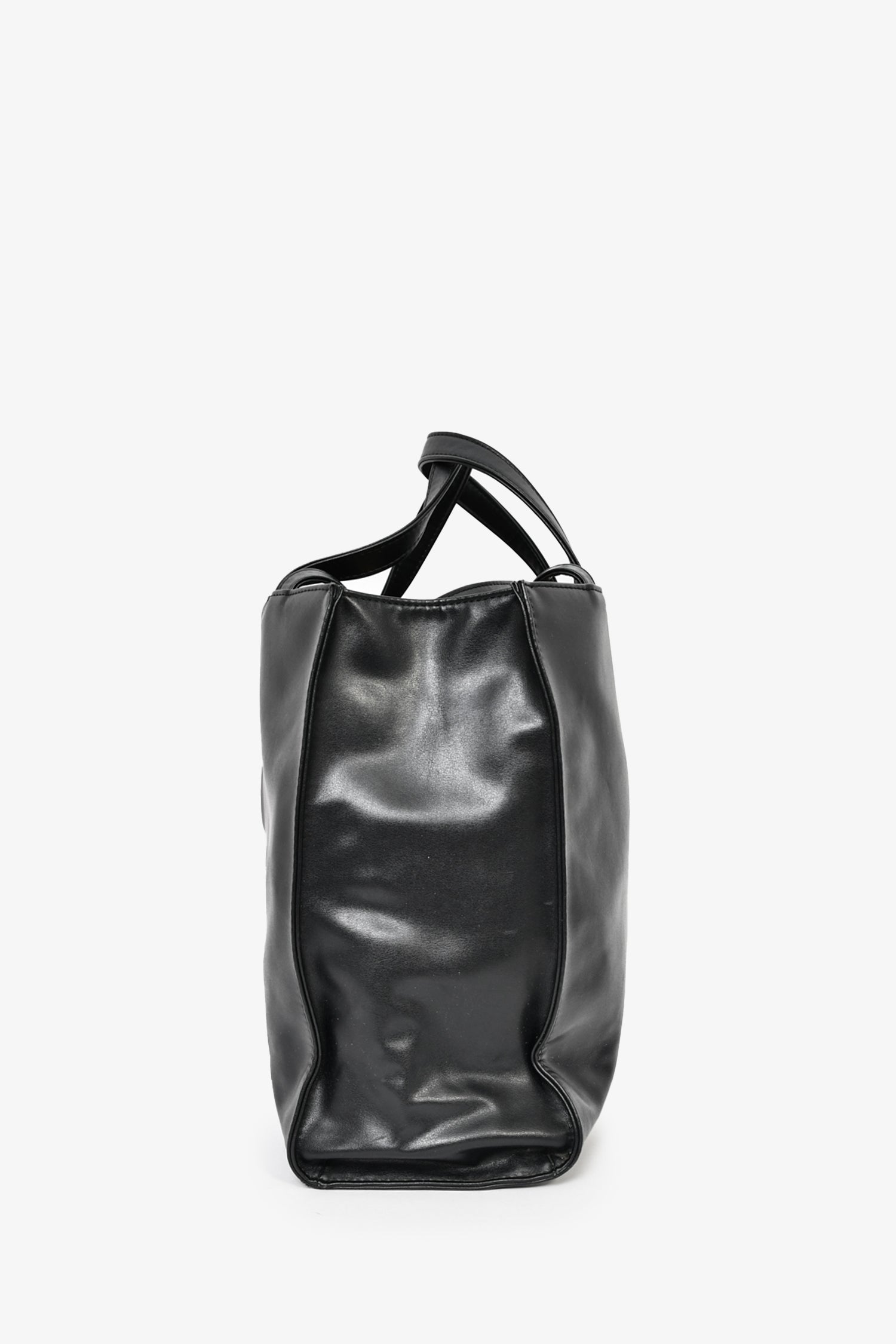 Refresh availabilityTelfar Black Leather Medium Shopping Tote. Twin top handles. Crossbody straps. Tonal stitching. Open interior with magnetic closure. Black lining.