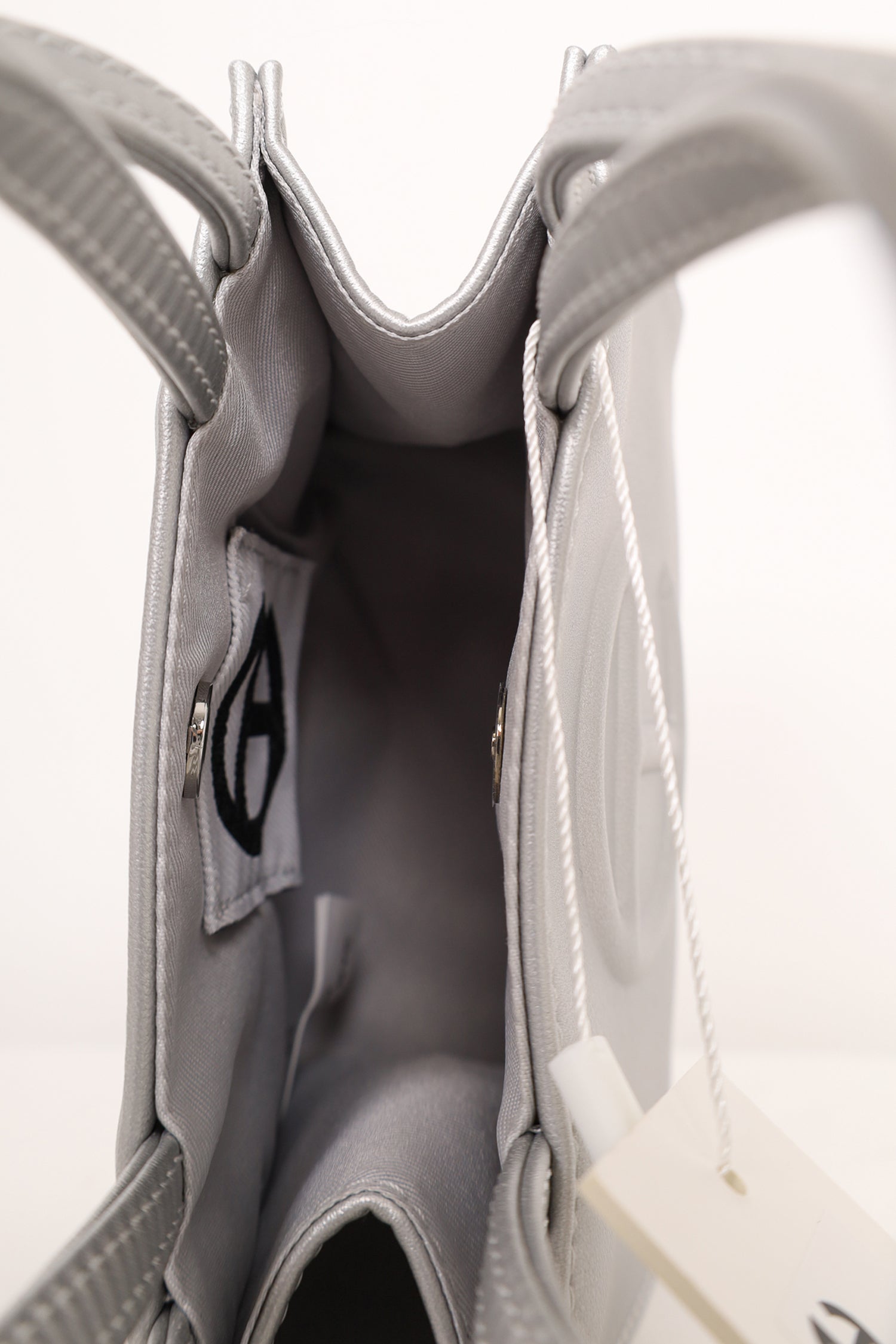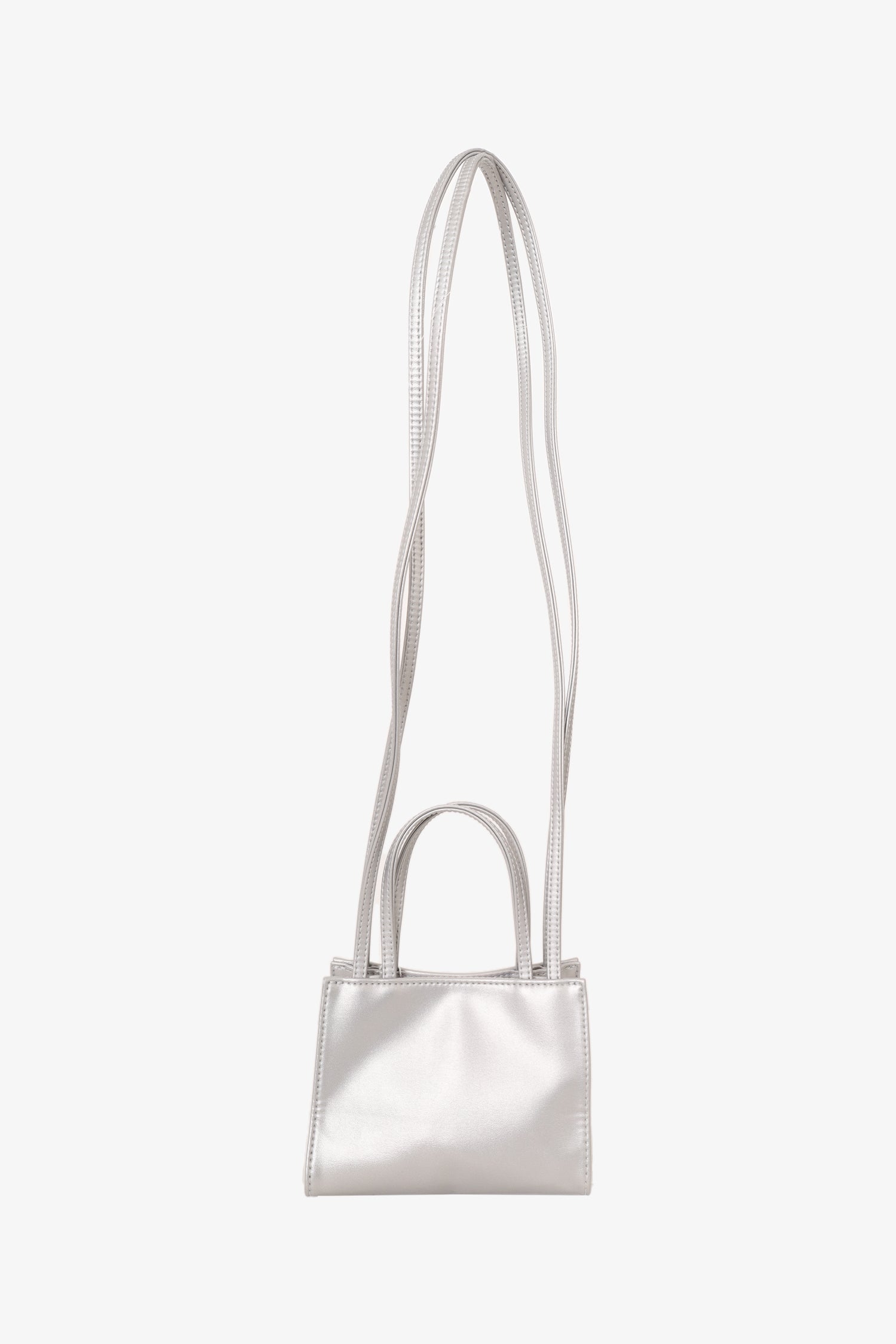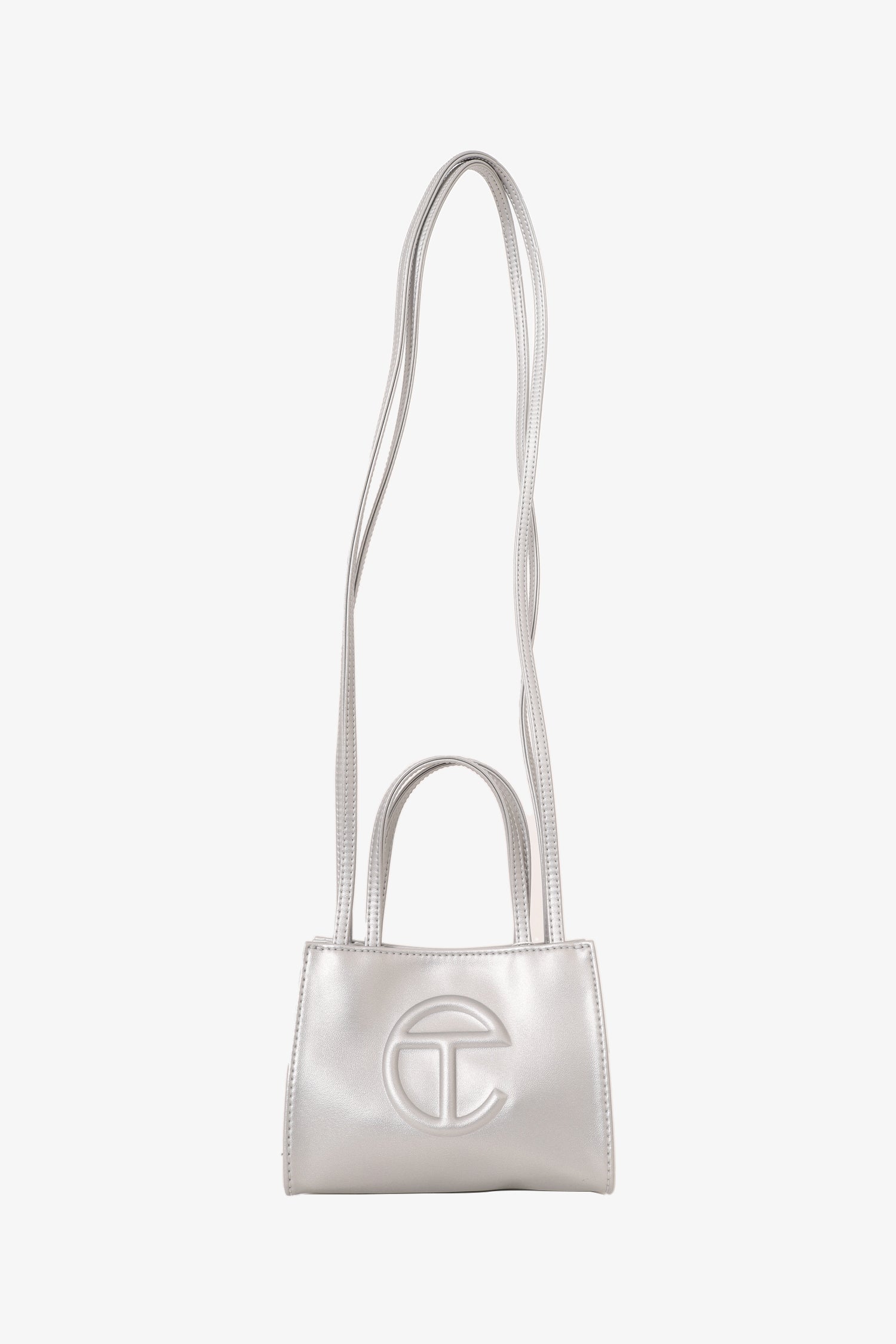 Refresh availabilityTelfar Silver Leather Small Shopping Bag. Magnetic latch closure. Tonal stitching.